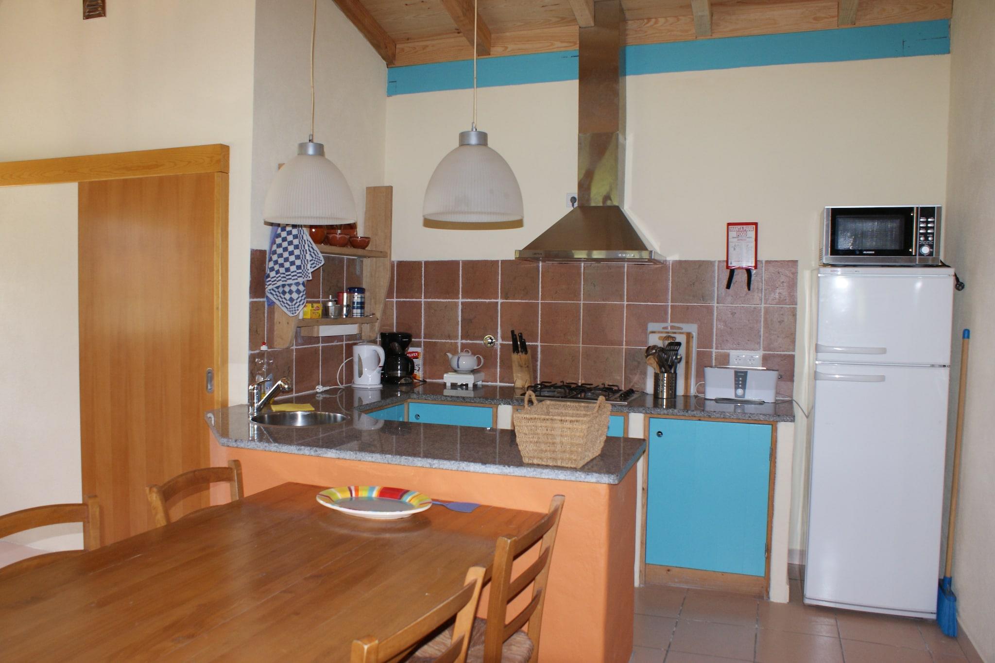 Stueetage: (åbent køkken(komfur(Komfur med fire kogeplader, gas), mikrobølgeovn, køle-fryseskab), stue / spisestue(dobbeltsovesofa, kakkelovn(træ), stereoanlæg, havedøre), soveværelse(dobbeltseng, køjeseng), badeværelse(bruser, håndvask), toilet, toilet, sauna(6 personer), havestue/veranda(havemøbler)) pulterkammer(på stedet)(vaskemaskine(deles med andre gæster, betalt)), parkering, trampolin(deles med andre gæster), swimmingpool(deles med andre gæster, 12 x 5 m.), sandkasse, legeredskaber, barneseng(på anmodning), barnestol(på anmodning)