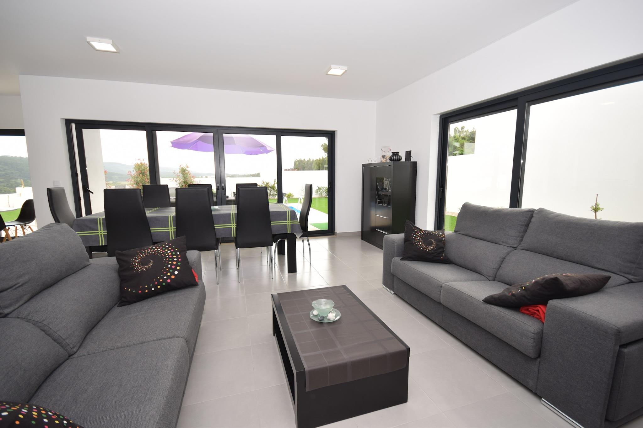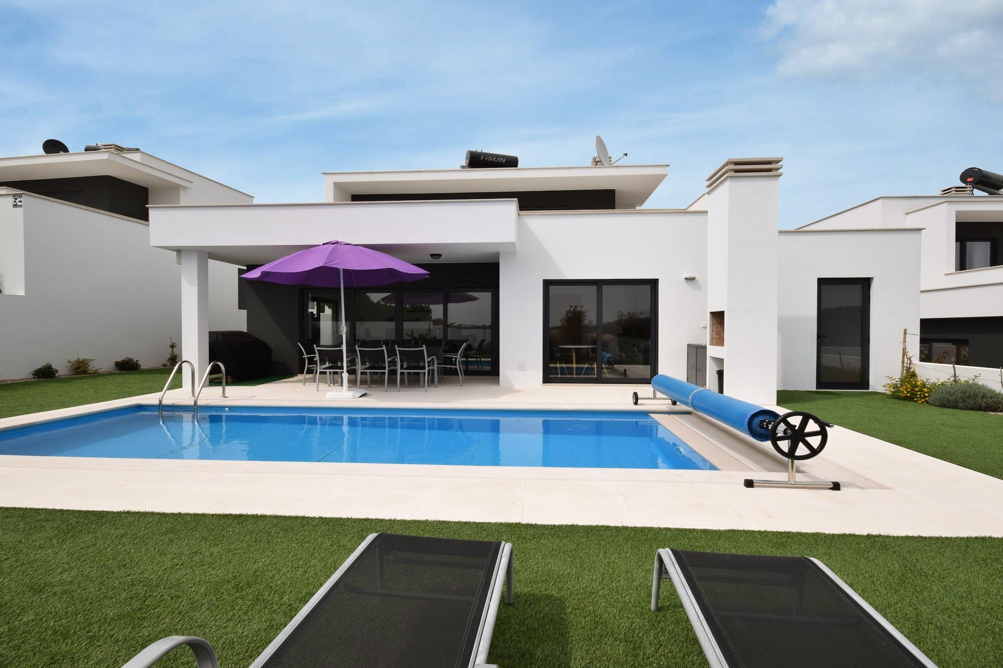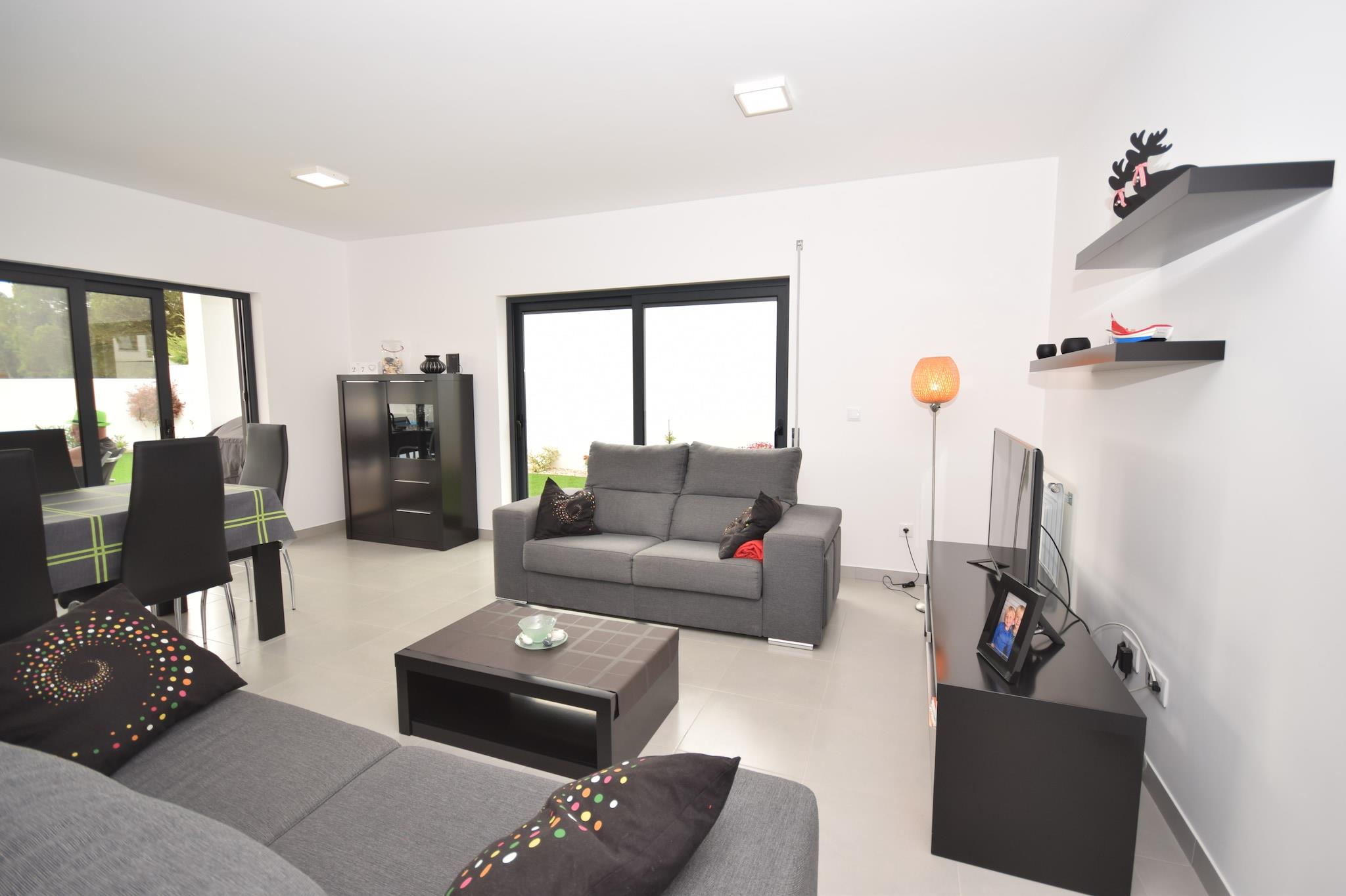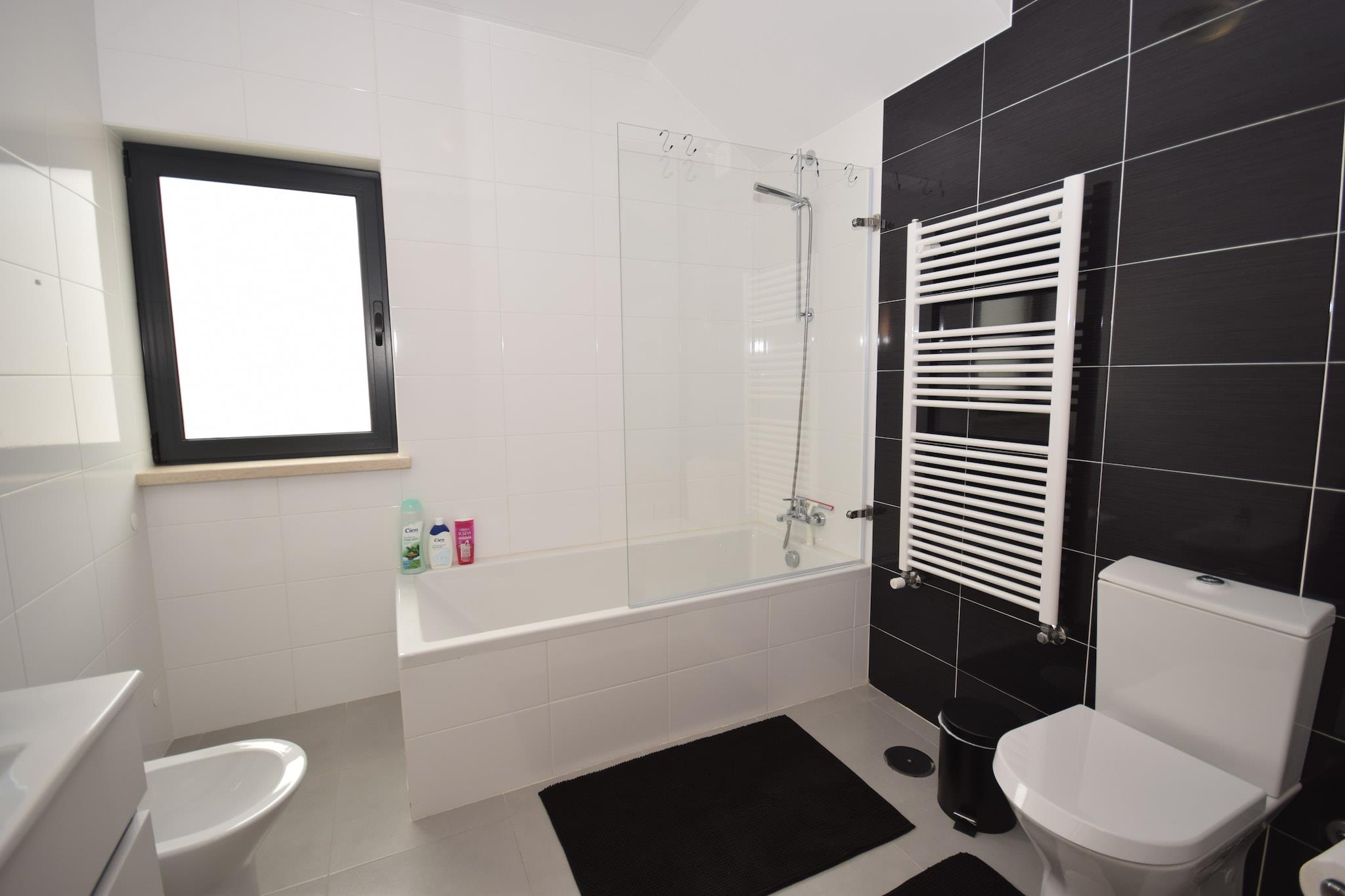 Dette indbydende feriehus i Famalicão er en behagelig base for familier eller grupper, der ønsker at udforske Portugals fantastiske kyst. Slap af ved den private swimmingpool med liggestole eller nyd solrige eftermiddage på den møblerede terrasse, perfekt til grillmad og udendørs måltider. Det åbne køkken og internationale tv-kanaler sikrer bekvemmelighed og underholdning, mens tilvejebringelsen af en børneseng og høj stol gør det familievenligt. Parasoller giver skygge til dovne eftermiddage ved poolen. Beliggende kun 6 km fra Nazarés berømte strand, kendt for sine gigantiske bølger og livlige atmosfære, tilbyder dette hjem hurtig adgang til surfing, gåture på stranden og afslapning ved havet. De maleriske byer São Martinho do Porto og Nazaré ligger i nærheden og byder på smukke havne, butikker og kulturelle steder. Landsbyen Famalicão ligger kun 1,5 km væk med flere lokale faciliteter og restauranter. Udforsk friske fiske- og skaldyrsdelikatesser såsom grillede sardiner og caldeirada på lokale spisesteder i Nazaré og Famalicão. Gå ikke glip af de traditionelle slik som "bolo de noz" (valnøddekage). Endagsture kan omfatte at besøge den charmerende middelalderby Alcobaça eller den travle by Leiria, begge mindre end en time væk. For naturelskere tilbyder en naturskøn køretur langs Atlanterhavskysten en betagende udsigt og fredelige steder til picnic.