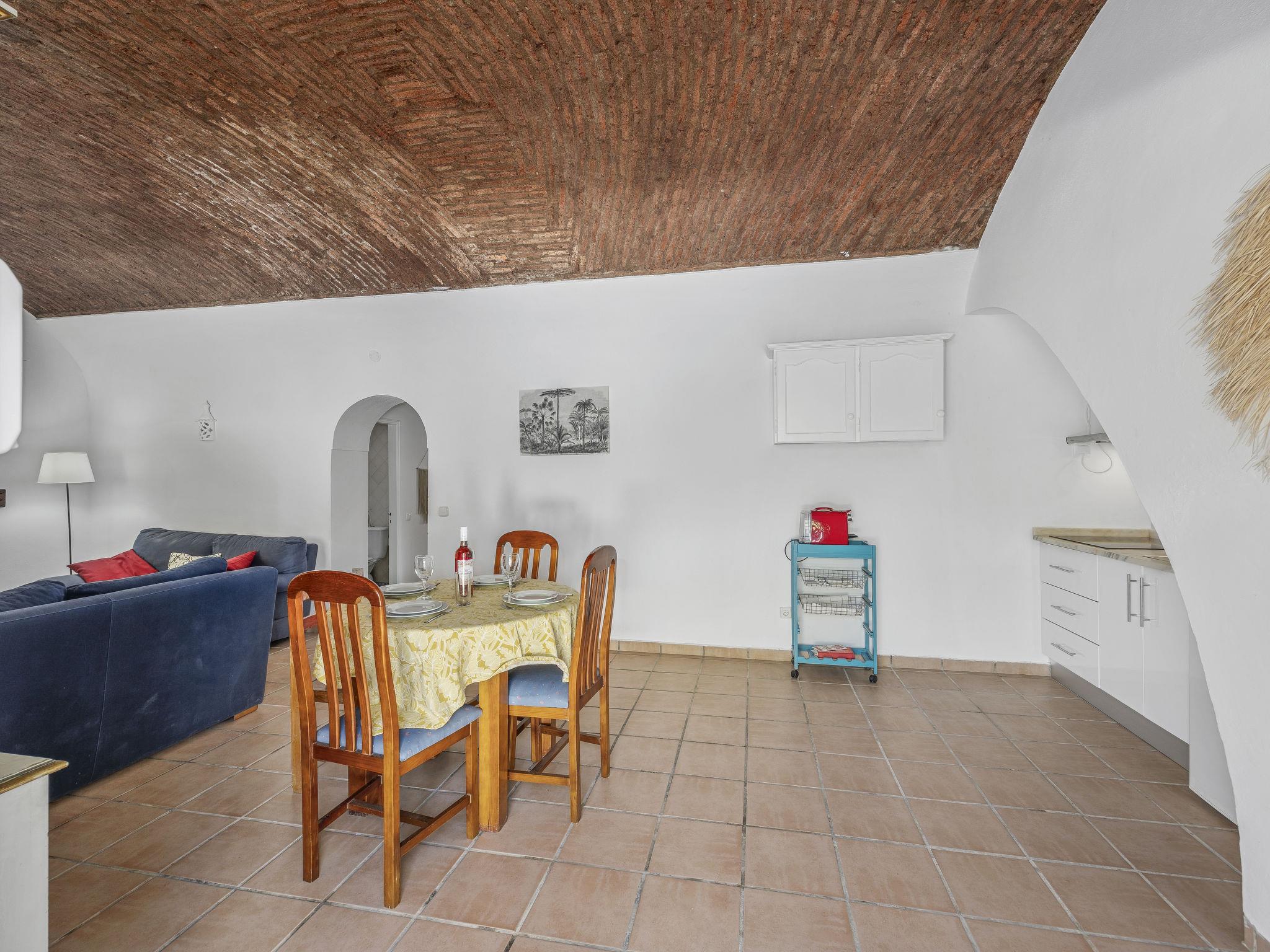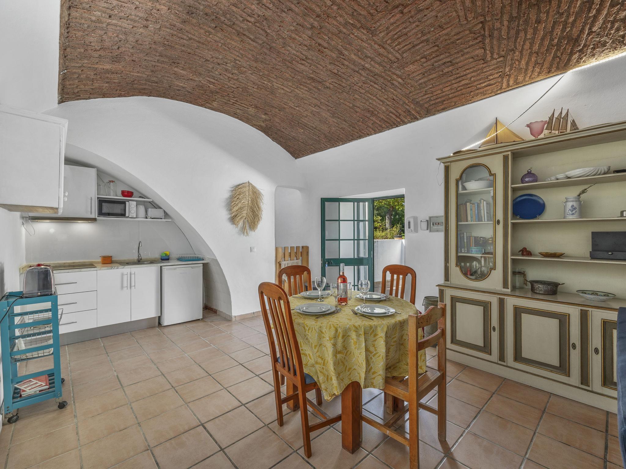 "Jardim do Sul", 3-room terraced house 57 m2. Partly renovated in 2025, rustic and tasteful furnishings: living/dining room with open-hearth fireplace (only for decoration), dining table and satellite TV. 2 small rooms, each room with 2 beds (95 cm, length 183 cm). Open kitchen (4 ceramic glass hob hotplates, toaster, microwave, electric coffee machine). Hip bath/WC. Electric heating, air-conditioning. Heating not available in all rooms. Terrace. Terrace furniture, deck chairs (2). Facilities: safe, iron, mosquito net, children's high chair, baby cot for up to 2 year olds, hair dryer. Internet (WiFi, free). Please note: non-smokers only. Smoke alarm, fire extinguisher. 2049/AL