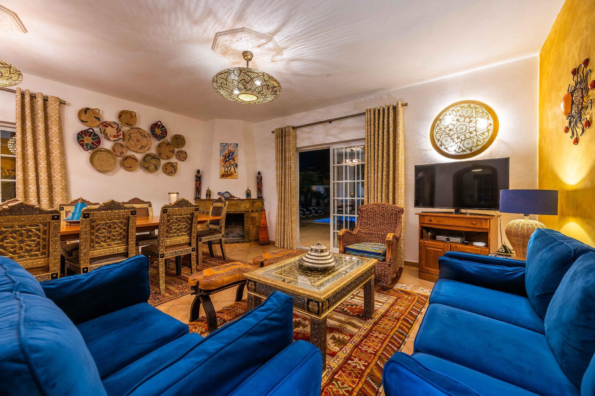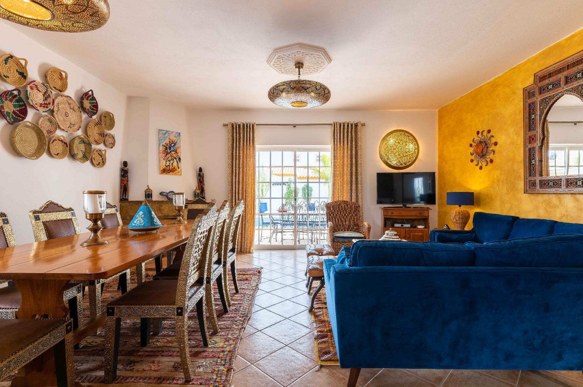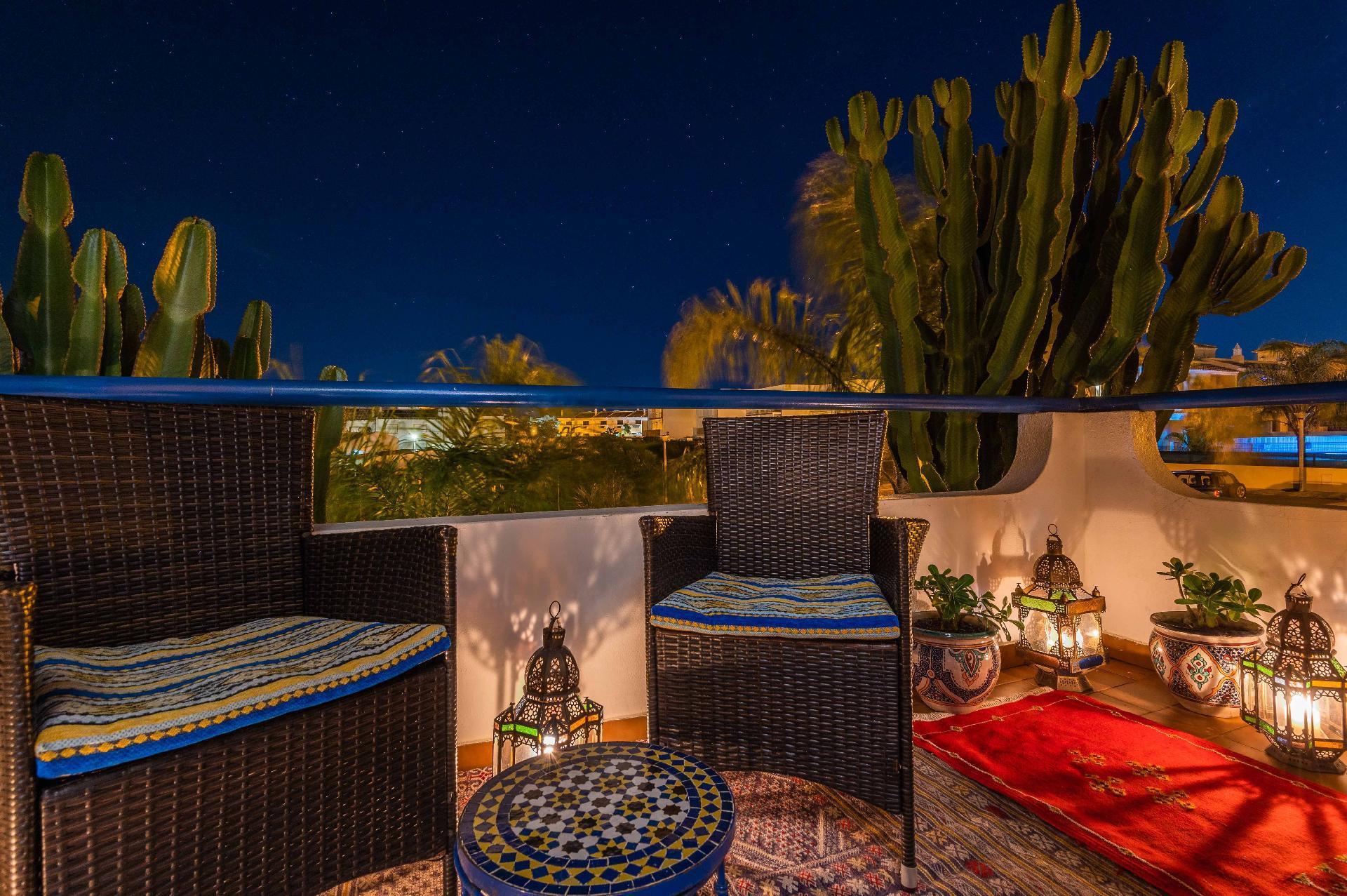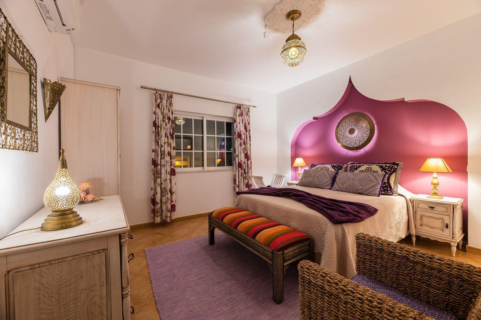 The design of this villa was inspired by the Moroccan oasis and its tall palm trees, offering a relaxing and breathtaking environment. A large private swimming pool, children's play area and two traditional Moroccan lounge areas guarantee an unforgettable visit to Galé, a privileged location in Albufeira.