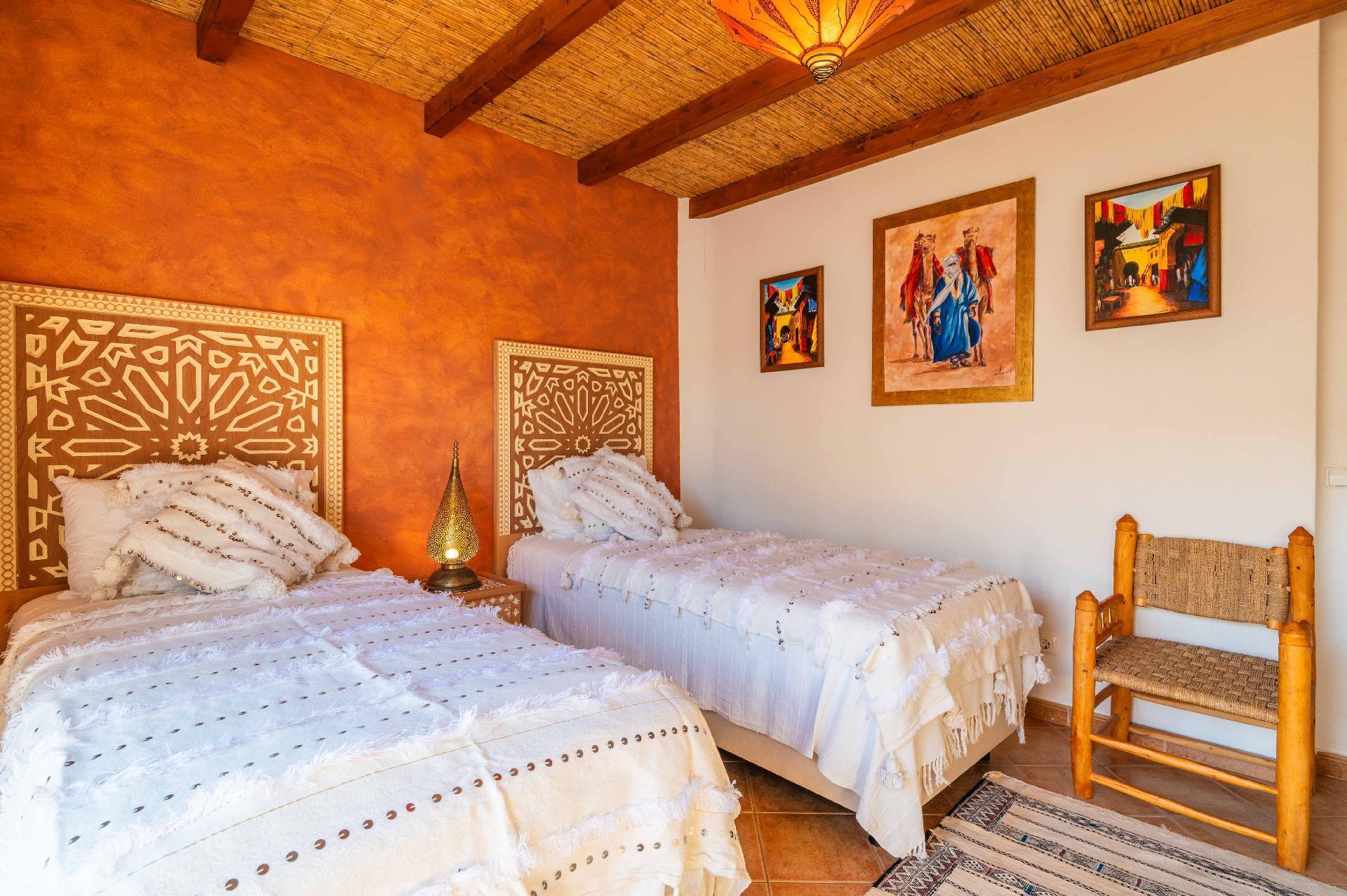 There are 4 bedrooms, all air-conditioned, 3 bathrooms inside (1 en suite) and 1 outside next to the pool. The kitchen is fully equipped with a washing machine, dishwasher, fridge and freezer, microwave, oven, coffee machine and kettle. Free Wi-Fi is available throughout the villa. Other luxuries: - Take advantage of the thermal pool cover, which keeps the water at an excellent temperature - Walk to the nearest beach in just 5 minutes - Ask assistance to book a transfer from the airport to the villa - Use cotton bed linen and towels - Enjoy unique decoration straight from Marrakech - Watch your shows on the high-definition Smart TV with satellite channels - Have your meals in the lounge or in front of the pool - Use the private outdoor barbecue.