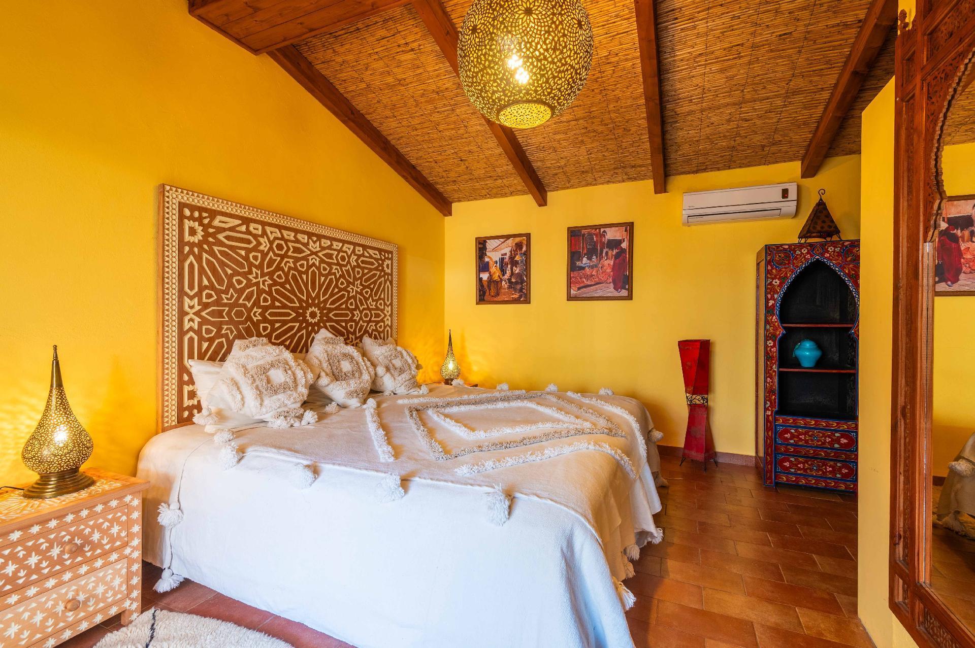 The villa has four bedrooms, all with air conditioning and en suite bathrooms, and an outdoor bathroom next to the pool. The kitchen is fully equipped with washing machine, dishwasher, fridge-freezer, microwave, oven, coffee maker and kettle. Free Wi-Fi is available throughout the villa. Other facilities: - Take advantage of the pool's thermal cover, which keeps the water at an ideal temperature. - Walk to the nearest beach in just 5 minutes. - Ask assistance to book an airport transfer to the villa. - Enjoy cotton sheets and towels. - Enjoy unique decor straight from Marrakech. - Watch programmes on the high-definition Smart TV with satellite channels. - Enjoy meals in the lounge or by the pool. - Use the private outdoor barbecue.