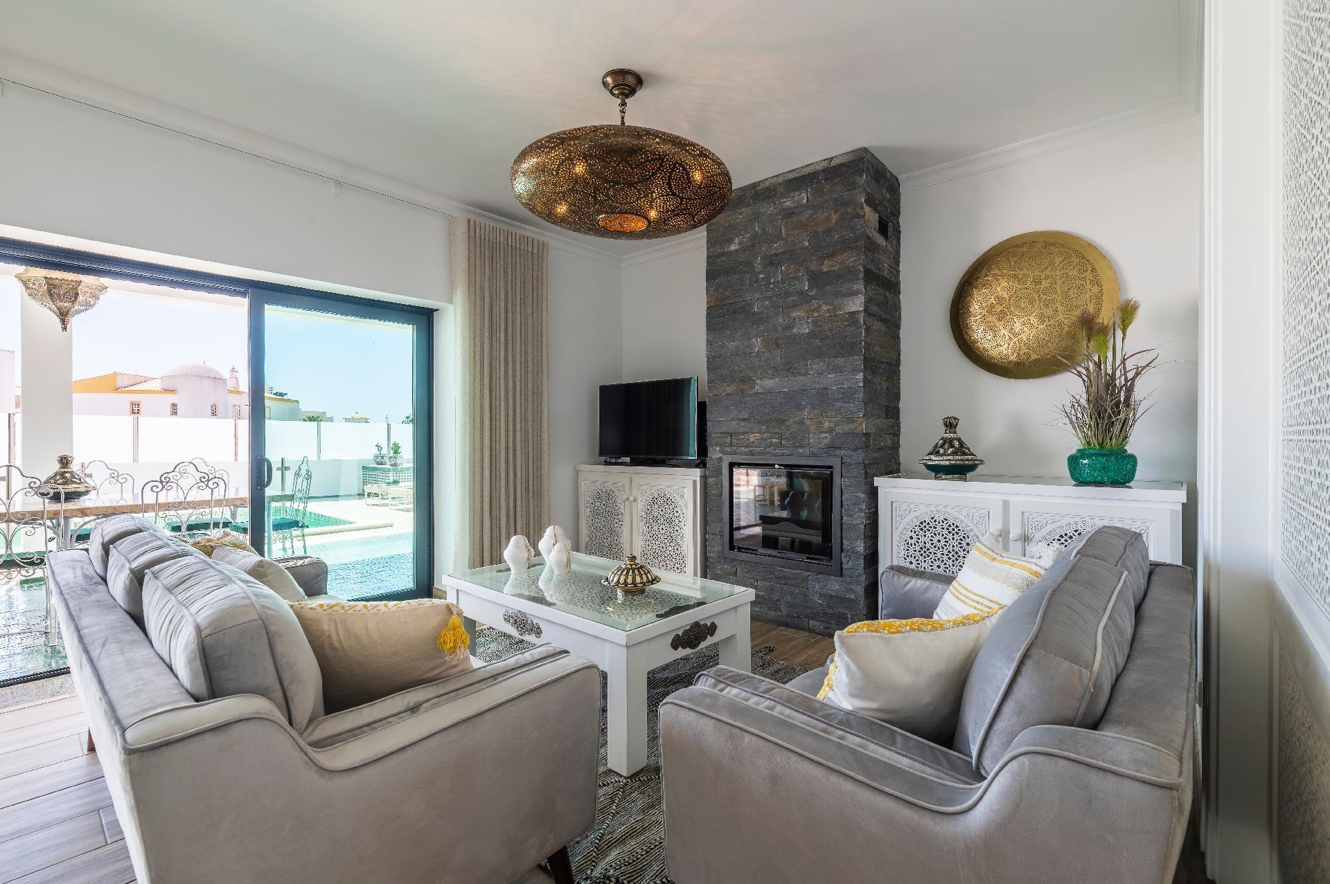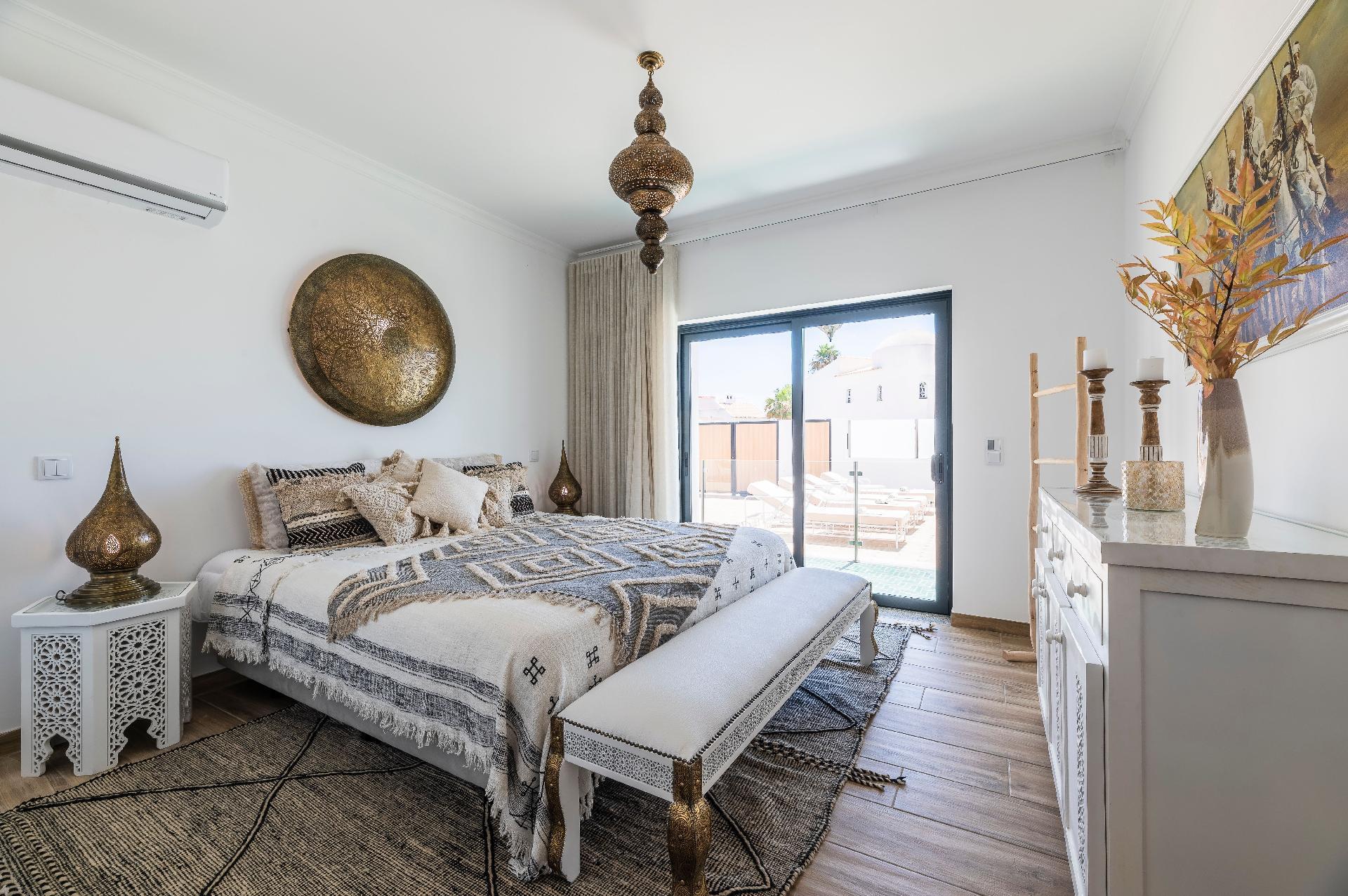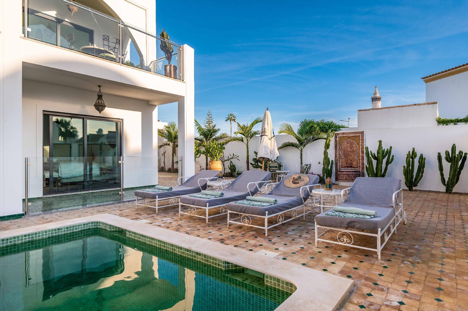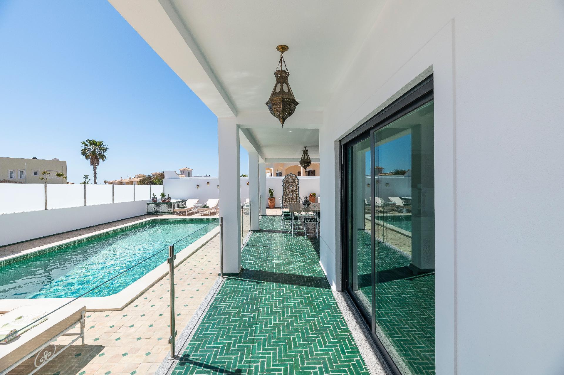 This Villa’s modern design was inspired by the Moroccan architecture and its warm colors, and offers wonderful details with comfortable furnishings throughout. A swimming pool and a traditional Berber relaxing pouffe area will be appreciated and help ensure an unforgettable visit to Gale, a premium location in Albufeira!The Villa is rigorously cleaned and sanitised before and after your stay using professional grade/hospital grade cleaners, which is in line with the Portuguese government “Clean and Safe” 2021 cleaning rules and the new European Tourism Covid-19 Safety seal.Each of the 4 bedrooms have their own bathroom, luxury beds, linens and towels. The kitchen is fully equipped with washing machine, dishwasher, fridge + freezer, microwave, oven, coffee machine and kettle. You will also have access to free Wi-Fi.- Enjoy the pool's thermal cover that keeps the water at an excellent temperature- Walk to the nearest beach in just 5 minutes- Ask for support to book an airport transfer to the Villa- Take advantage of the cotton bed linen and towels- Enjoy a unique decoration directly from Marrakech- Watch your shows on the high definition Smart TV with satellite channels- Have your meals in the living room or in front of the pool- Use the private outdoor barbecue