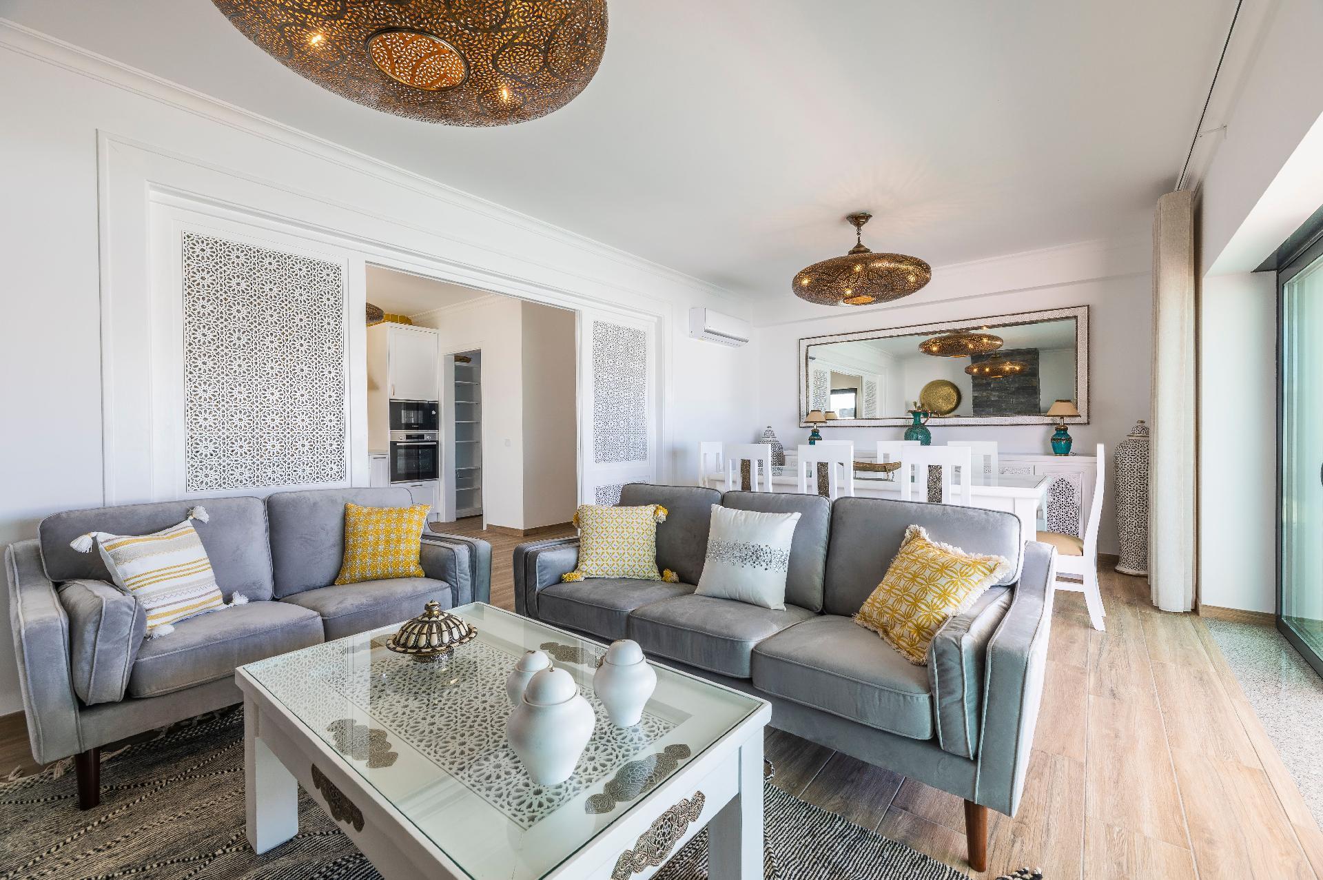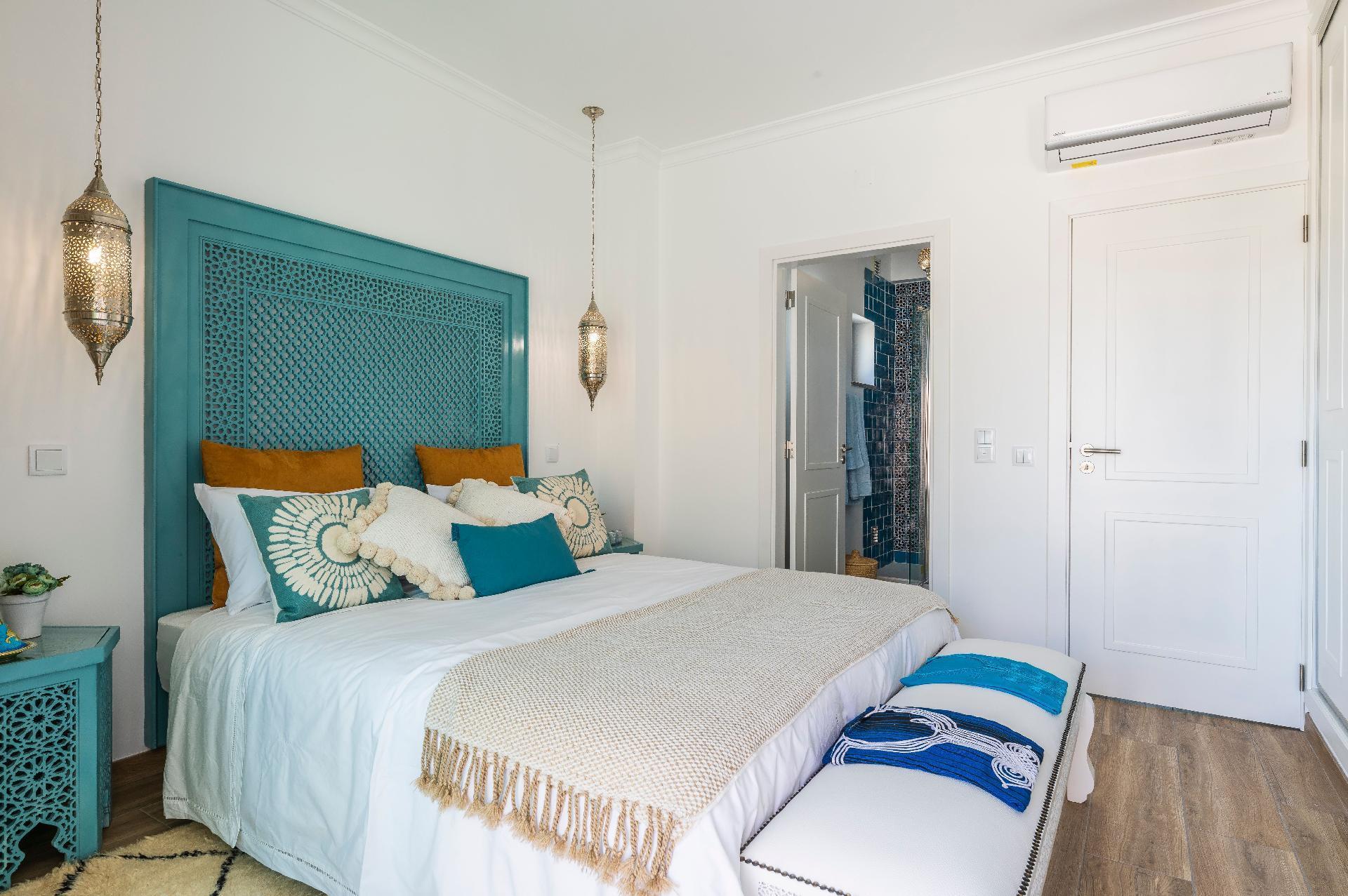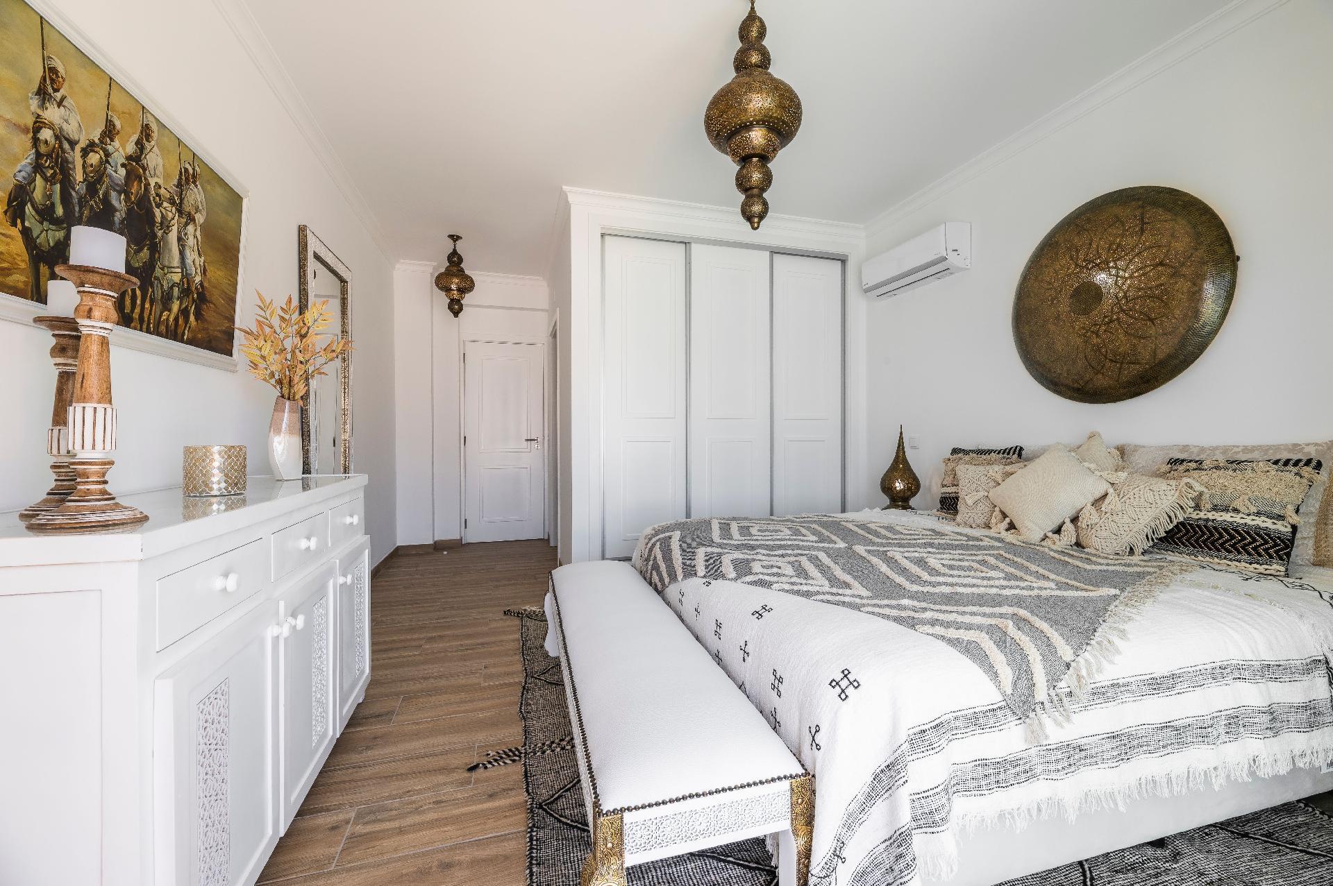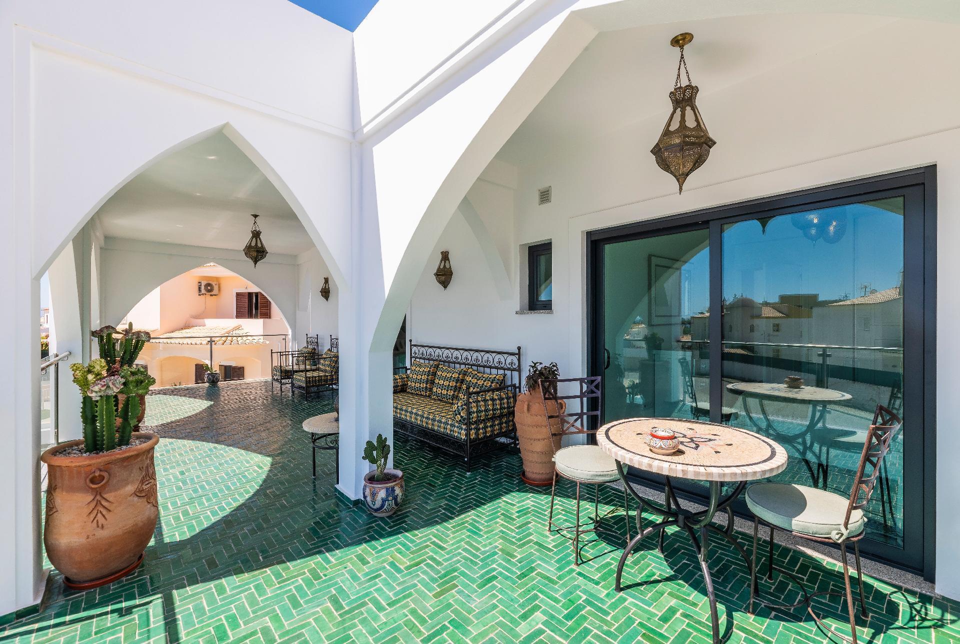 This Villa’s modern design was inspired by the Moroccan architecture and its warm colors, and offers wonderful details with comfortable furnishings throughout. A swimming pool and a traditional Berber relaxing pouffe area will be appreciated and help ensure an unforgettable visit to Gale, a premium location in Albufeira!The Villa is rigorously cleaned and sanitised before and after your stay using professional grade/hospital grade cleaners, which is in line with the Portuguese government “Clean and Safe” 2021 cleaning rules and the new European Tourism Covid-19 Safety seal.Each of the 4 bedrooms have their own bathroom, luxury beds, linens and towels. The kitchen is fully equipped with washing machine, dishwasher, fridge + freezer, microwave, oven, coffee machine and kettle. You will also have access to free Wi-Fi.- Enjoy the pool's thermal cover that keeps the water at an excellent temperature- Walk to the nearest beach in just 5 minutes- Ask for support to book an airport transfer to the Villa- Take advantage of the cotton bed linen and towels- Enjoy a unique decoration directly from Marrakech- Watch your shows on the high definition Smart TV with satellite channels- Have your meals in the living room or in front of the pool- Use the private outdoor barbecue