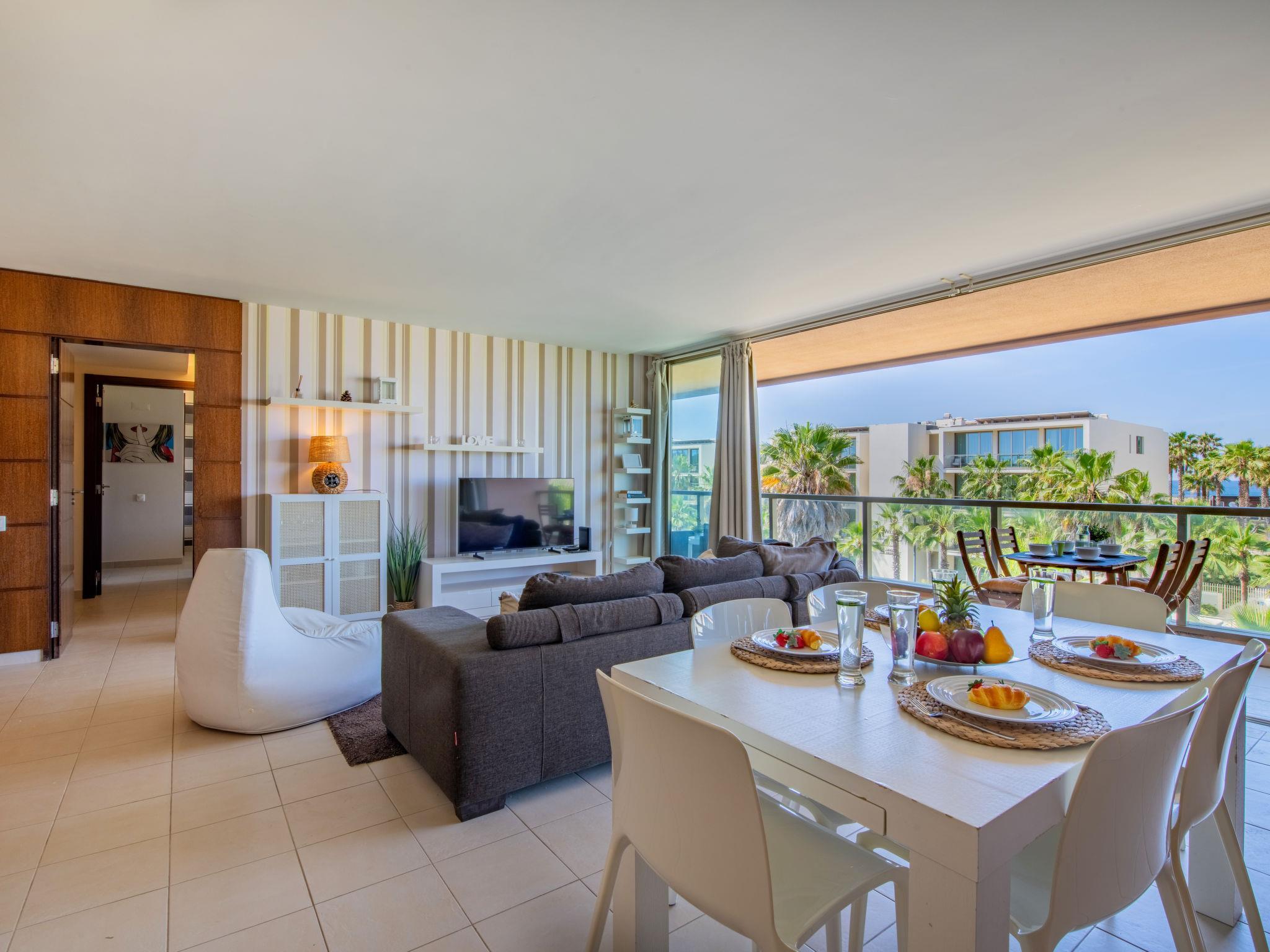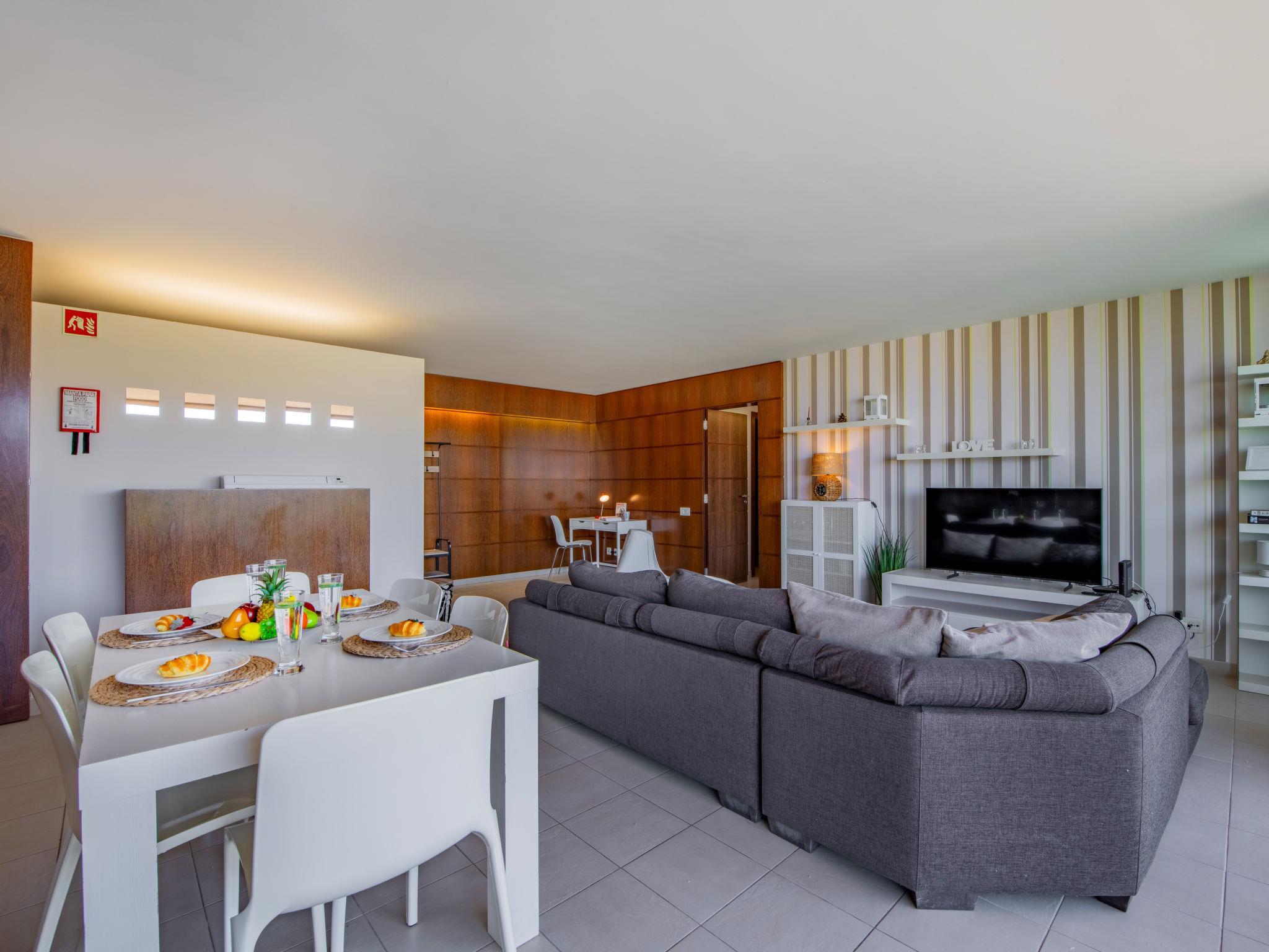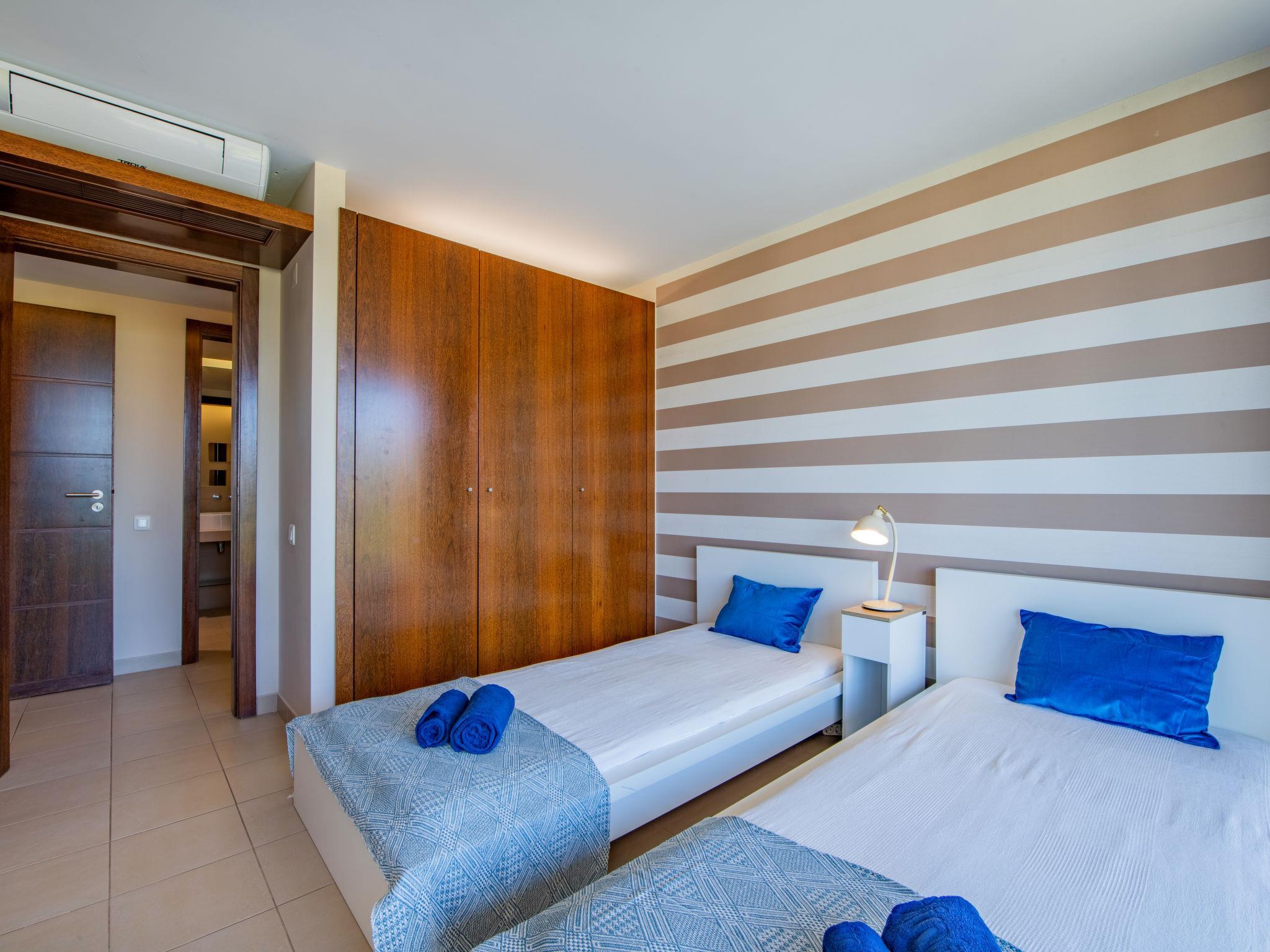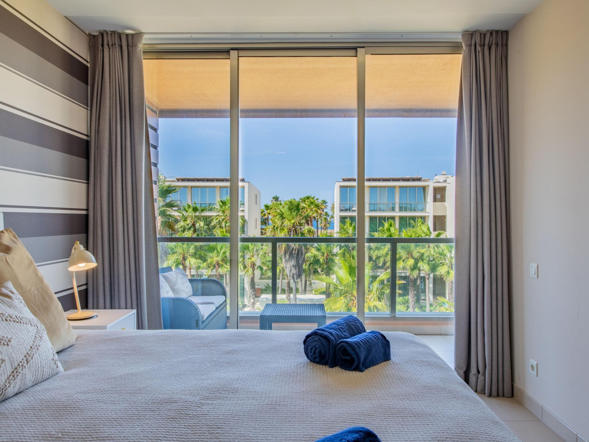 "Algarve Sun-Sea Retreat", 3-room apartment 104 m2 on 3rd floor. Spacious and bright, practical and cosy furnishings: open living/dining room with 1 double sofabed, TV, international TV channels, flat screen, air conditioning and forced-air heating. Exit to the terrace. 1 room with 1 french bed (180 cm, length 200 cm), hip bath/WC, double hand-basin, air conditioning and forced-air heating. Exit to the terrace. 1 room with 2 beds (90 cm, length 200 cm), air conditioning and forced-air heating. Exit to the balcony. Open kitchen (oven, dishwasher, 4 ceramic glass hob hotplates, toaster, kettle, microwave, freezer, electric coffee machine, Capsules for coffee machine (Delta not incl)) with air conditioning and forced-air heating. Exit to the terrace. Bath/WC, sep. WC. Boiler (200 litres). Large terrace. Terrace furniture. Facilities: washing machine, iron, children's high chair, baby cot for up to 2 year olds, hair dryer. Internet (WiFi, free). Parking space n 13 3D (roofed). Please note: suitable for families. Non-smokers only. Fire extinguisher. 59585/AL