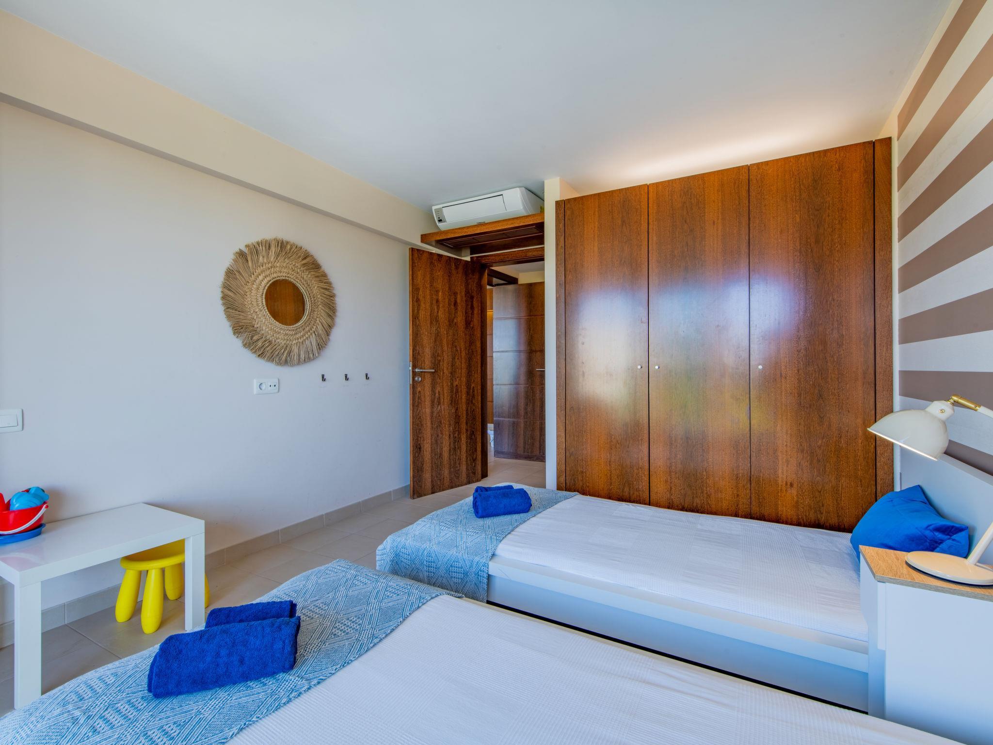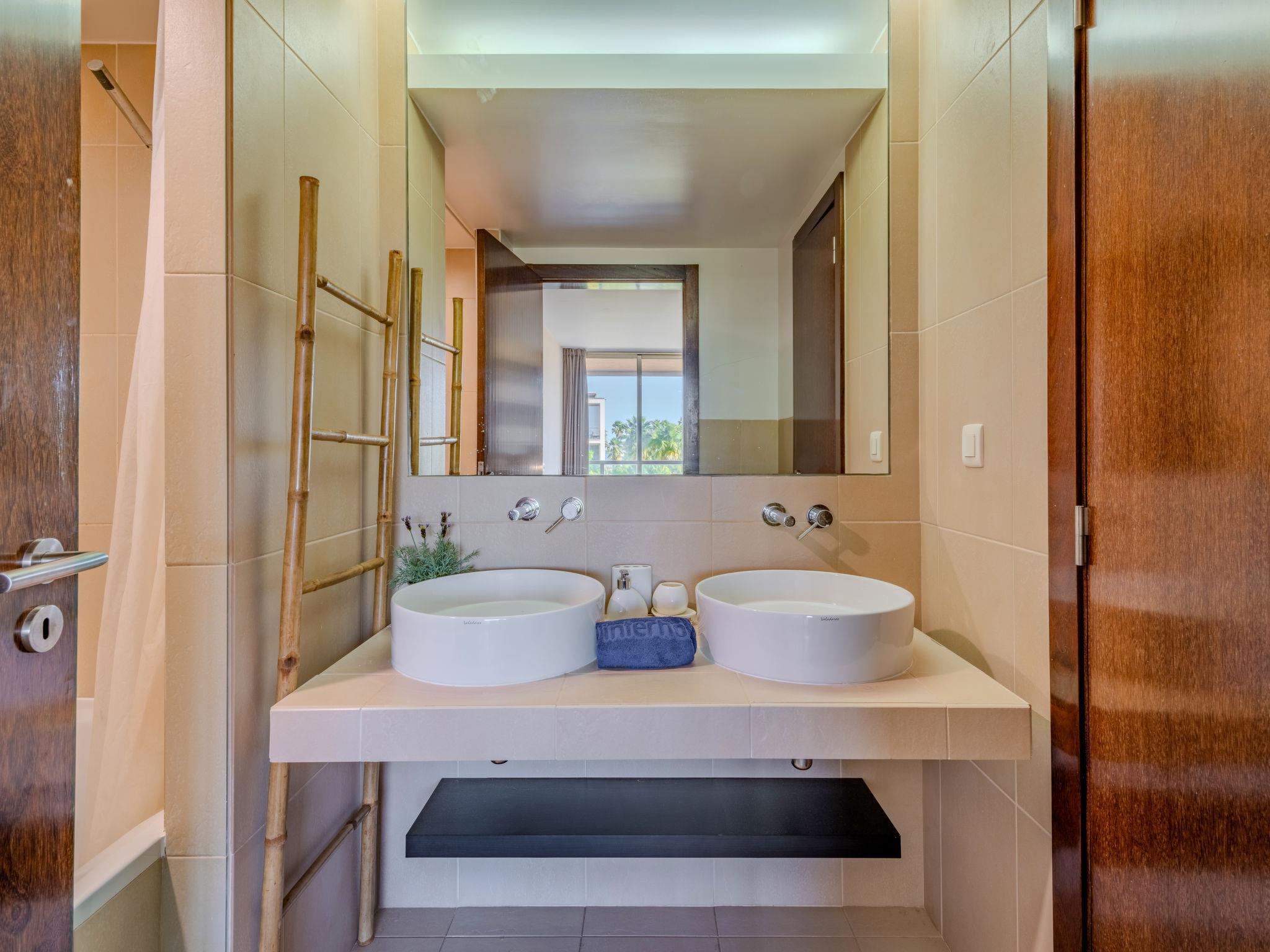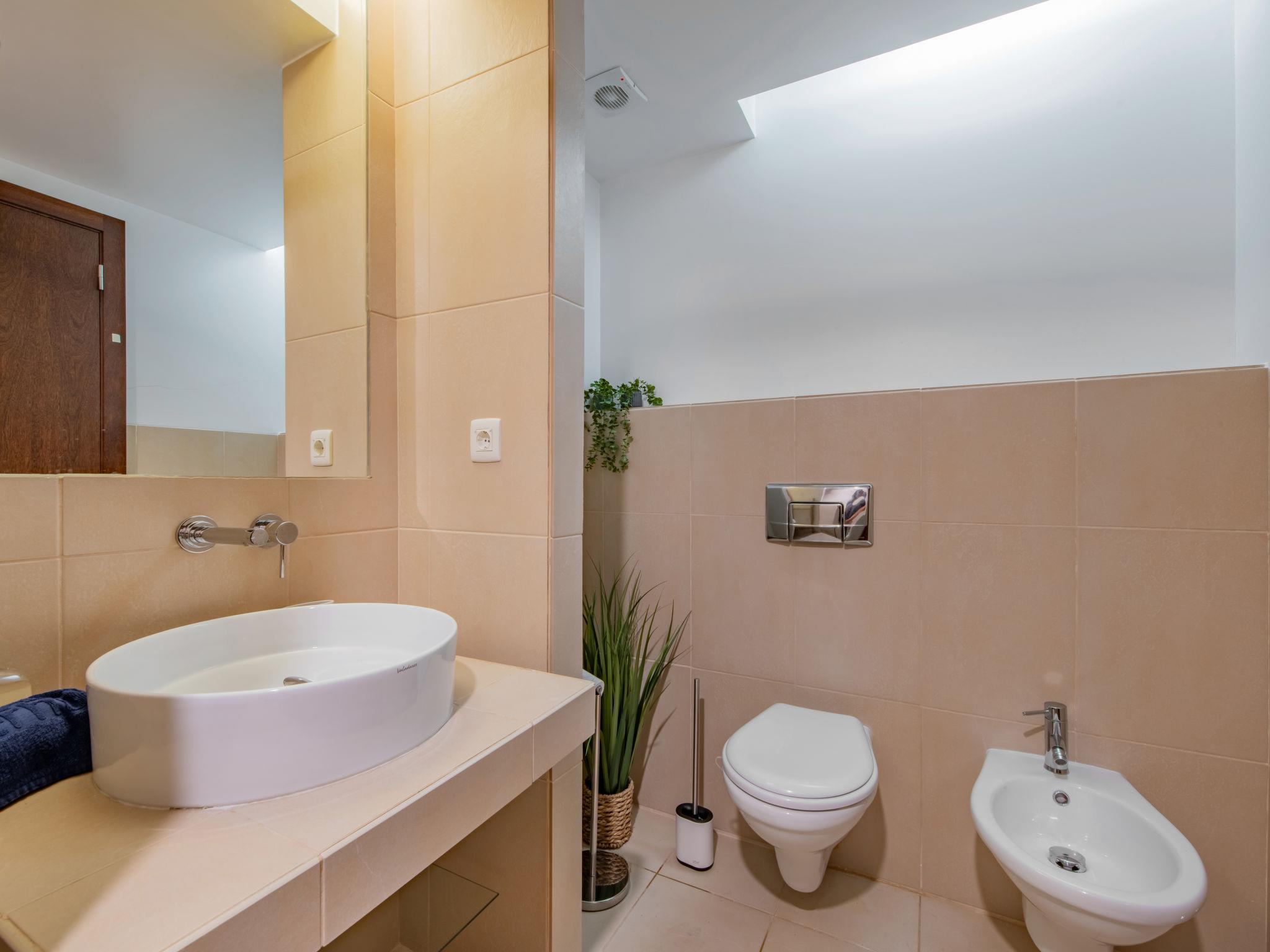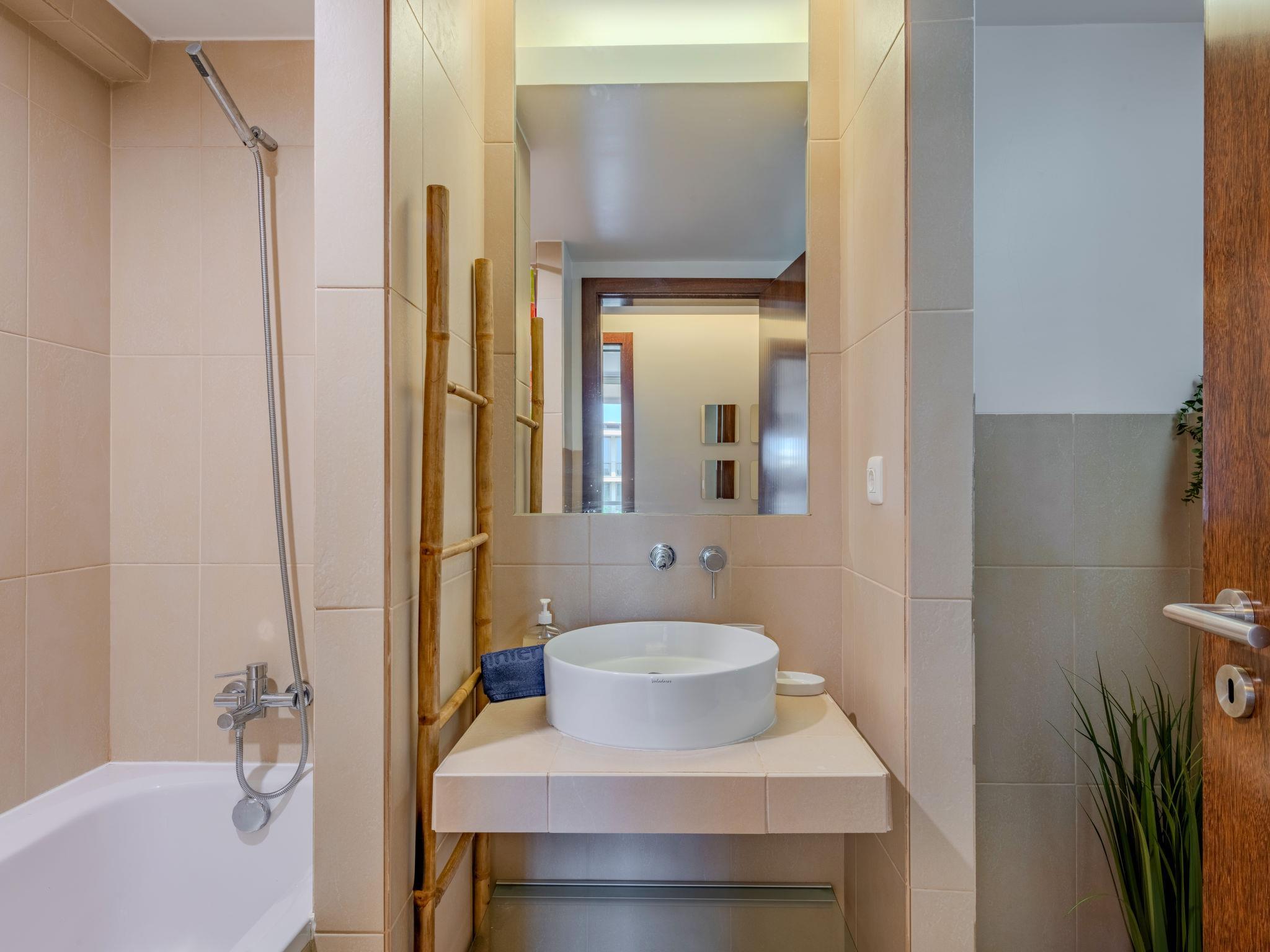 "Algarve Sun-Sea Retreat", 3-room apartment 104 m2 on 3rd floor. Spacious and bright, practical and cosy furnishings: open living/dining room with 1 double sofabed, TV, international TV channels, flat screen, air conditioning and forced-air heating. Exit to the terrace. 1 room with 1 french bed (180 cm, length 200 cm), hip bath/WC, double hand-basin, air conditioning and forced-air heating. Exit to the terrace. 1 room with 2 beds (90 cm, length 200 cm), air conditioning and forced-air heating. Exit to the balcony. Open kitchen (oven, dishwasher, 4 ceramic glass hob hotplates, toaster, kettle, microwave, freezer, electric coffee machine, Capsules for coffee machine (Delta not incl)) with air conditioning and forced-air heating. Exit to the terrace. Bath/WC, sep. WC. Boiler (200 litres). Large terrace. Terrace furniture. Facilities: washing machine, iron, children's high chair, baby cot for up to 2 year olds, hair dryer. Internet (WiFi, free). Parking space n 13 3D (roofed). Please note: suitable for families. Non-smokers only. Fire extinguisher. 59585/AL