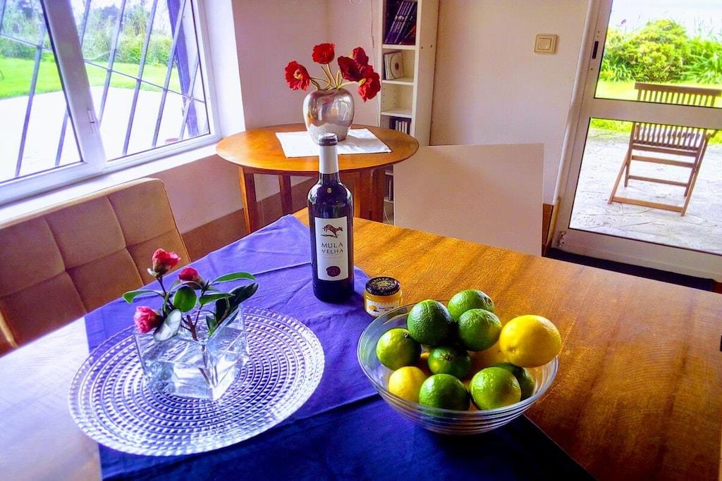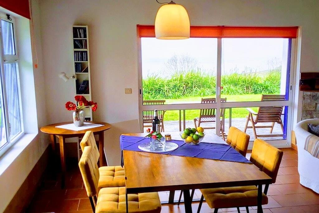 Et kærligt møbleret feriehus for hele familien! Hvis I kun er to personer, så spørg os venligst om vores mindre sommerhus til to personer. Besøg vores hjemmeside azorenurlaub.info for mere information, hvor I også kan finde vores to mindre sommerhuse til to personer. Dette hyggelige og komfortable feriehus i landlige omgivelser lover en vidunderlig ferie. Fra stue-/spisestuen har I en storslået panoramaudsigt over Atlanterhavet med dets spektakulære bølger og betagende solnedgange – en fornøjelse i enhver sæson. Den smukke have, den overdækkede terrasse og det rummelige grillområde inviterer jer til at slappe af og koble fra når som helst.