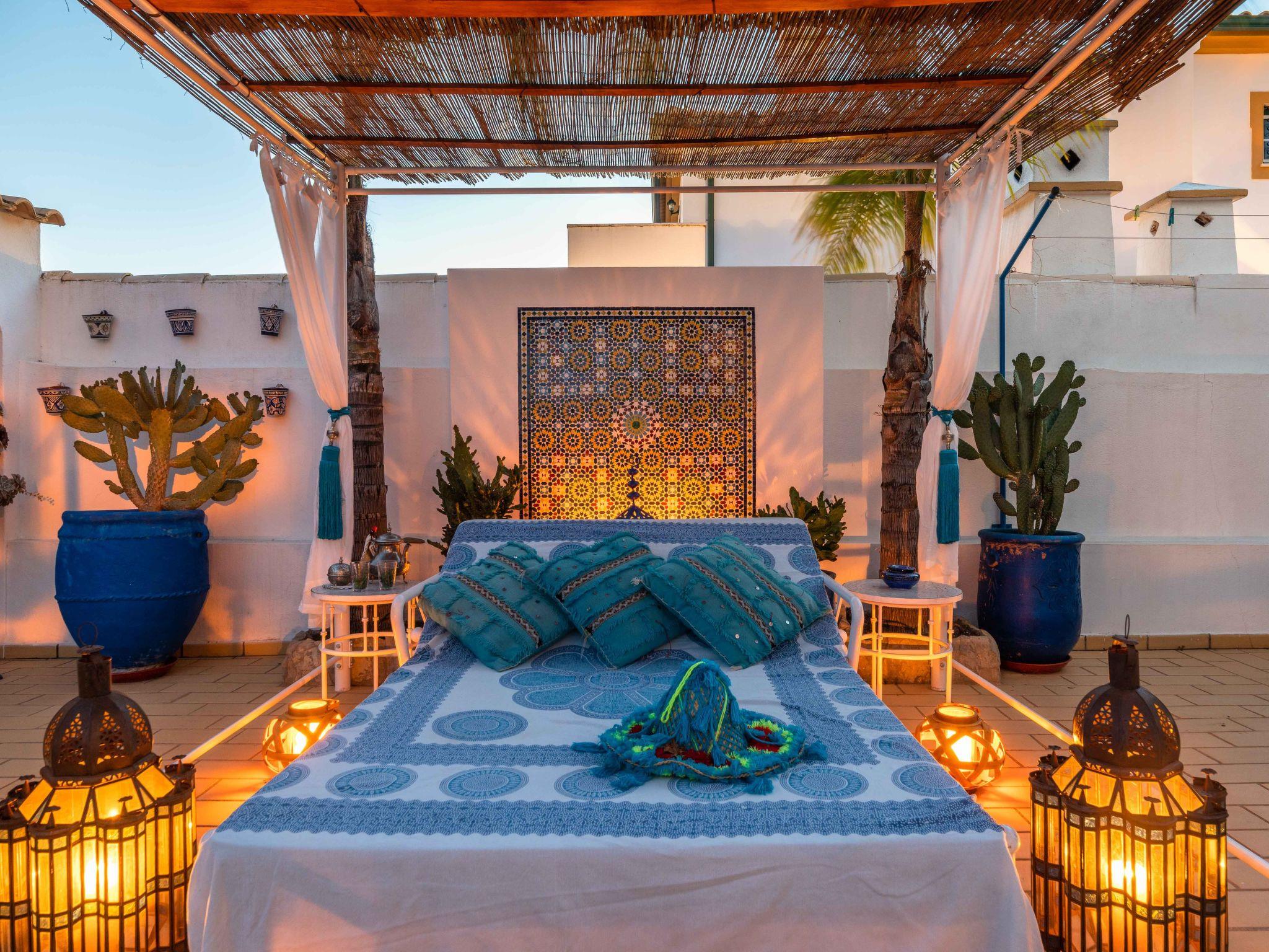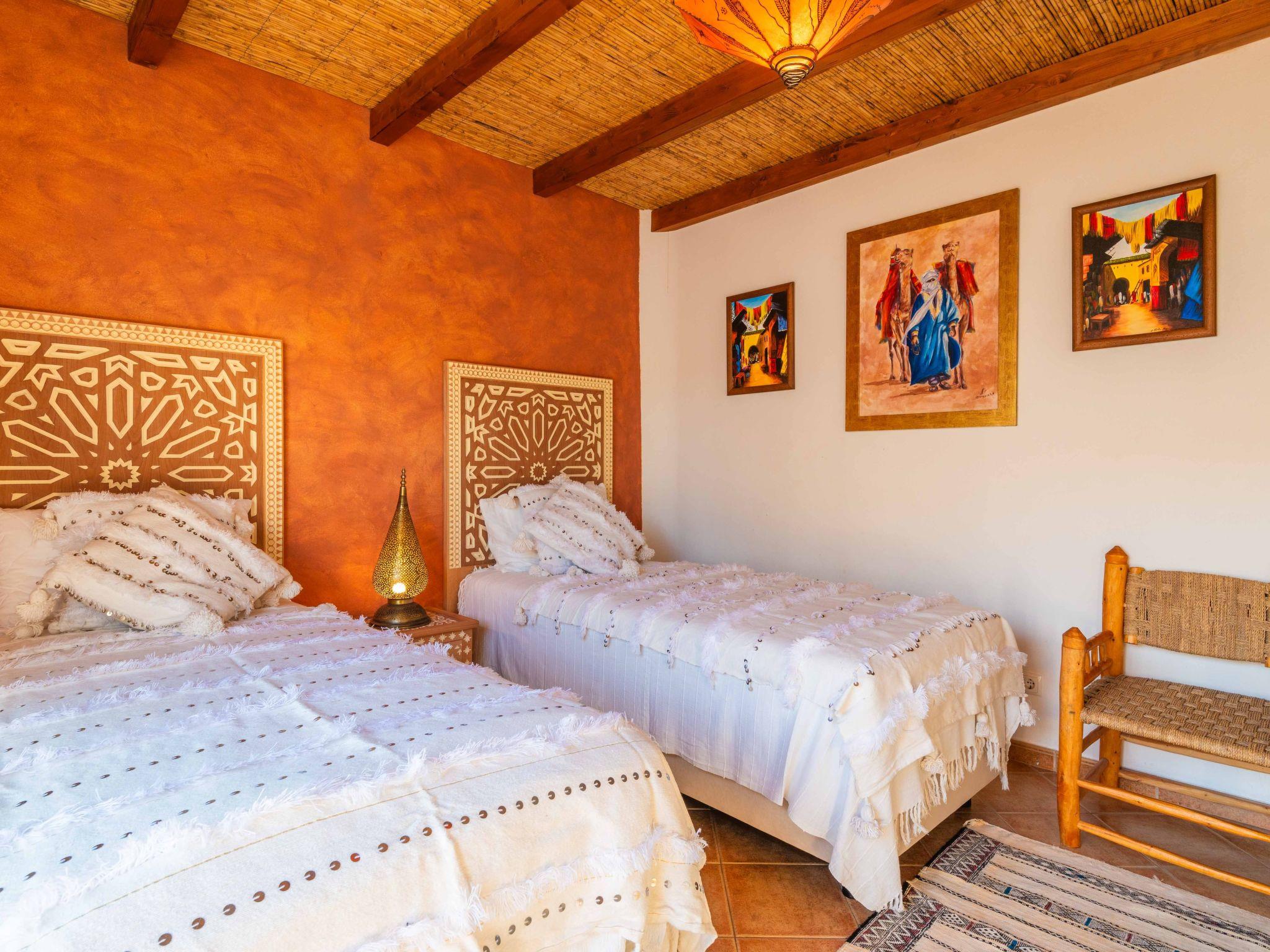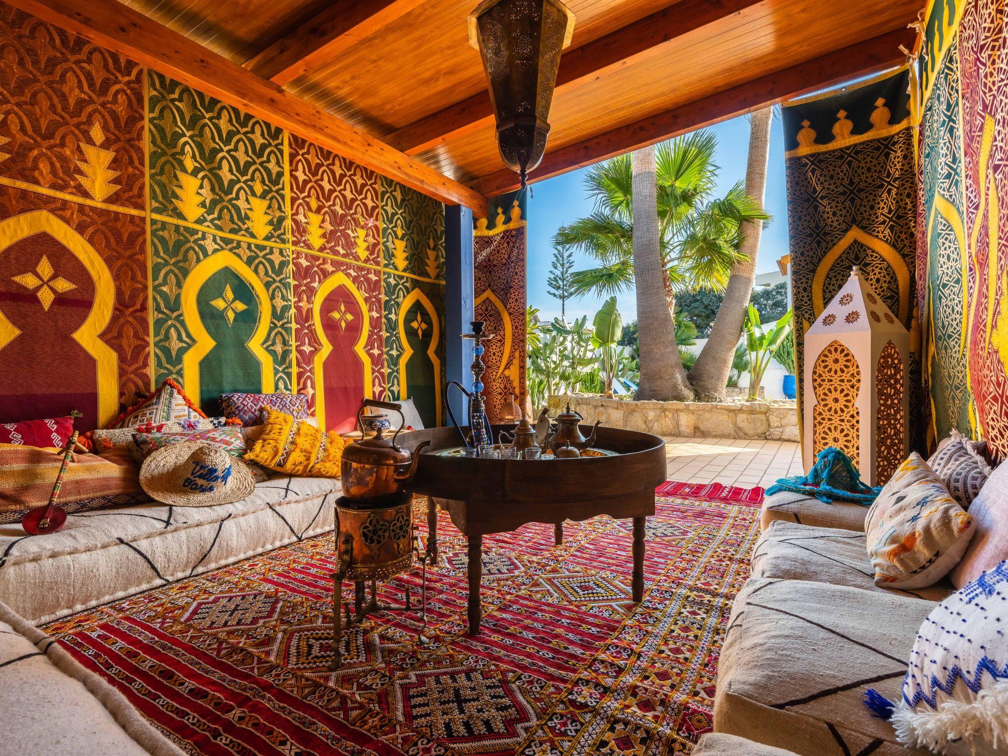 There are 4 bedrooms, all air-conditioned, 3 bathrooms inside (1 en suite) and 1 outside next to the pool. The kitchen is fully equipped with a washing machine, dishwasher, fridge and freezer, microwave, oven, coffee machine and kettle. Free Wi-Fi is available throughout the villa. Other luxuries: - Take advantage of the thermal pool cover, which keeps the water at an excellent temperature - Walk to the nearest beach in just 5 minutes - Ask assistance to book a transfer from the airport to the villa - Use cotton bed linen and towels - Enjoy unique decoration straight from Marrakech - Watch your shows on the high-definition Smart TV with satellite channels - Have your meals in the lounge or in front of the pool - Use the private outdoor barbecue.