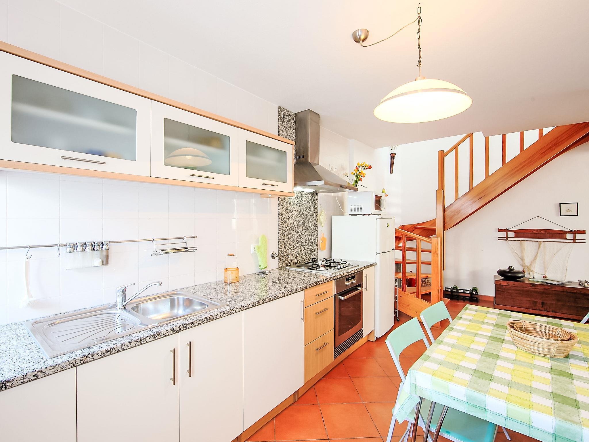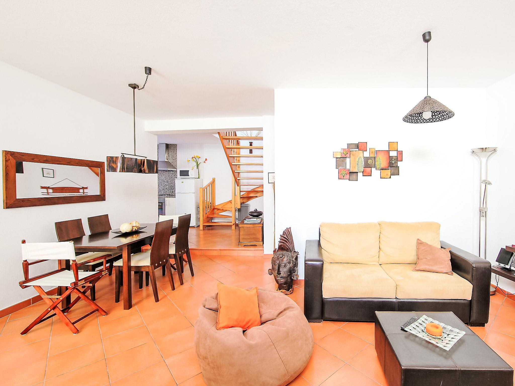 3-room house 100 m2 on 2 levels. Practical furnishings: living/dining room with 2 sleeping facilities (2 x 80 cm, length 190 cm), TV, CD-player, DVD and paraffin heater. Open kitchen (4 hot plates, oven, microwave, freezer) with dining table. Shower/WC. Upper floor: 2 rooms, each room with 1 french bed (140 cm), paraffin heater. Bath/bidet/WC. Terrace 15 m2. Terrace furniture. Facilities: washing machine, iron. Internet (WiFi, free). Maximum 1 pet/ dog allowed. Skylight in the bedrooms. 7328/AL