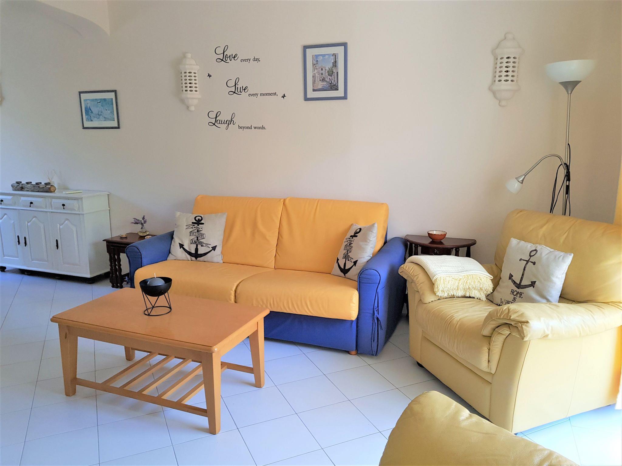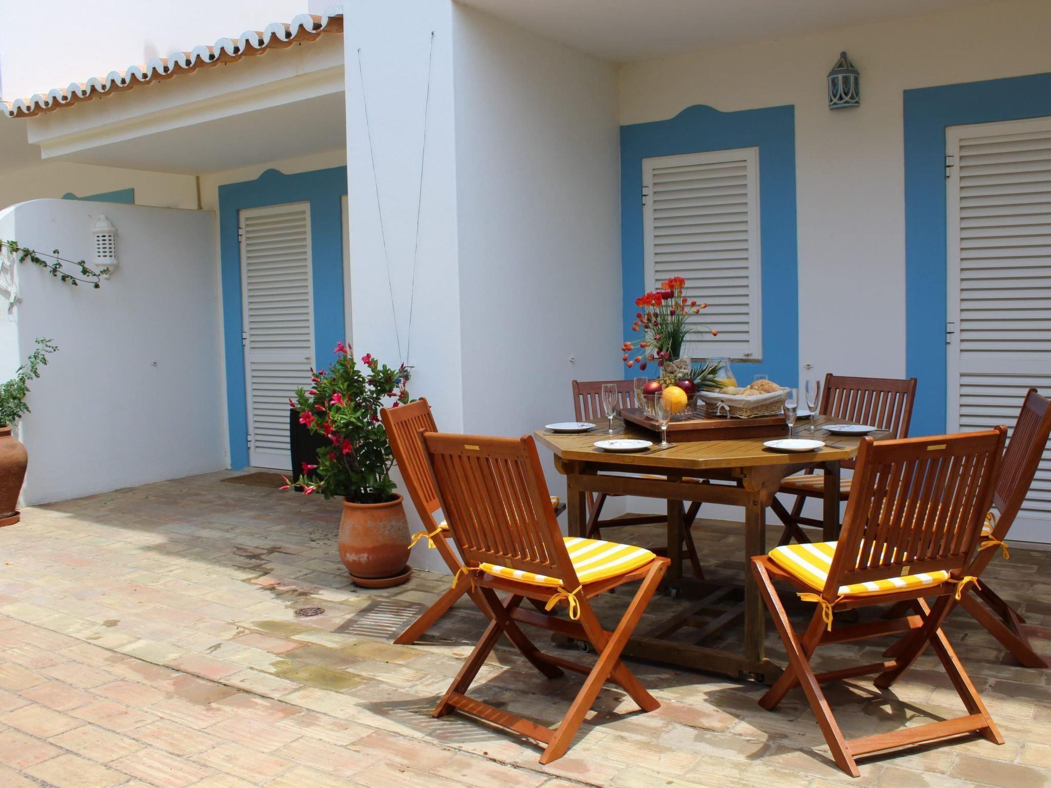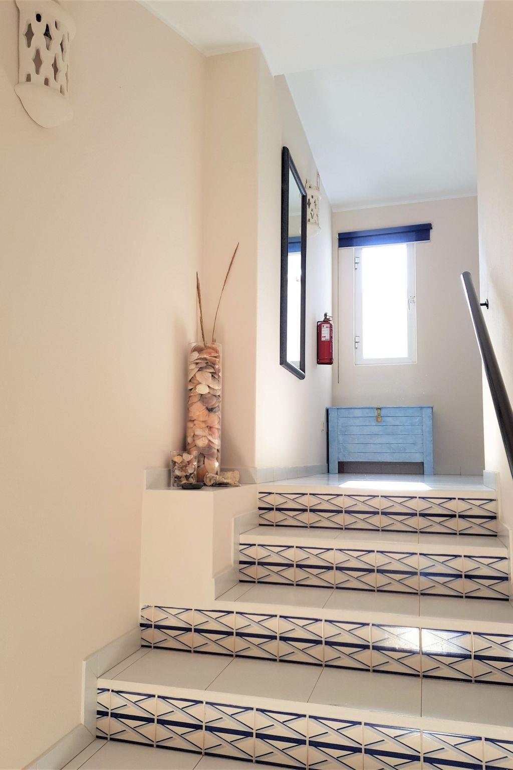 This is a two-storey holiday house, which is a row house on a holiday complex. The complex is on the edge of the town centre, not far from the Algarve beaches.