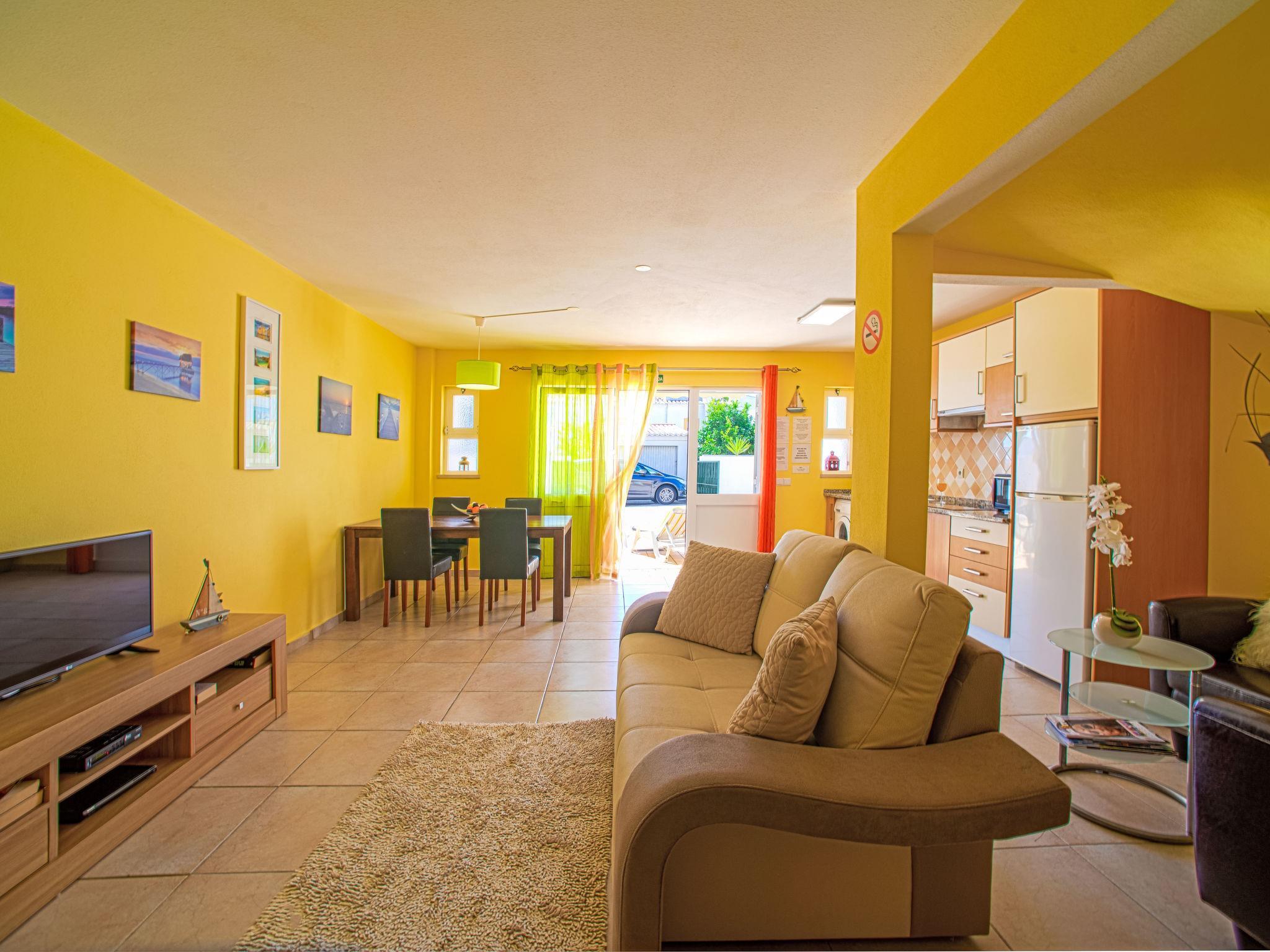 "Baia de Cristal 2", 2-room apartment 55 m2. Renovated in 2012, very practical and cosy furnishings: open living/dining room with dining table, cable TV and flat screen. Exit to the terrace. 1 room, without window with 1 french bed (160 cm, length 200 cm), shower/WC. Open kitchen (4 ceramic glass hob hotplates, toaster, kettle, microwave, freezer, electric coffee machine). Electric heating. Small terrace 50 m2. Terrace furniture, deck chairs (2). Facilities: washing machine, iron. Internet (WiFi, free). Please note: non-smokers only. Private entrance, fire extinguisher. No internal connecting door between the separated properties. 88915/AL