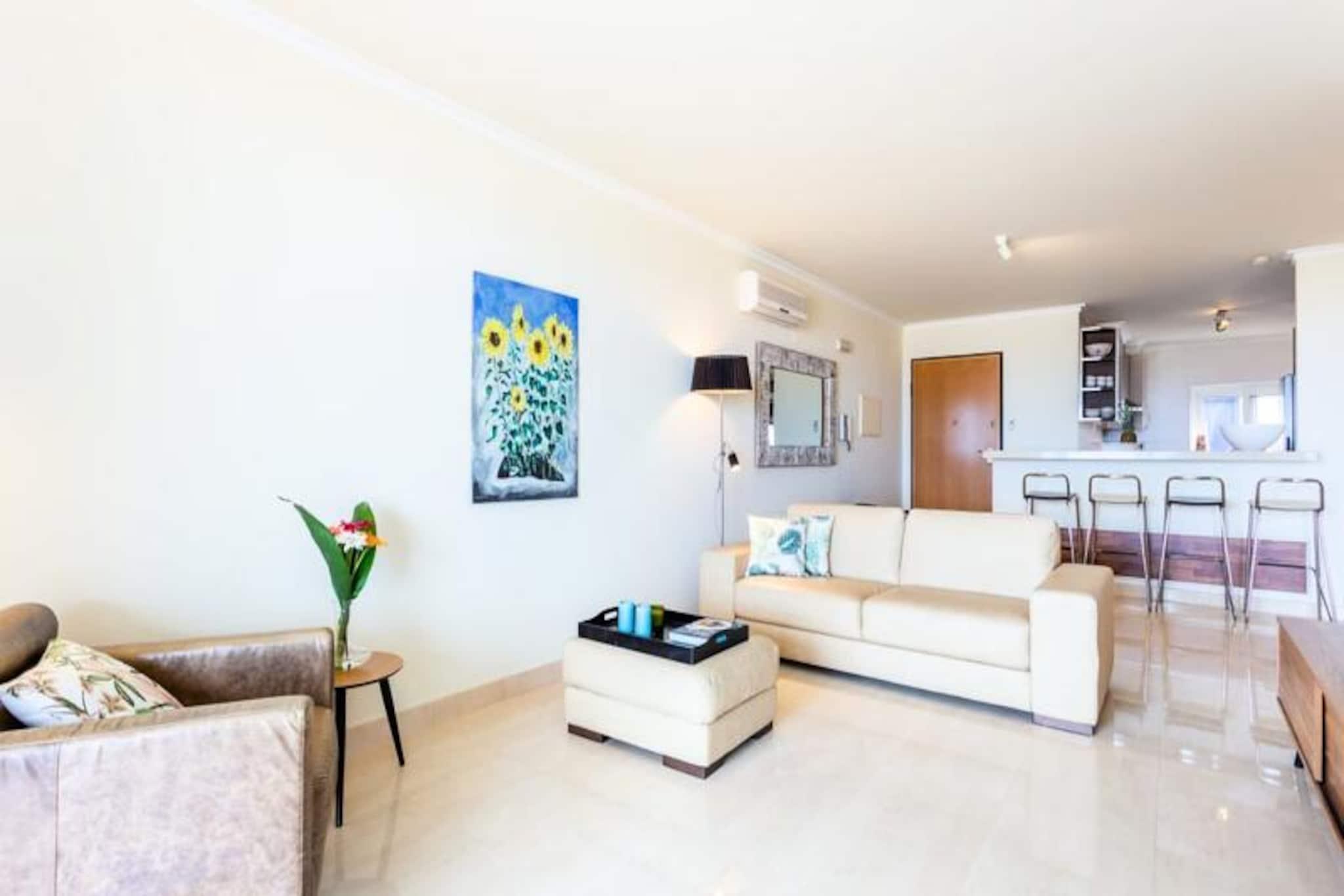 Forestil dig at vågne op til den beroligende lyd af bølger og den endeløse horisont af Atlanterhavet, der strækker sig foran dig. Denne luksuriøse lejlighed med 2 soveværelser og 2 badeværelser er et sandt paradis ved havet, perfekt beliggende kun få skridt fra det gyldne sand på Meia Praia-stranden i Lagos. Med sit moderne design og elegante interiør tilbyder denne ejendom en fredfyldt oase for familier eller par, der søger en blanding af komfort og en betagende udsigt. Uanset om du nyder din morgenkaffe på den rummelige private altan eller tager en dukkert i poolen på taget, føles hvert øjeblik her som en hyldest til kystens skønhed. Lejligheden er omhyggeligt designet til at imødekomme alle dine behov. Det åbne køkken og opholdsstue er badet i naturligt lys, med store vinduer, der indrammer den fantastiske havudsigt. Begge soveværelser er hyggelige, men sofistikerede, mens badeværelserne, der er renoveret i 2020, har elegante brusekabiner. Bygningen har også en solopvarmet tagterrasse med pool og solterrasse, der er det perfekte sted at slappe af efter en dag med udforskning. Med Wi-Fi, tv og alt sengelinned inkluderet, lover dit ophold at blive lige så bekvemt som afslappende. Uden for lejligheden venter den livlige by Lagos. En 15 minutters gåtur bringer dig til marinaen, hvor du finder livlige barer, restauranter og butikker. Herfra kan du krydse broen til det historiske centrum, der er kendt for sine charmerende gader, lokale markeder og lækre mad. For eventyrlystne er Algarve-kystens dramatiske klipper og huler bedst at udforske med båd, kajak eller paddleboard. Meia Praia byder på en række spisesteder ved stranden, mens det nærliggende Vila Galé-kompleks tilbyder spa- og fitnessfaciliteter for en smule ekstra forkælelse. Uanset om du er her for at slappe af ved havet, udforske Lagos' rige historie eller kaste dig ud i spændende vandsport, er denne lejlighed det perfekte udgangspunkt. Med Faro Lufthavn kun en time væk er din drømmeferie ved kysten tættere på, end du tror.