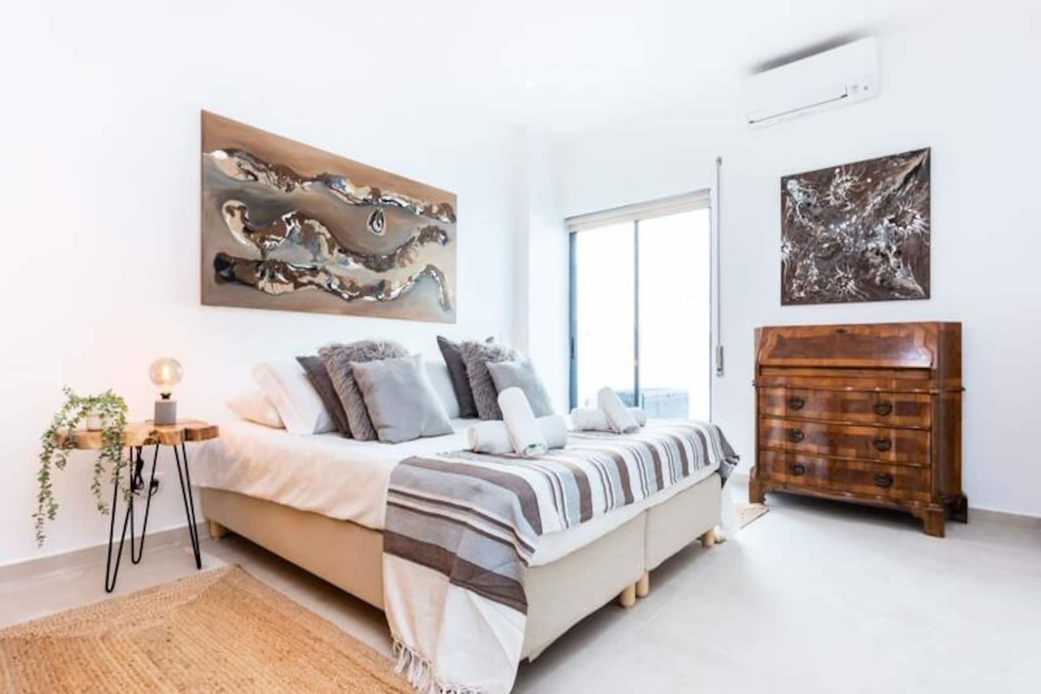 I hjertet af Lagos, kun få skridt fra den livlige marina, tilbyder denne farverige og indbydende lejlighed det perfekte tilflugtssted for din ferie i Algarve. Forestil dig at vågne op til det gyldne sollys, der strømmer ind gennem vinduerne, nyde din morgenkaffe på den rummelige private terrasse og planlægge din dag i denne maleriske kystby. Uanset om du er her for at slappe af eller udforske, er denne ejendom det ideelle udgangspunkt for dine eventyr. Lejligheden har tre smukt indrettede soveværelser og to moderne badeværelser, herunder et en suite. Det fuldt udstyrede køkken er klar til alle dine kulinariske kreationer, mens den lyse og luftige stue har en hyggelig brændeovn, der er perfekt til køligere aftener. Den store terrasse indbyder til at nyde solen eller spise udendørs med dine kære. Med Wi-Fi, tv og alt sengelinned og håndklæder er der tænkt på alle detaljer for at sikre din komfort. Lejligheden ligger på en bakke lige bag Lagos Marina, og du finder alt, hvad du har brug for, inden for gåafstand. Marinaen er et centrum for aktivitet med restauranter, barer med live musik og et supermarked kun få minutter væk. En kort gåtur på 15 minutter bringer dig til det historiske centrum af Lagos eller den fantastiske Meia Praia-strand, hvor du kan nyde solen eller prøve kræfter med vandsport som kajakroning eller paddleboarding. For en virkelig uforglemmelig oplevelse kan du tage en bådtur for at udforske de betagende klipper og skjulte huler, der gør denne kyststrækning så berømt. Uanset om du søger afslapning, eventyr eller en blanding af begge dele, tilbyder denne lejlighed den perfekte kombination af komfort, bekvemmelighed og charme. Skab varige minder i et af Portugals mest fortryllende rejsemål.
