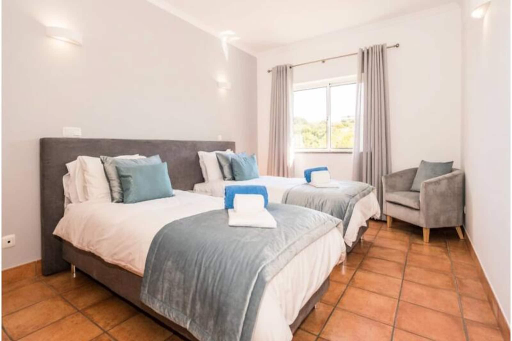 Forestil dig at vågne op til den bløde lyd af havbrisen og træde ud på din private terrasse for at nyde den gyldne portugisiske sol. Denne luksuriøse lejlighed med to soveværelser i det prestigefyldte Porto de Mós-område i Lagos tilbyder den perfekte blanding af komfort, stil og bekvemmelighed til din drømmeferie. Beliggende i et roligt kompleks tilbyder denne ejendom en rolig tilflugtssted, mens den kun er få øjeblikke væk fra Lagos' pulserende charme. Træd indenfor og oplev et lyst og luftigt opholdsrum, smagfuldt møbleret til den højeste standard. Soveværelset har en luksuriøs kingsize-seng og et eget badeværelse med både badekar og bruseniche, der sikrer ultimativ afslapning. Det andet soveværelse med to komfortable enkeltsenge er perfekt til familier eller venner, der rejser sammen. Et andet moderne badeværelse med bruseniche bidrager til bekvemmeligheden. Det fuldt udstyrede køkken inviterer dig til at tilberede lækre måltider, mens den rummelige opholds- og spisestue er ideel til afslapning efter en dag med udforskning. Komplekset kan prale af en fantastisk palmeomkranset swimmingpool, et veludstyret fitnesscenter og endda en lille legeplads for børn i alle aldre. Liggestolene omkring poolen er det perfekte sted at slappe af og nyde Algarves varme klima. For dem, der foretrækker stranden, ligger det gyldne sand ved Porto de Mós mindre end 10 minutters gang væk, hvor du finder restauranter ved stranden og en betagende udsigt. Den livlige historiske by Lagos med sine brostensbelagte gader, maleriske marina og pulserende natteliv ligger kun 8 minutters kørsel væk. Uanset om du udforsker de dramatiske klipper ved Ponta da Piedade, dyrker vandsport eller forkæler dig selv med lokal mad, fungerer denne lejlighed som den perfekte base for dit Algarve-eventyr. Med nem adgang til offentlig transport og nærliggende golfbaner lover dit ophold at blive så afslappende eller så aktivt, som du ønsker.