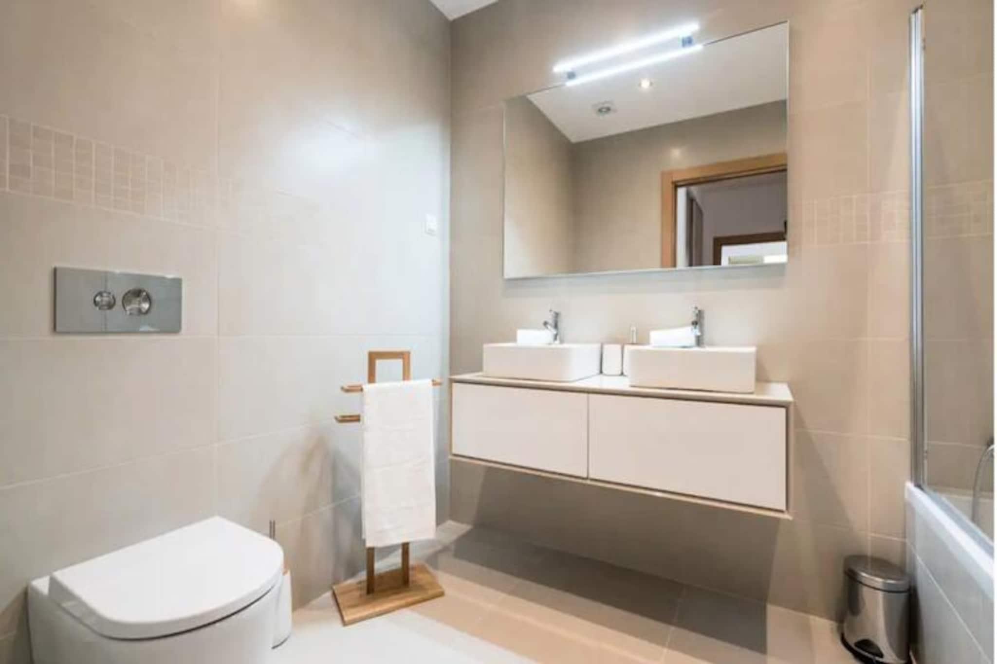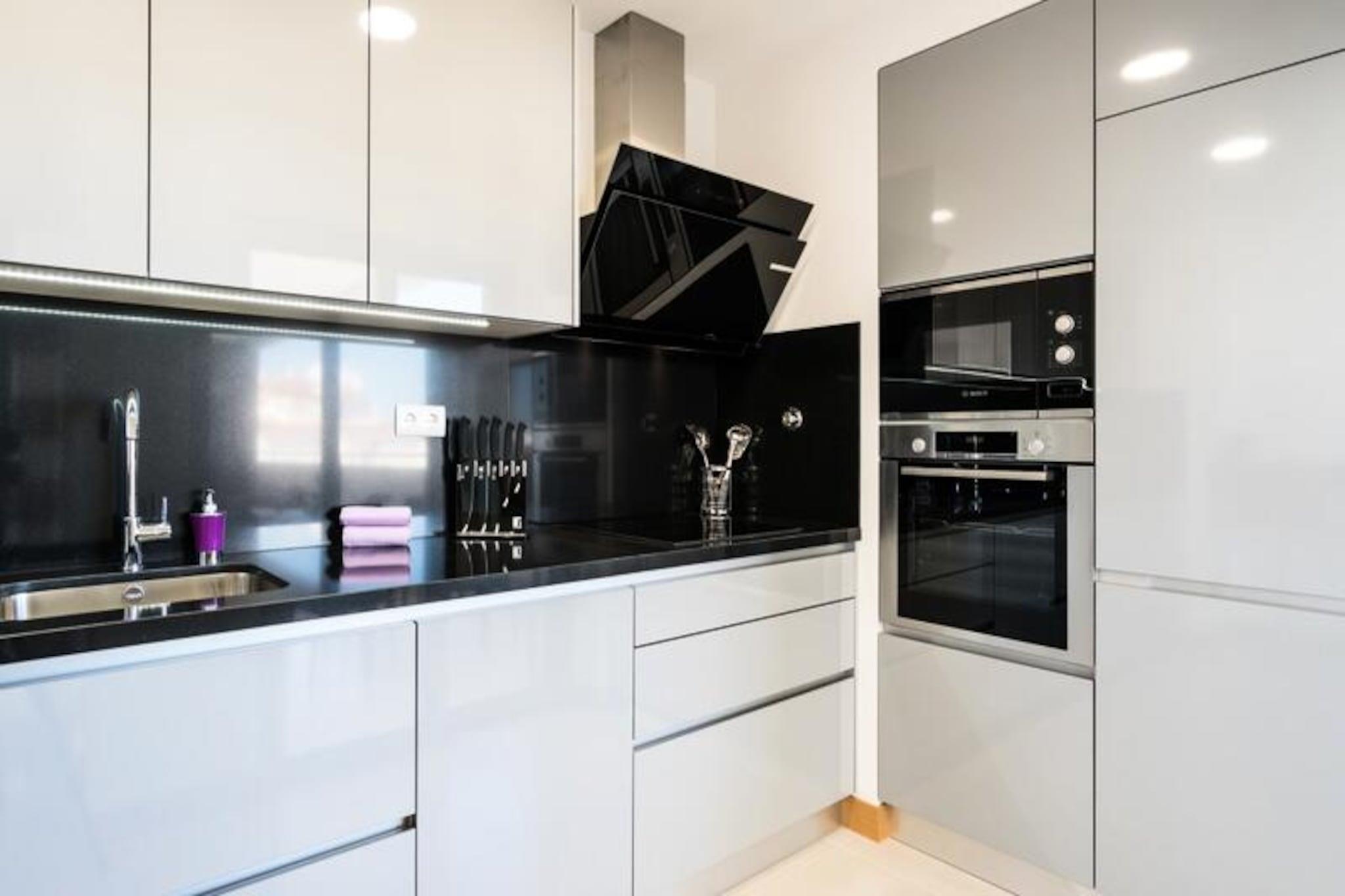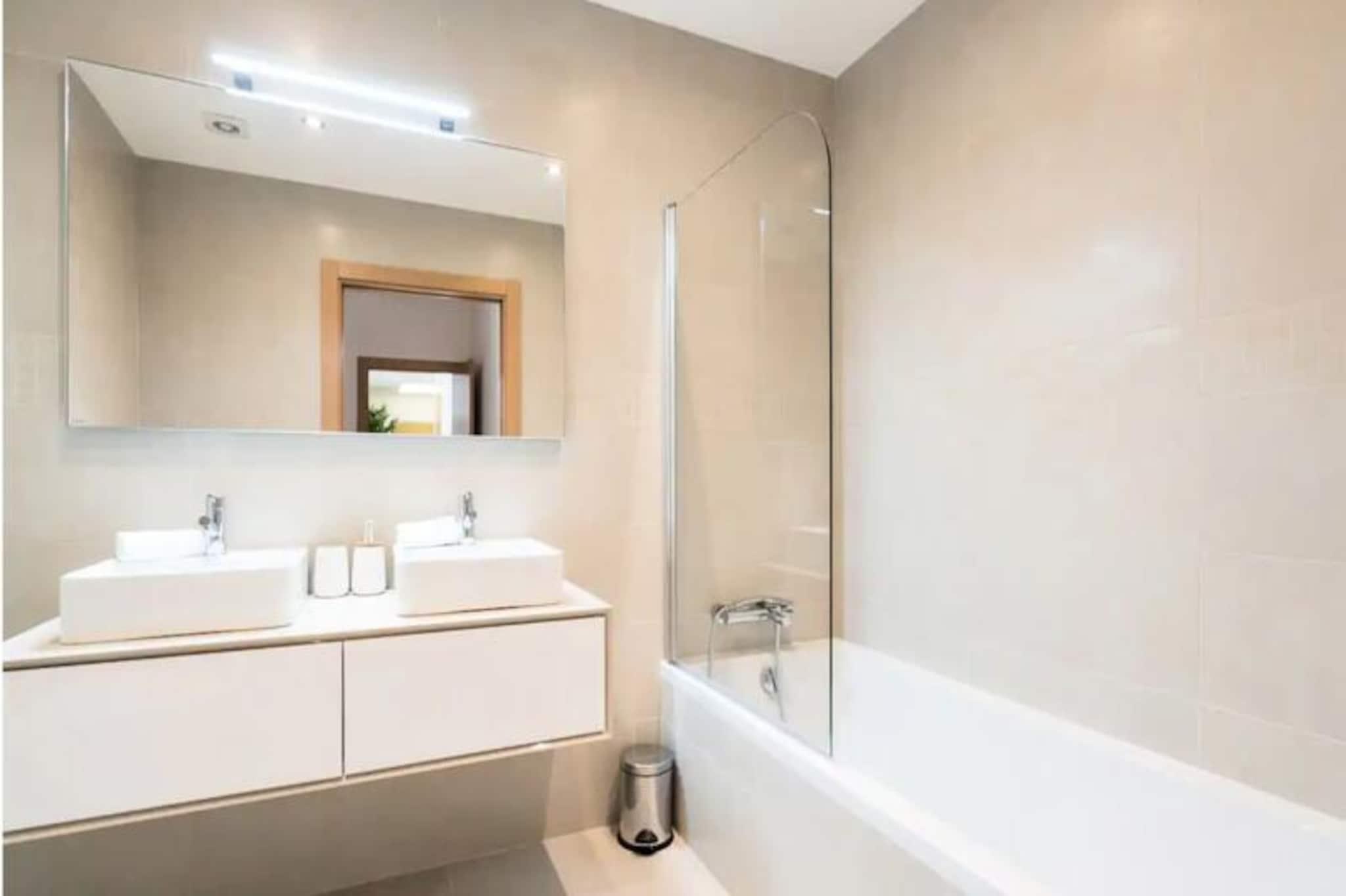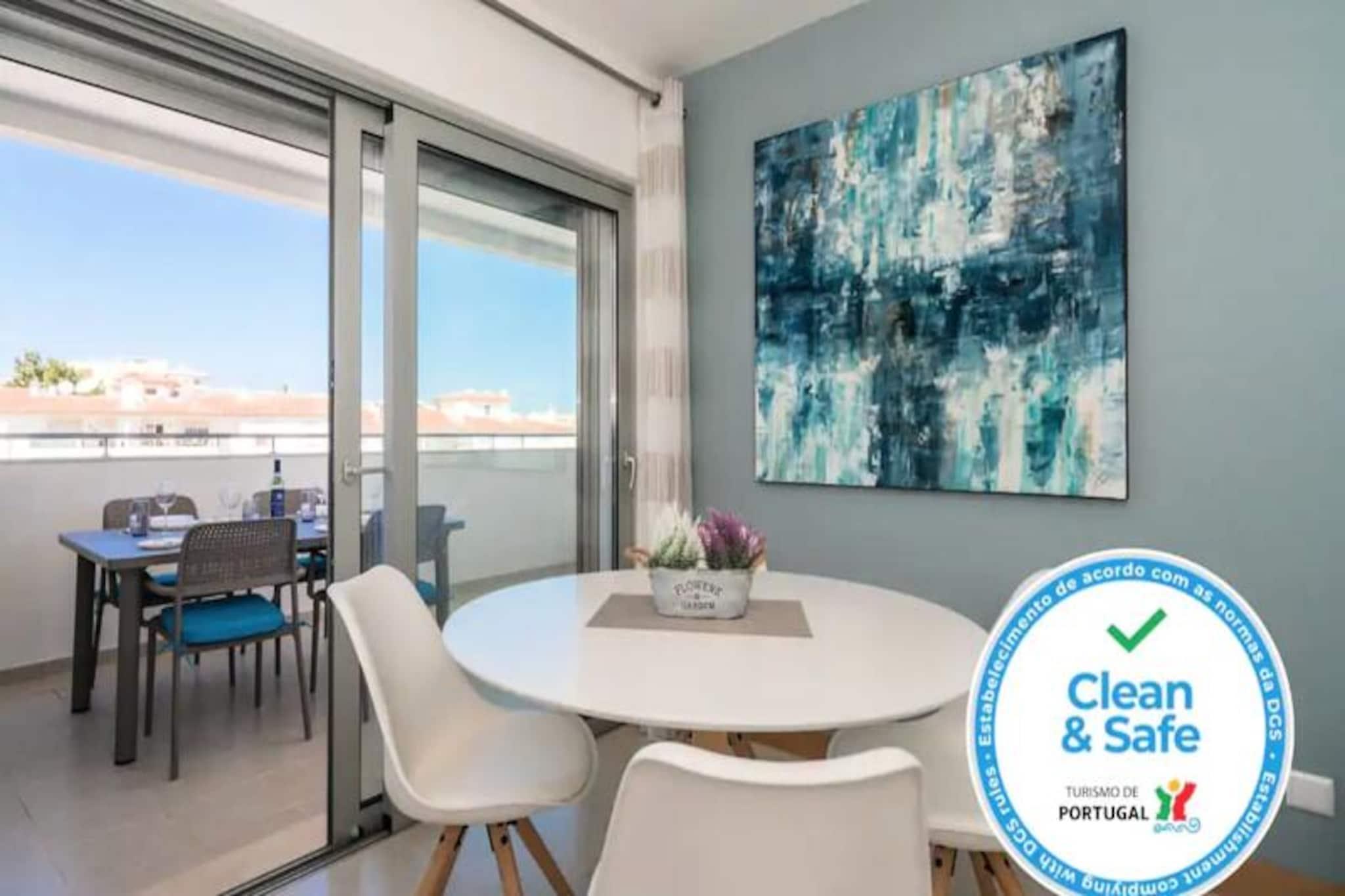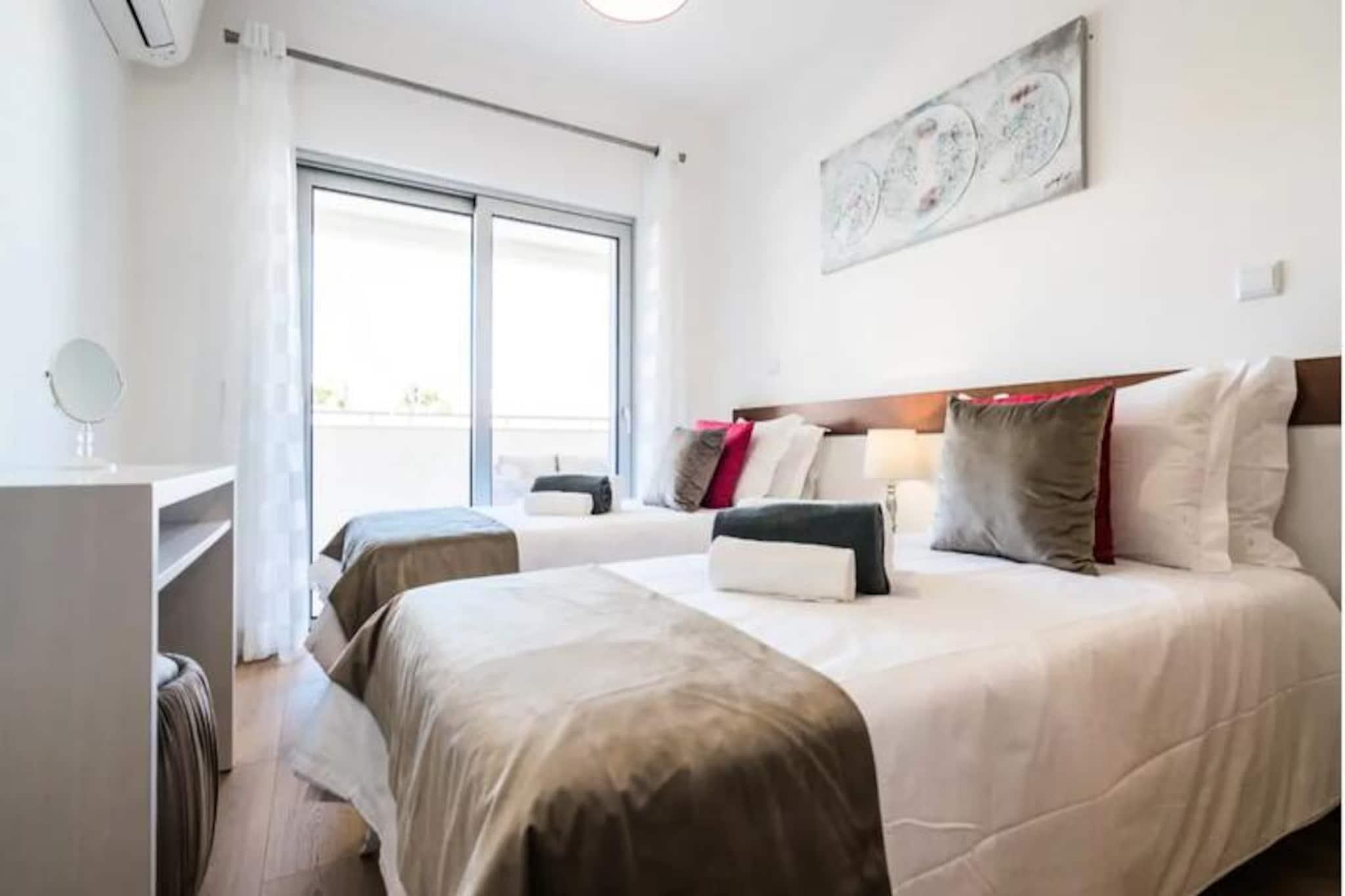 Denne moderne lejlighed med to soveværelser ligger blot 15 minutters gang fra Lagos' pulserende centrum og tilbyder den perfekte blanding af komfort og bekvemmelighed. Med de gyldne sandstrande Meia Praia og Batata inden for gåafstand kan dine dage tilbringes med at sole dig i Algarves sol eller udforske Lagos' historiske charme. Uanset om du søger afslapning eller eventyr, henvender denne beliggenhed sig til alle. Træd indenfor og bliv mødt af en lys, åben opholdsstue udsmykket med stilfulde møbler. Det fuldt udstyrede køkken kan prale af high-end apparater, hvilket gør det nemt at tilberede alt fra en hurtig morgenmad til en gourmetmiddag. Soveværelset har en luksuriøs kingsize-seng og et eget badeværelse med både badekar og bruser, mens det andet soveværelse tilbyder to enkeltsenge og adgang til et separat brusebad. Begge soveværelser åbner ud til en rummelig balkon, der strækker sig over hele lejligheden og er det perfekte sted at slappe af med en drink, mens solen går ned over byen. Gæsterne kan nyde den fælles tagterrassepool, ideel til at nyde den sydlige sol eller tage en forfriskende dukkert. Ejendommen er udstyret med aircondition, Wi-Fi og et tv for din komfort, og alt sengetøj og håndklæder er inkluderet. Selvom lejligheden ikke er egnet til børn under 12 år, og bygningen mangler elevator, lover den et roligt og sofistikeret tilflugtssted for voksne. Lagos er i sig selv en skattekiste af historie med sine bymure fra det 16. århundrede, brostensbelagte gader og travle marina. Fra vandlande og vandrestier til vinmarker og golfbaner tilbyder området et væld af aktiviteter. Lagos er let tilgængeligt fra Faro Lufthavn og er porten til Algarves fantastiske kystlinje og rige kulturarv. Uanset om du er her for at slappe af eller udforske, er denne lejlighed din perfekte base for et uforglemmeligt ophold.