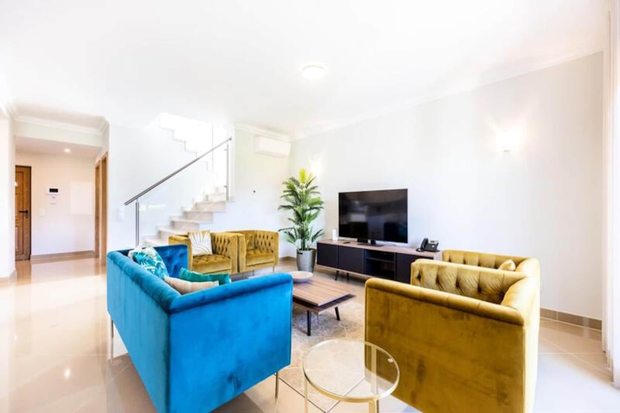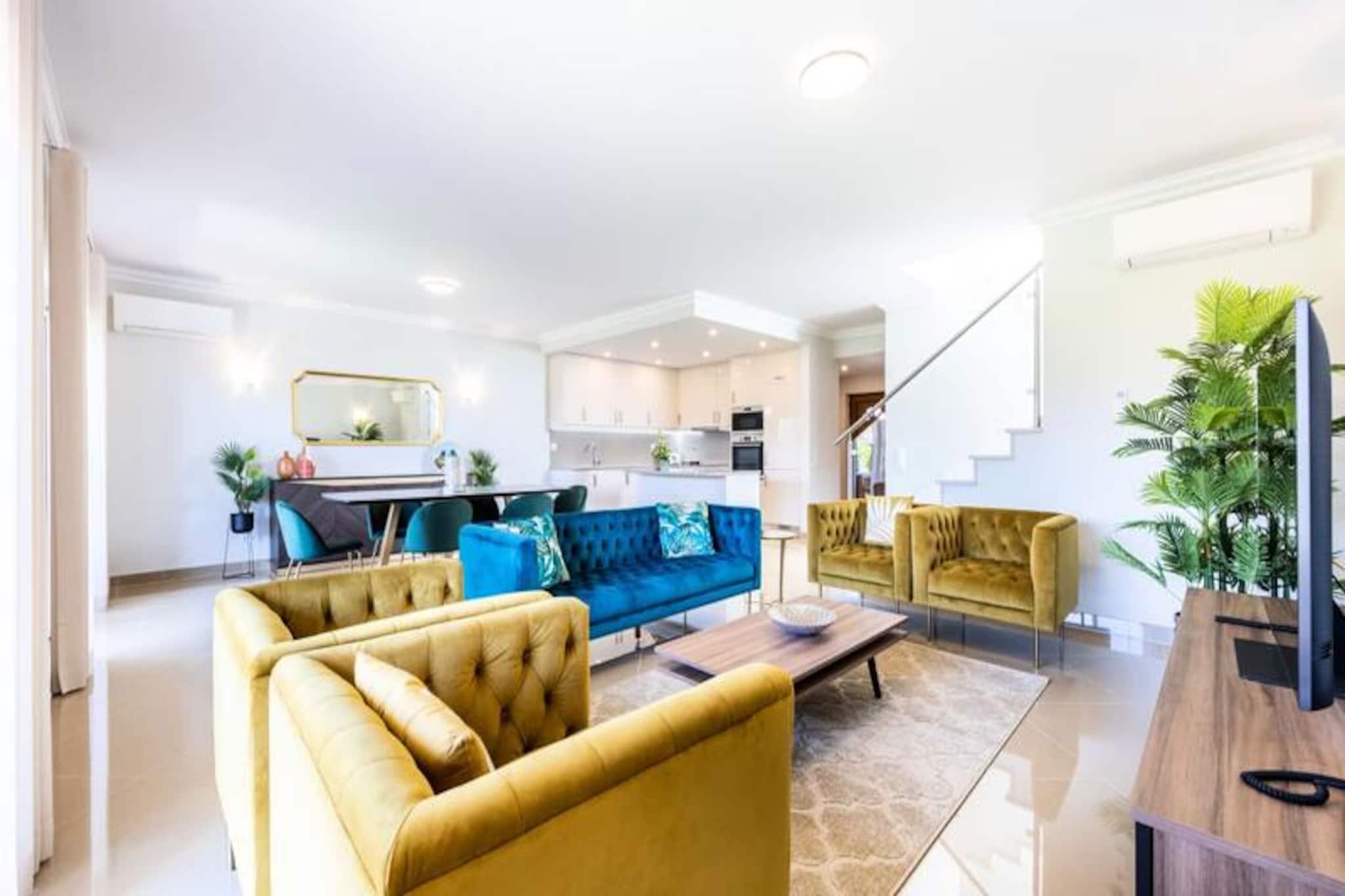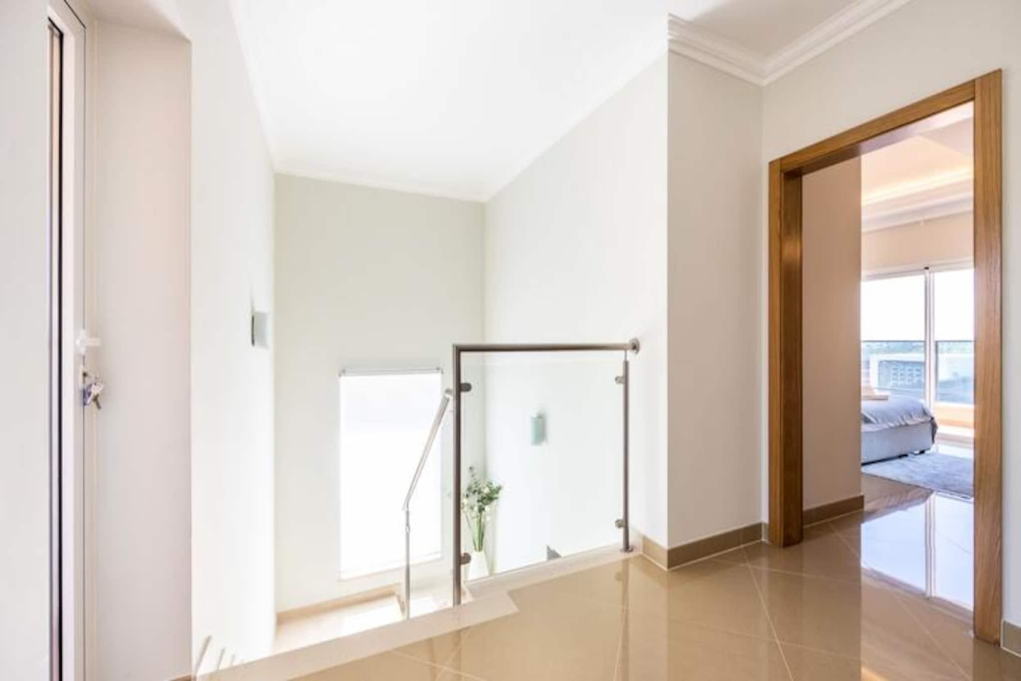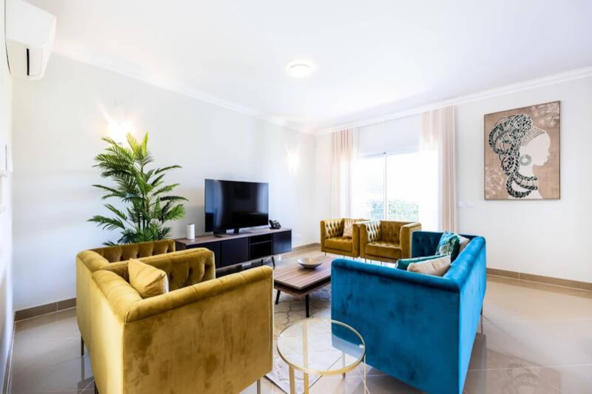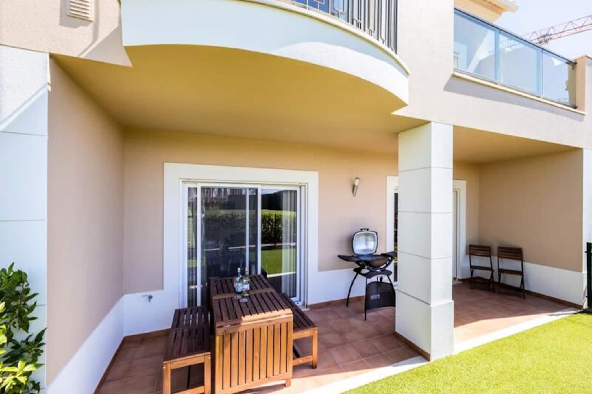 Forestil dig at vågne op til Algarves fredfyldte skønhed, hvor gyldent sollys filtrerer gennem din private balkon, og de frodige grønne områder på en golfbane i verdensklasse strækker sig foran dig. Dette stilfulde rækkehus, beliggende i det eksklusive Boa Vista Golf and Spa Resort, tilbyder den perfekte blanding af afslapning og rekreation, kun få minutter fra den pulserende by Lagos. Uanset om du søger et fredeligt tilflugtssted eller en aktiv ferie, opfylder denne ejendom alle dine ønsker. Træd indenfor og oplev et smukt designet hjem med moderne bekvemmeligheder og farverig indretning, der skaber en varm og indbydende atmosfære. Med tre rummelige soveværelser, fire badeværelser og et separat kontor med en sovesofa er der rigelig plads til familier eller vennegrupper. Det fuldt udstyrede køkken og den udendørs grillplads gør det nemt at nyde hjemmelavede måltider, mens de fælles indendørs og udendørs pools, sauna og jacuzzi giver uendelige muligheder for afslapning. For dem, der elsker at holde sig aktive, kan resortet prale af tennisbaner, et fitnesscenter og en 18-hullers golfbane. Ud over resortet venter den historiske by Lagos med sine brostensbelagte gader, livlige marina og fantastiske klipper. Tag en båd- eller kajaktur for at udforske den betagende kystlinje, eller nyd regionens berømte køkken på en af ??de mange lokale restauranter. Algarves uberørte strande, vandsport og kulturelle attraktioner sikrer, at der er noget for enhver smag. Uanset om du er her for at slappe af ved poolen, perfektionere dit golfsving eller udforske Algarves vidundere, tilbyder dette rækkehus en uforglemmelig ferie. Book dit ophold i dag og skab minder, der vil vare livet ud.