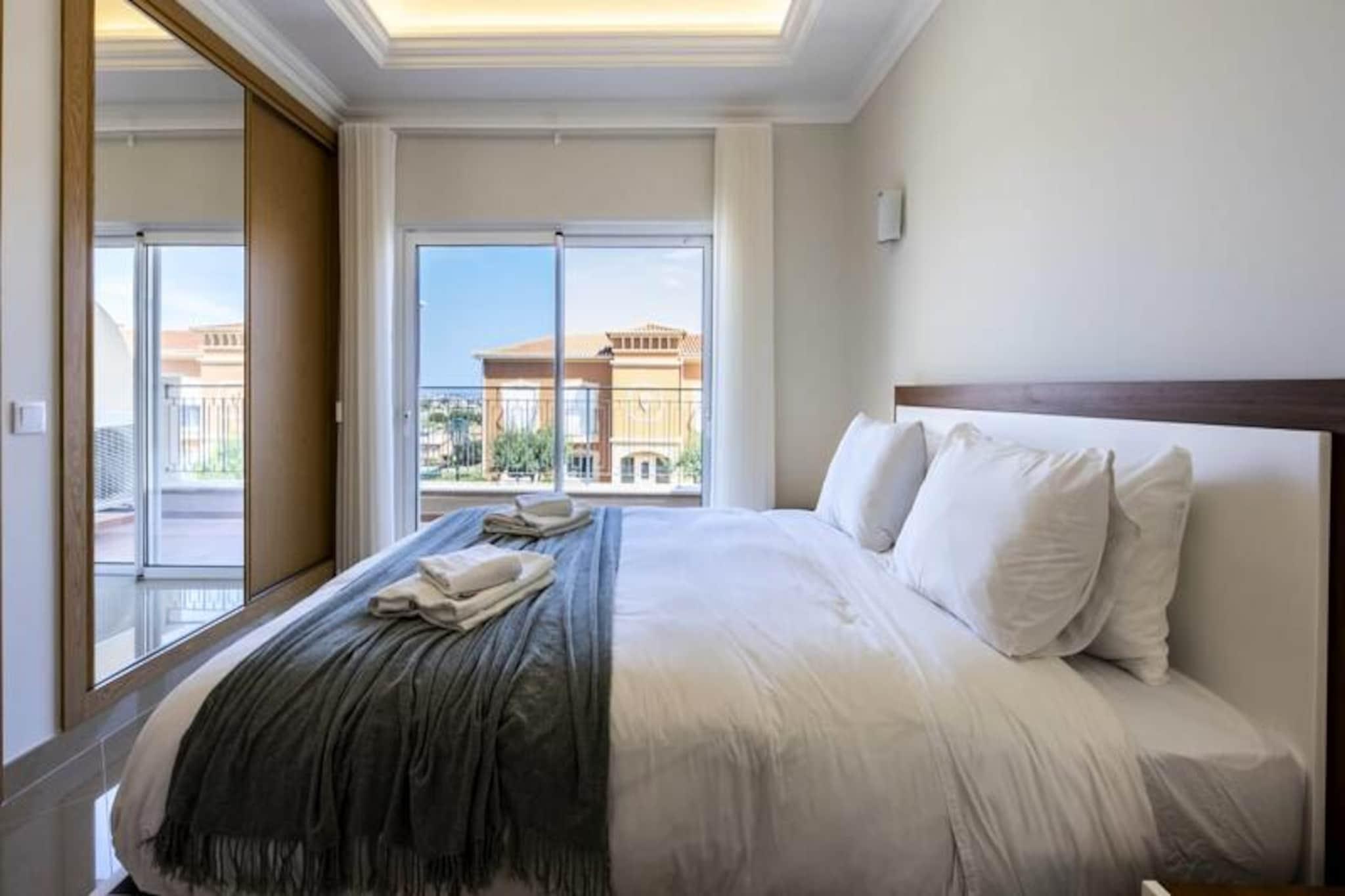 Fordyb dig i Algarves fredfyldte skønhed med dette luksuriøse rækkehus med fire soveværelser, beliggende i det prestigefyldte Boa Vista Resort i Lagos. Omgivet af frodige landskaber og regionens pulserende energi tilbyder denne ejendom en uovertruffen blanding af komfort, elegance og bekvemmelighed til din næste ferie. Uanset om du søger afslapning eller eventyr, er dette dit perfekte tilflugtssted. Træd ind i et moderne fristed, hvor hver eneste detalje er blevet omhyggeligt designet. Den rummelige stue inviterer dig til at slappe af med sine moderne møbler og hyggelige atmosfære, mens det fuldt udstyrede køkken inspirerer til kulinarisk kreativitet. Hvert af de fire soveværelser er en rolig oase, hvoraf tre har eget badeværelse for ekstra privatliv. Den private terrasse og balkon giver de ideelle rammer for udendørs spisning eller en stille aften under Algarves stjerneklare himmel. Boa Vista Resort tilbyder et væld af faciliteter i verdensklasse for at forbedre dit ophold. Tag en forfriskende dukkert i den store swimmingpool, udfordr dig selv på den 18-hullers golfbane, eller foryng dig i sundheds- og fitnessspaen, komplet med en opvarmet indendørs pool, jacuzzi, sauna og dampbad. For dem, der søger mere aktive aktiviteter, er der tennisbaner og en bueskydningsbane til rådighed. Resortets smukt vedligeholdte grund skaber en fredelig atmosfære, perfekt til afslappende gåture. Ud over resortet venter den historiske by Lagos med sine charmerende gader, pulserende marina og fantastiske klipper. Udforsk kystlinjen med båd, kajak eller paddleboard, og nyd regionens berømte køkken. Med Faro Lufthavn kun en times kørsel væk er dette rækkehus din port til det bedste af Algarve. Uanset om du planlægger en familieferie eller en romantisk flugt, lover denne ejendom en uforglemmelig oplevelse.