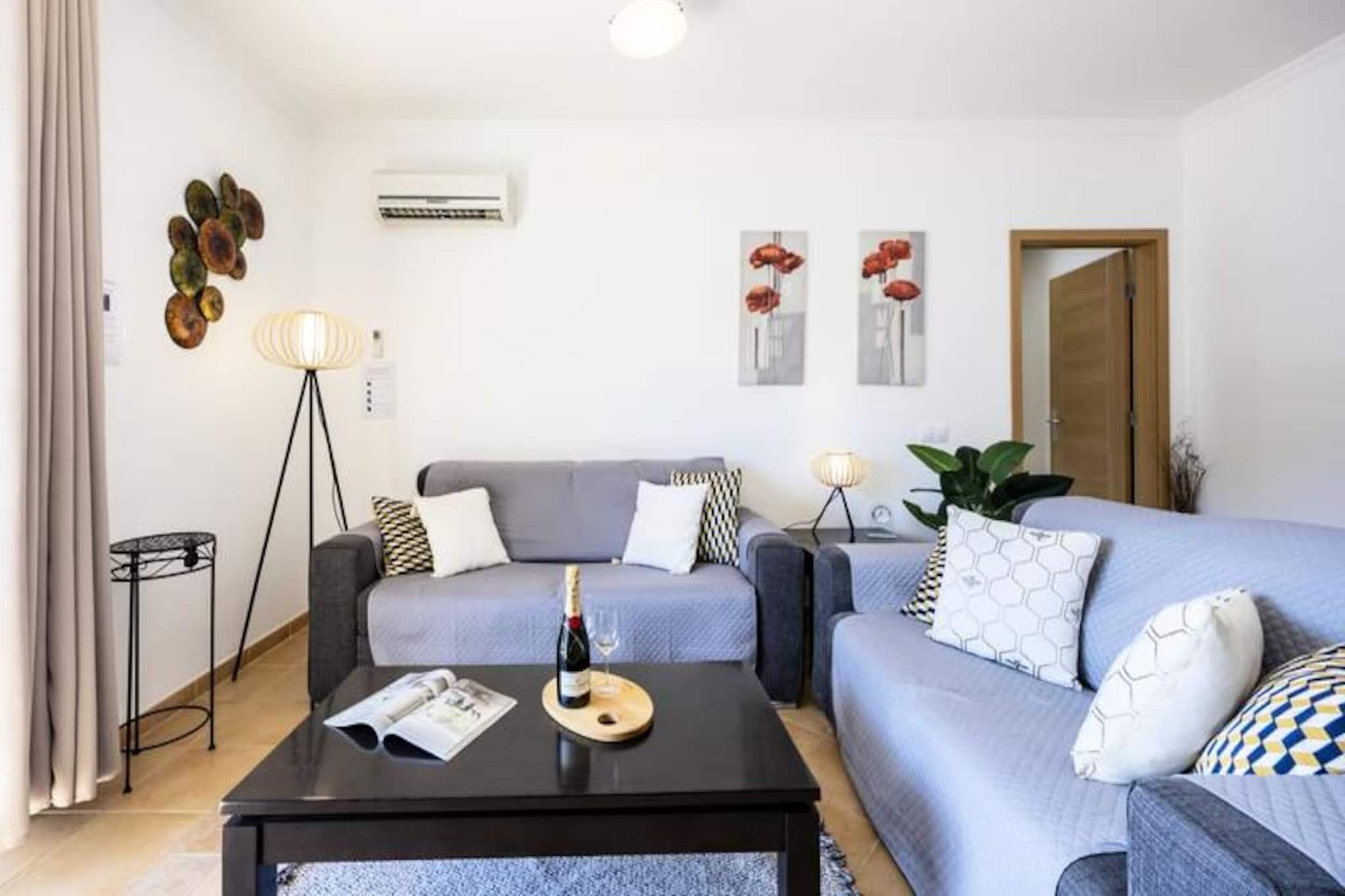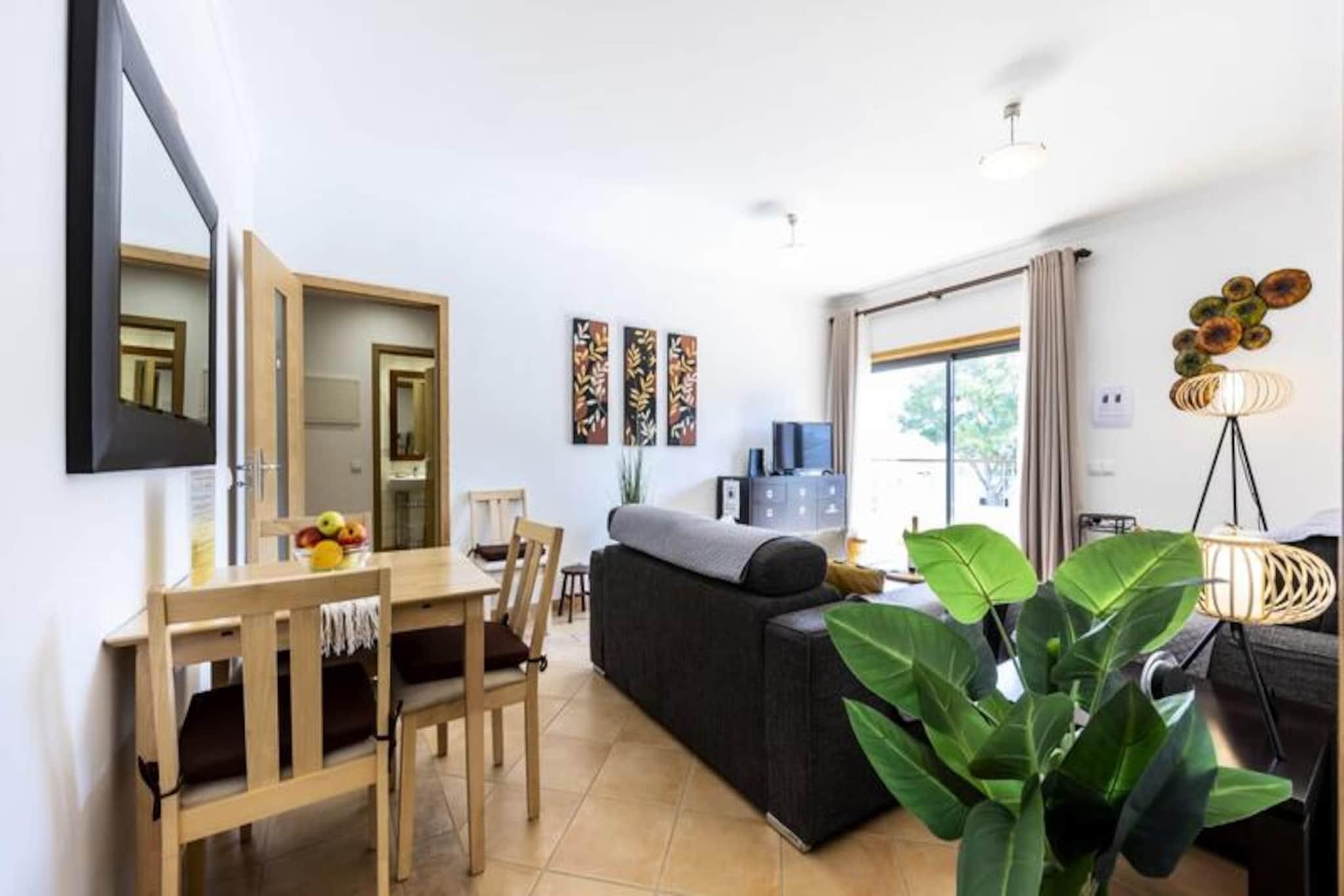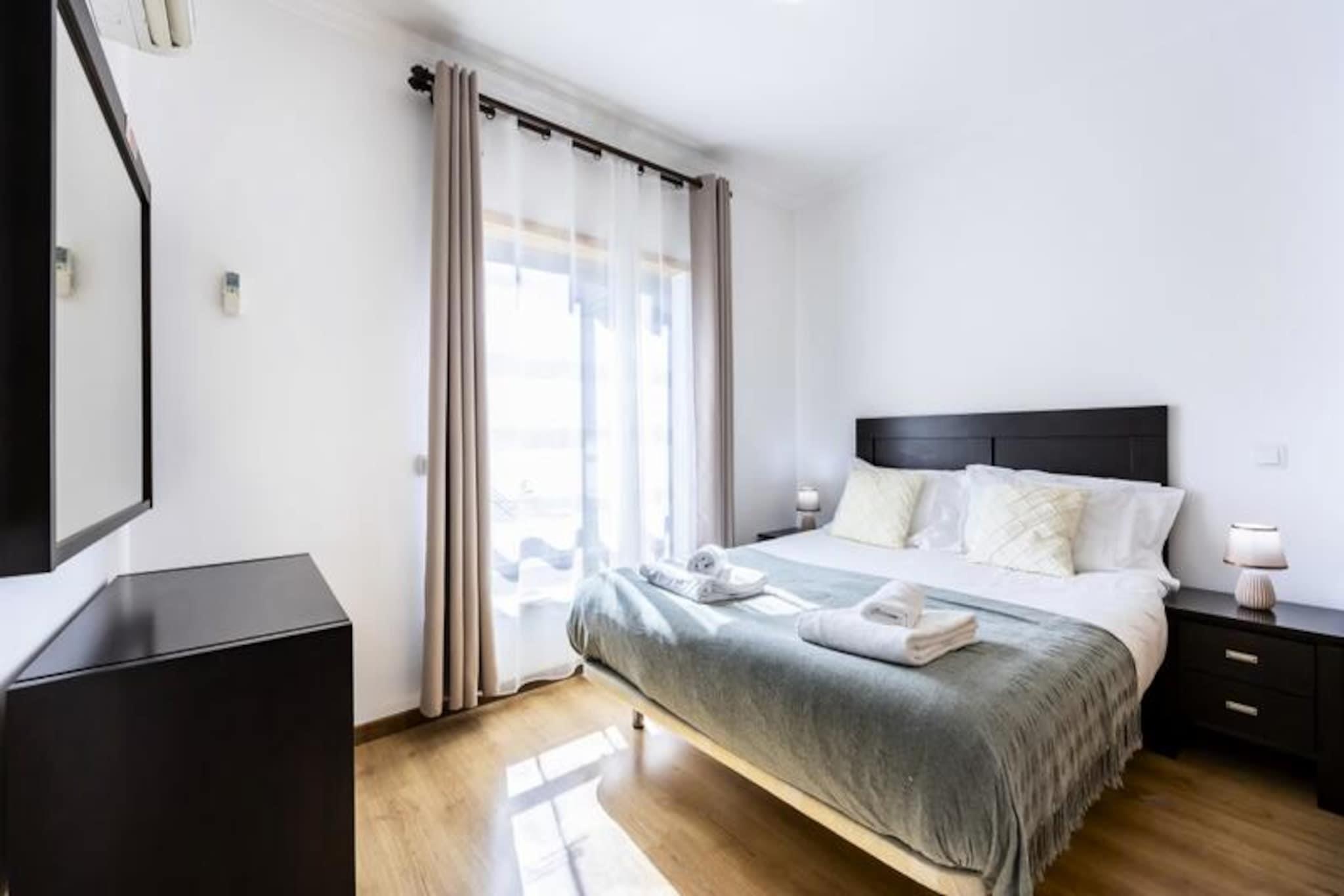 I hjertet af Lagos, hvor gyldne strande møder historisk charme, tilbyder denne dejlige lejlighed en rolig oase for familier og små grupper. Forestil dig at vågne op til Algarves blide lyde, træde ud på din private balkon med en morgenkaffe og planlægge en dag med udforskning eller afslapning i denne pulserende kystby. Med sin frodige grønne have og fælles pools er denne ejendom et paradis for både voksne og børn, der søger en perfekt ferie. Lejligheden er designet med komfort og bekvemmelighed i tankerne og har plads til op til fire voksne og to børn. Den har to rummelige soveværelser, en hyggelig sovesofa og to moderne badeværelser. Det fuldt udstyrede køkken inviterer dig til at tilberede lækre måltider, mens den luftige opholdsstue sikrer en afslappende atmosfære efter en dag med eventyr. Den private balkon er det ideelle sted at slappe af med en aftendrink og nyde de rolige omgivelser. Kun en kort gåtur væk venter Lagos' livlige centrum. Oplev traditionel portugisisk mad på lokale restauranter, gennemse charmerende butikker eller nyd den travle marina. For strandelskere ligger de fantastiske kyster Dona Ana, Batata og Meia Praia inden for 10-15 minutters gang, der byder på krystalklart vand og betagende klipper. Gå ikke glip af et besøg til det ikoniske fyrtårn Ponta da Piedade eller en bådtur for at udforske de fascinerende huler. Uanset om du er her for at slappe af ved poolen, udforske de historiske gader eller begive dig ud på kysteventyr, er denne lejlighed den perfekte base for en uforglemmelig Algarve-ferie. Book nu og skab varige minder i den fortryllende by Lagos.