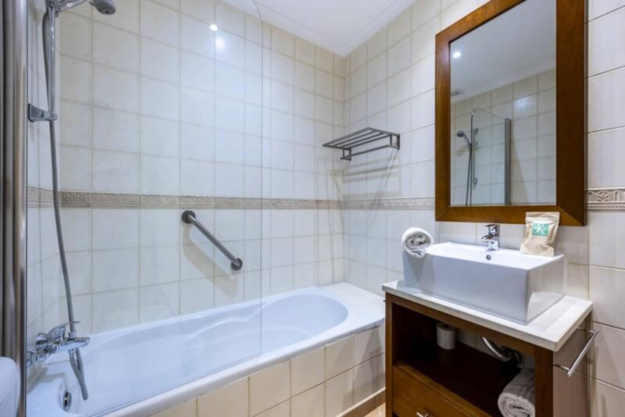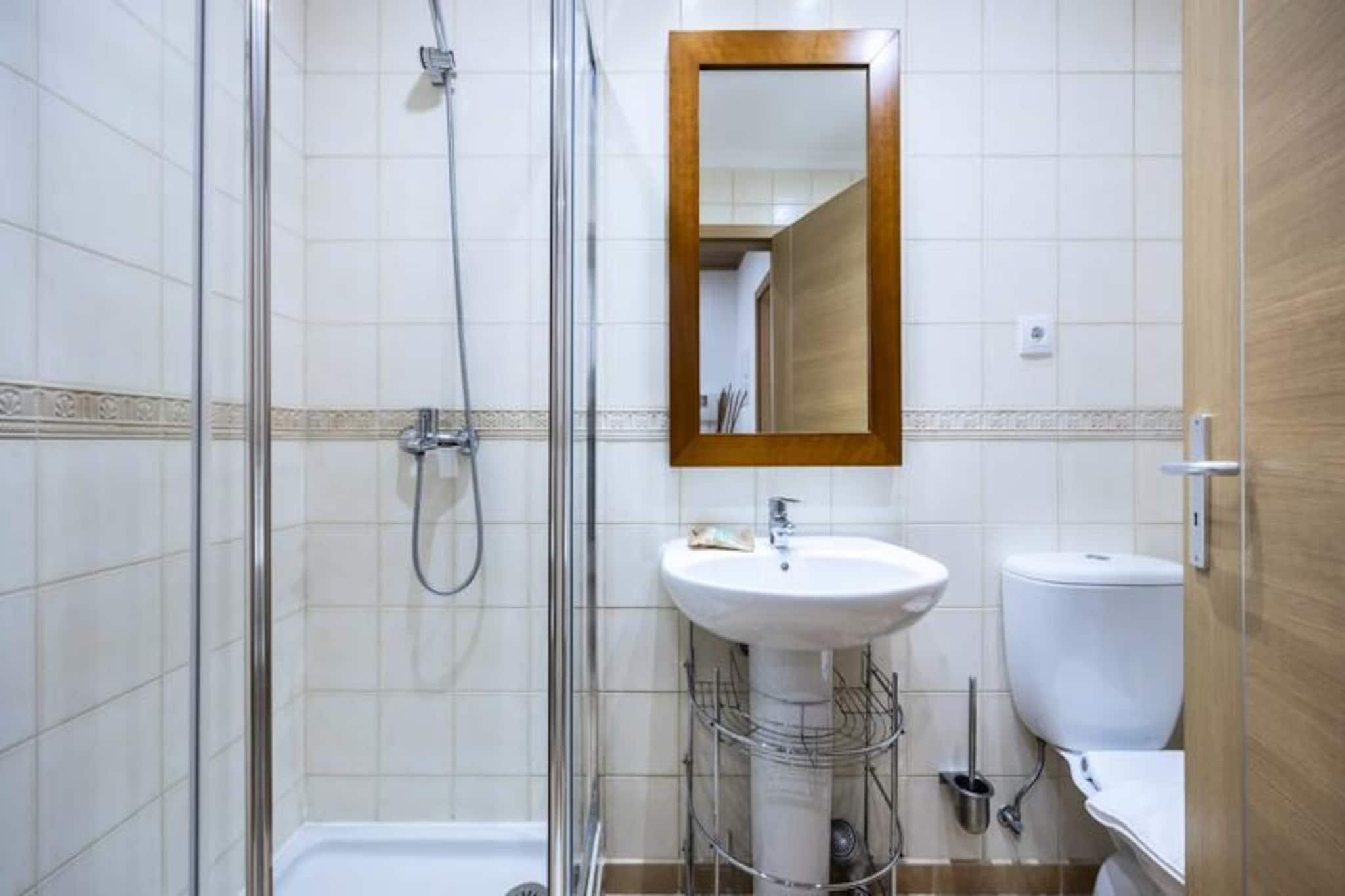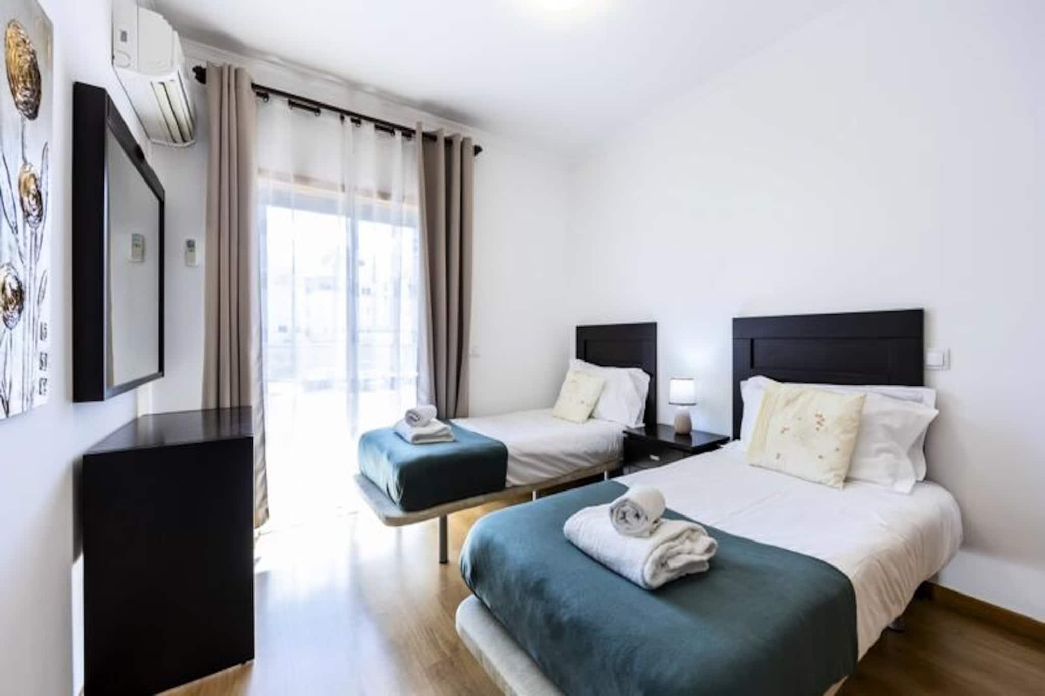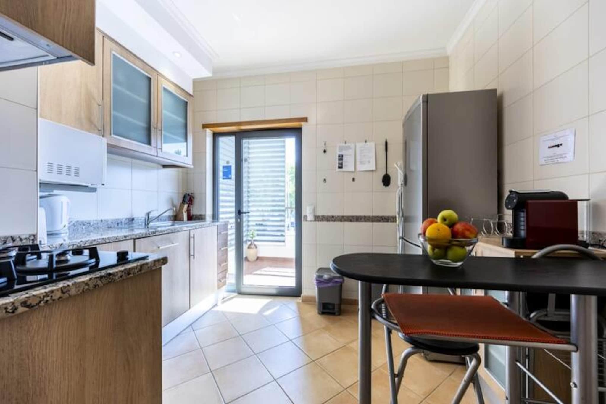 I hjertet af Lagos, hvor gyldne strande møder historisk charme, tilbyder denne dejlige lejlighed en rolig oase for familier og små grupper. Forestil dig at vågne op til Algarves blide lyde, træde ud på din private balkon med en morgenkaffe og planlægge en dag med udforskning eller afslapning i denne pulserende kystby. Med sin frodige grønne have og fælles pools er denne ejendom et paradis for både voksne og børn, der søger en perfekt ferie. Lejligheden er designet med komfort og bekvemmelighed i tankerne og har plads til op til fire voksne og to børn. Den har to rummelige soveværelser, en hyggelig sovesofa og to moderne badeværelser. Det fuldt udstyrede køkken inviterer dig til at tilberede lækre måltider, mens den luftige opholdsstue sikrer en afslappende atmosfære efter en dag med eventyr. Den private balkon er det ideelle sted at slappe af med en aftendrink og nyde de rolige omgivelser. Kun en kort gåtur væk venter Lagos' livlige centrum. Oplev traditionel portugisisk mad på lokale restauranter, gennemse charmerende butikker eller nyd den travle marina. For strandelskere ligger de fantastiske kyster Dona Ana, Batata og Meia Praia inden for 10-15 minutters gang, der byder på krystalklart vand og betagende klipper. Gå ikke glip af et besøg til det ikoniske fyrtårn Ponta da Piedade eller en bådtur for at udforske de fascinerende huler. Uanset om du er her for at slappe af ved poolen, udforske de historiske gader eller begive dig ud på kysteventyr, er denne lejlighed den perfekte base for en uforglemmelig Algarve-ferie. Book nu og skab varige minder i den fortryllende by Lagos.