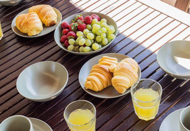 ? Essential pack – Mineral water, fresh seasonal fruit (seasonal fruit + bananas + oranges + apples), fresh bread for each guest, orange juice, butter, cheese, and cold cuts