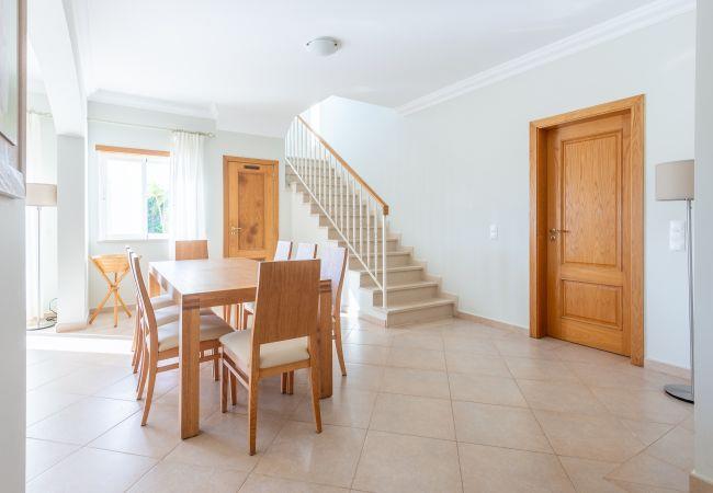 This very well presented and large villa is located within the Boavista Golf and Spa Resort in Lagos, Algarve. The property has 3 bedrooms, and accommodates up to 6 people. Two bedrooms are on the 1st floor, one with en-suite bathroom, together with a shared bathroom. The third bedroom is on the ground floor, with en-suite bathroom. Kids can enjoy a small play corner with little table, 2 small chairs and some toys next to the dining area.