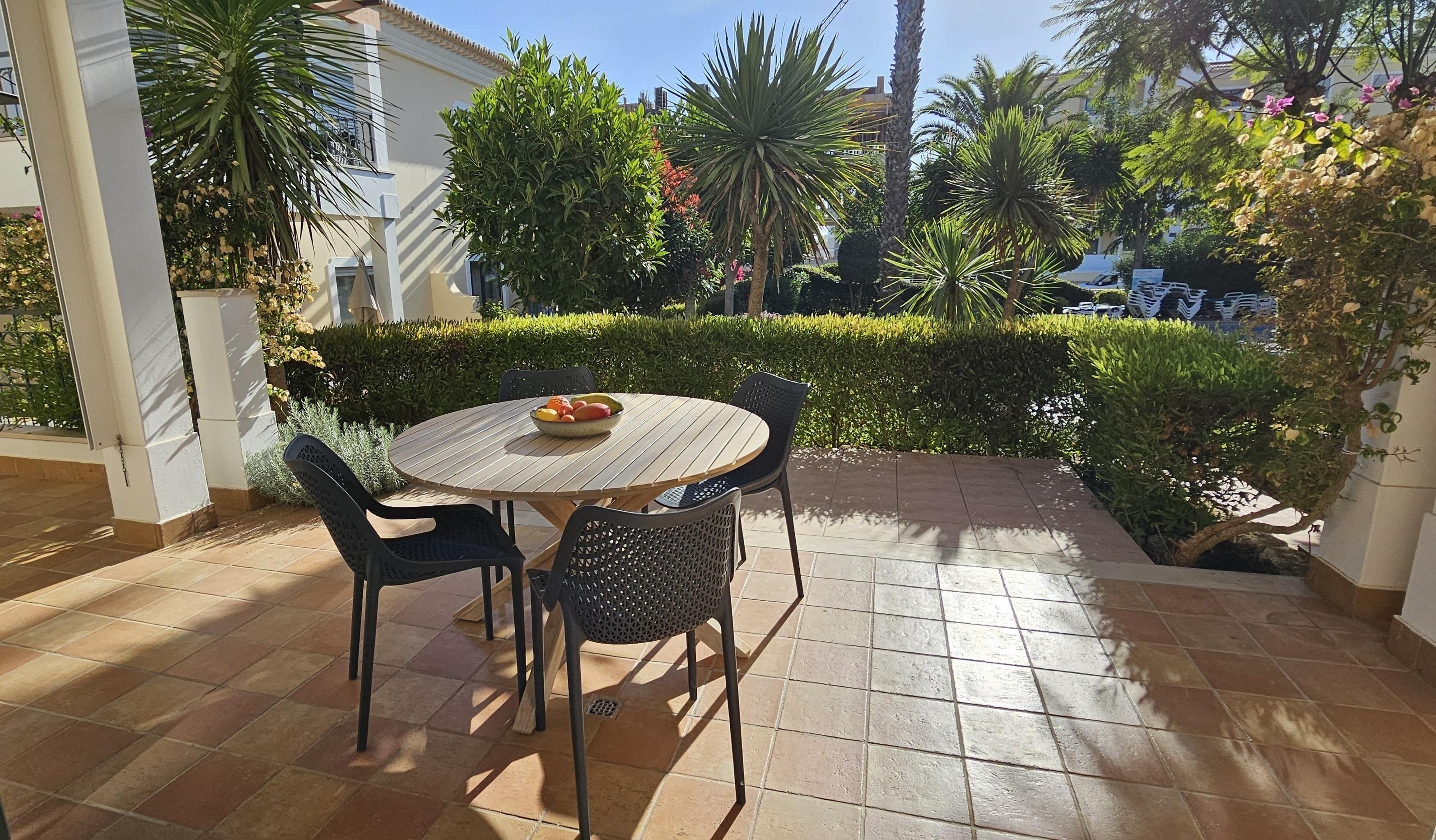 Die Unterkunft ist mit allen Annehmlichkeiten ausgestattet, die Sie sich wünschen können, um Ihren Aufenthalt so angenehm wie möglich zu gestalten. Die Wohnung bietet Wohnzimmer, zwei Schlafzimmer, zwei Bäder, Küche und zwei große Terrassen. Zentraler Gemeinschaftspool mit Palmen und Blumen sorgt für entspannte Momente – perfekt für Kinder zum Planschen und für Paare zum Relaxen.