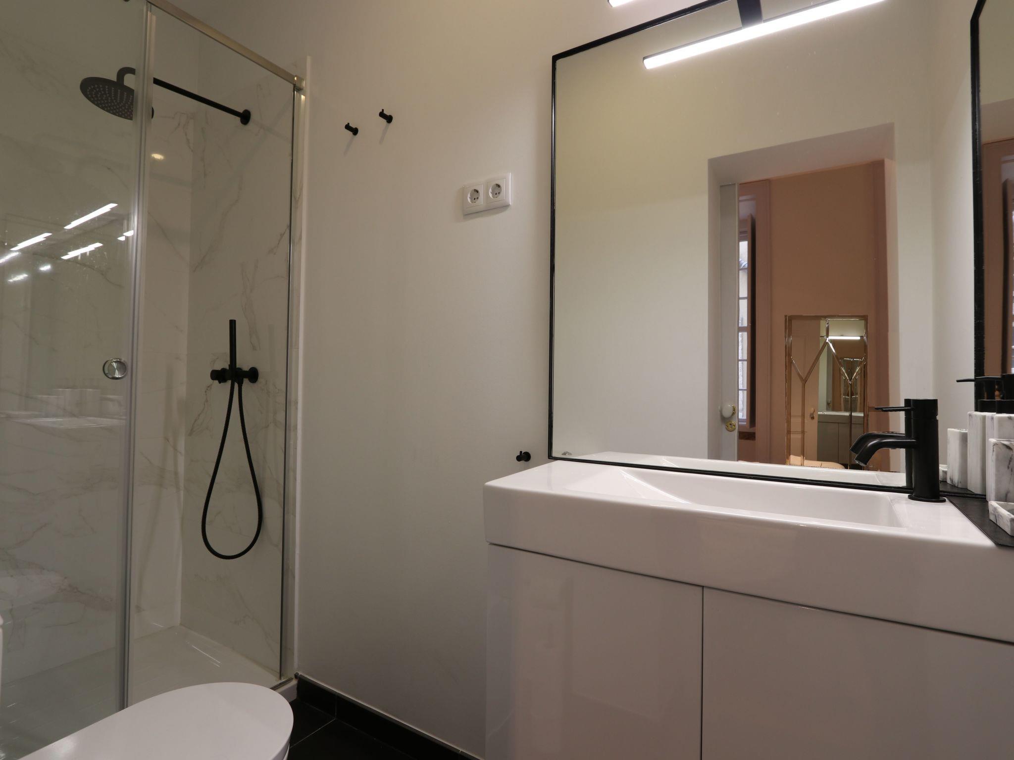 LIVING: Designed using contrasting styles and a nature & exotic-based theme, the apartment provides unforgettable housing for a couple, group of friends, or family with utmost comfort?? The living area is stylishly decorated with nature elements contrasting the walls and features high ceilings and great windows. The two bedrooms have very comfortable double beds, air conditioners, and a timeless simplicity combining a two-centuries-old apartment story and quality wooden floors with sumptuous beds and luxury furnishings. There are 2 bathrooms - one with a bathtub, the other is en-suite and has a shower - with high-design bath fixtures. The kitchen is fully equipped and features high-end details?