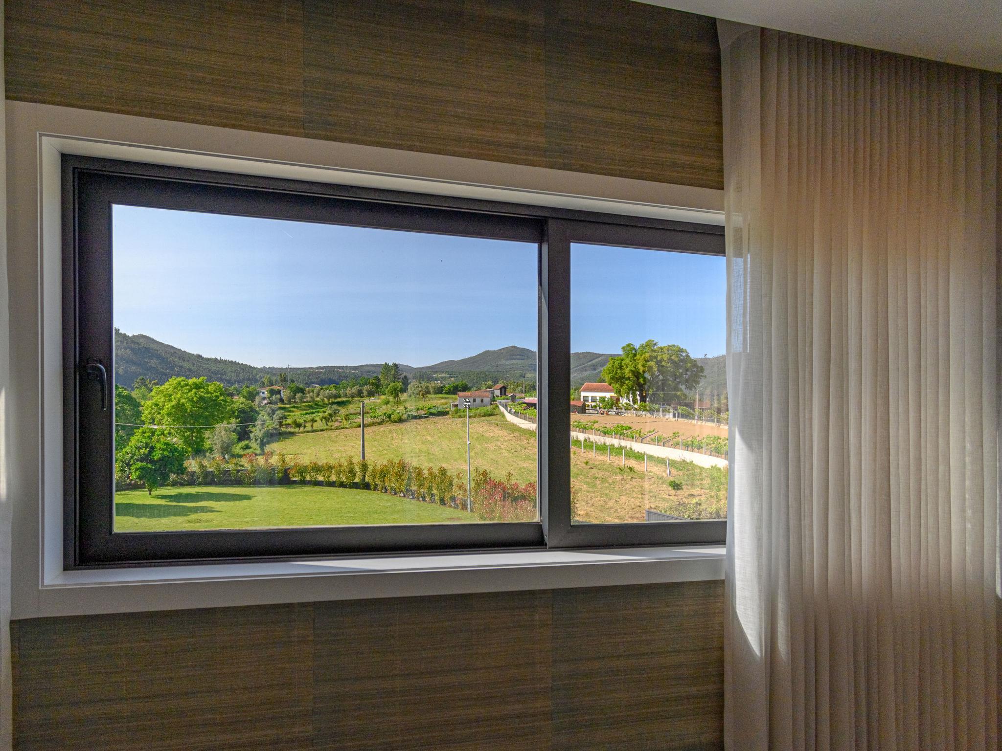 "Douro Escape", 6-room house 106 m2 on 2 levels. Spacious, fully renovated in 2021, beautiful and modern furnishings: large living/dining room with panoramic window with dining table, bar, cable TV, air conditioning and forced-air heating. Exit to the garden, to the terrace, to the swimming pool. Kitchen (oven, dishwasher, 4 ceramic glass hob hotplates, toaster, kettle, microwave, electric coffee machine, Capsules for coffee machine (Nespresso (not inc))) with air conditioning and forced-air heating. Sep. WC, double hand-basin. Upper floor: 1 room with 1 french bed (160 cm, length 200 cm), shower/WC, air conditioning and forced-air heating. 1 room with 2 beds (90 cm, length 200 cm), shower/WC, air conditioning and forced-air heating. 1 room with 2 beds (90 cm, length 200 cm), shower/WC. 1 room with 1 french bed (160 cm, length 200 cm), shower/WC, air conditioning and forced-air heating. 1 large room with 1 french bed (160 cm, length 200 cm), shower/bidet/WC, air conditioning and forced-air heating. Terrace furniture, barbecue, deck chairs (8). Very beautiful view of the swimming pool and the countryside. Facilities: washing machine, iron, children's high chair, baby cot for up to 2 year olds, hair dryer. Internet (WiFi, free). Please note: non-smokers only. No lift. 132474/AL