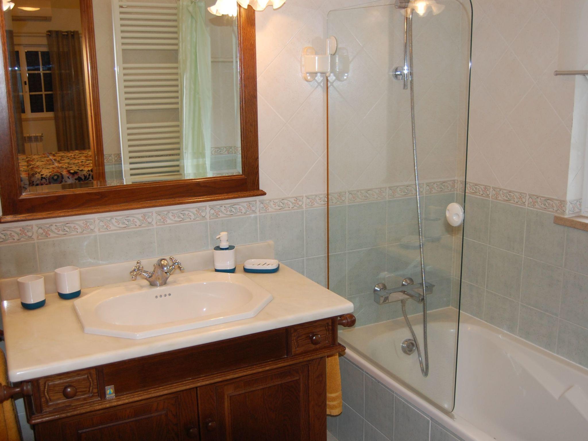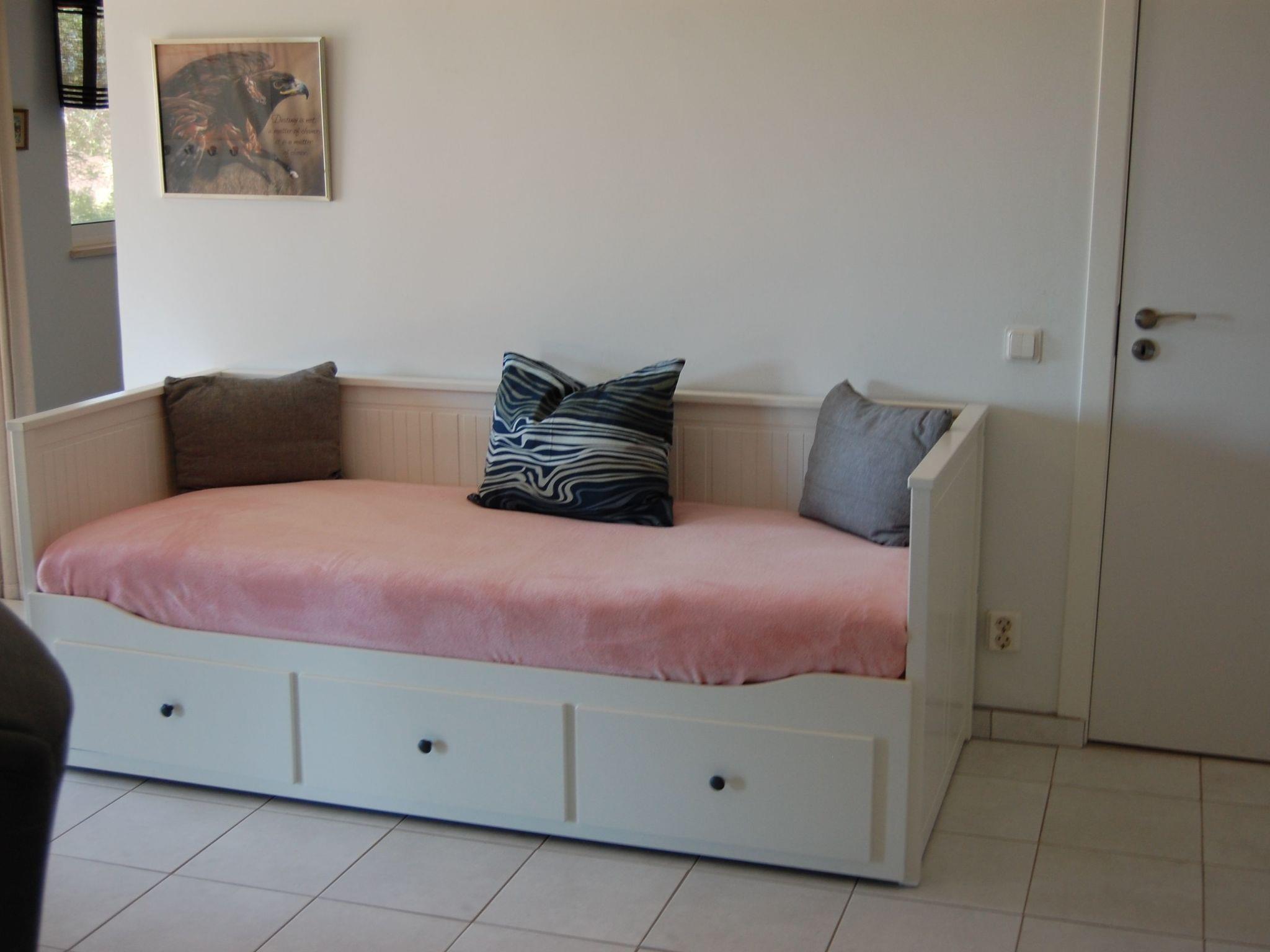 The large living room is furnished with a comfortable sofa, a large glass table and four cosy chairs. A flat-screen TV with satellite TV, WiFi, Netflix and a fireplace provide entertainment and comfort. The living room and bedrooms are equipped with practical sliding windows that provide direct access to the pool. The windows are fitted with fly screens and, if you wish, you can darken the rooms with shutters. The house is equipped with air conditioning and central heating, which is of course at your disposal. There is a small charge for its use. The central heating is included in the price from November to February. After that, a small fee is charged.