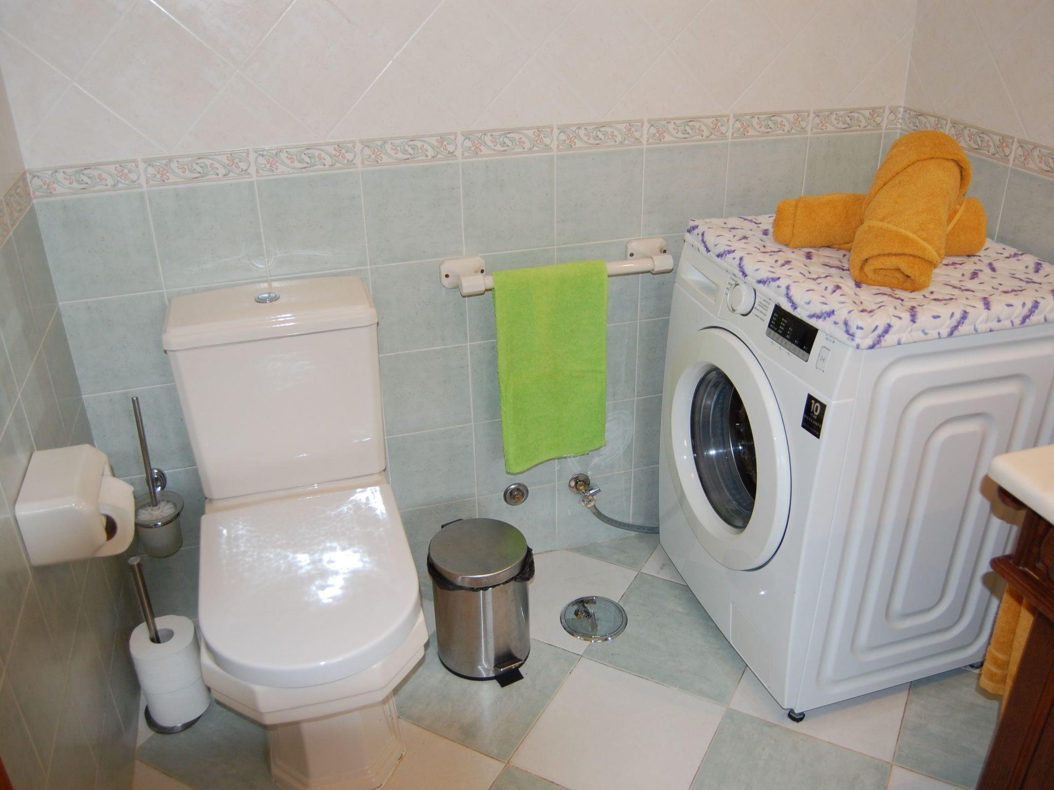 The villa is 150 m² in size and can accommodate up to six people. If you need a baby cot, we can also provide one. The villa has three cosy bedrooms. One of them has two single beds and the other two each have a double bed. I am pleased to inform you that the bedroom is also equipped with a flat screen TV. You can look forward to watching various international programmes. The villa has two beautiful bathrooms, one of which is equipped with a relaxing bathtub, a practical WC, an elegant washbasin and a washing machine. I am pleased to inform you that the second bathroom is equipped with a WC, a washbasin and a shower. The kitchen is fully equipped with great attention to detail. It has a fridge with freezer compartment, an oven, a microwave, a kettle, a toaster, a coffee machine and a dishwasher. You can enjoy a delicious meal with your family or friends at the cosy table with six chairs.