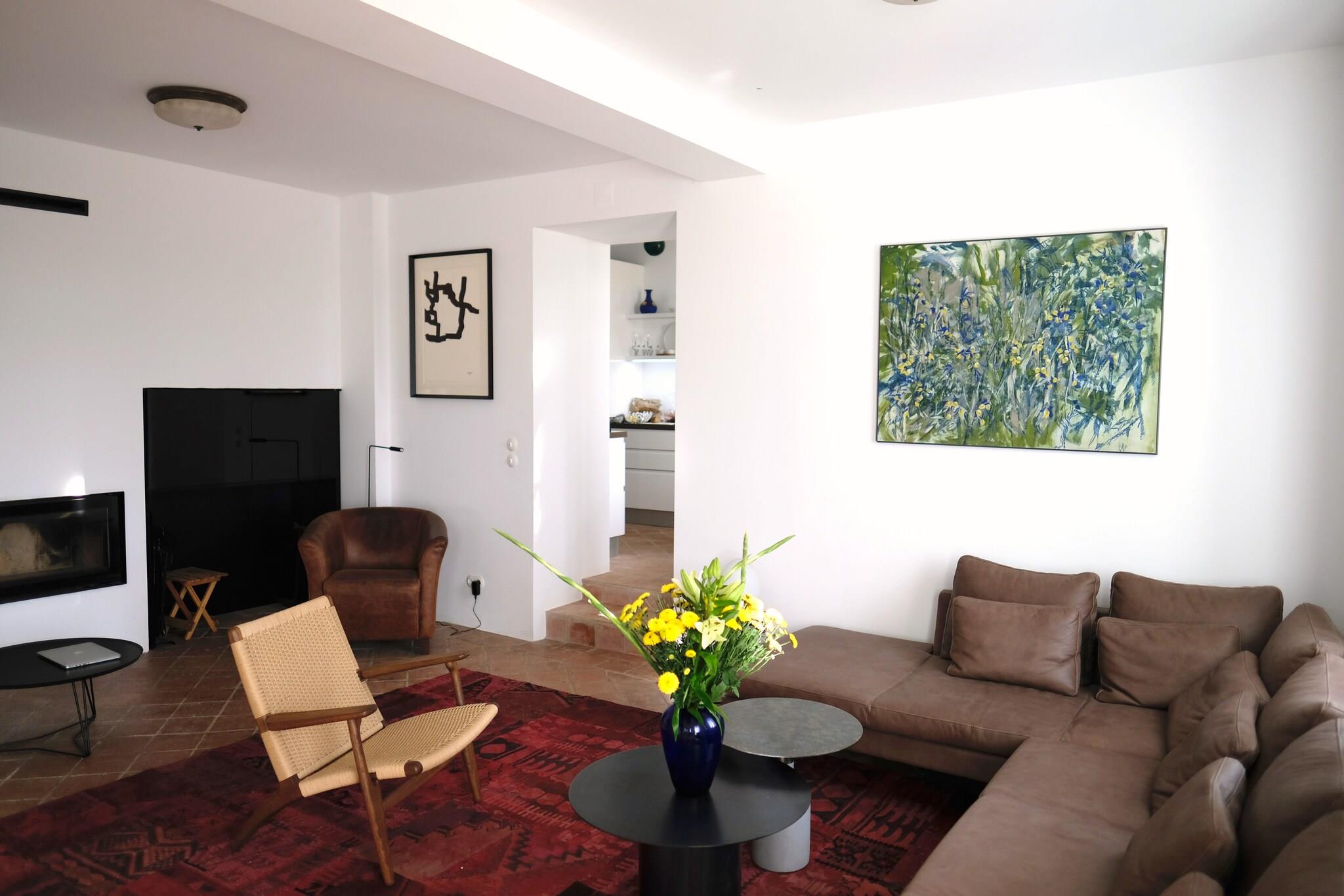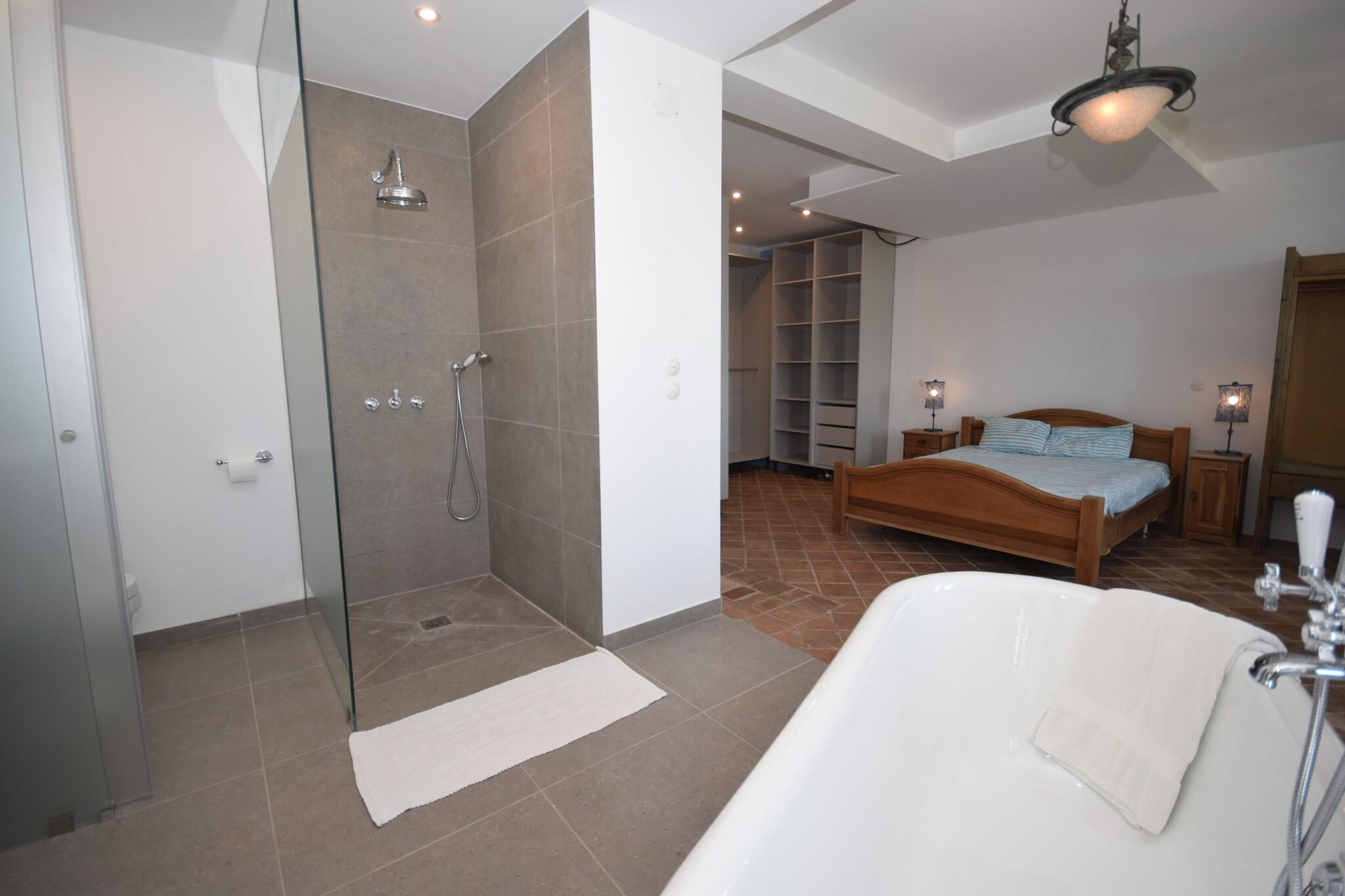 Stueetage: (Indgang , Stue(kakkelovn(træ), sofahjørne, varme(gulvvarme), terrasse(privat, 20 m2)), spisestue(spisebord(6 personer), varme(gulvvarme)), fjernsynsstue(Fjernsyn(parabol, Internationale TV-kanaler), sofahjørne, DVD-afspiller, stereoanlæg, varme(gulvvarme)), Køkken(kogeplade, kaffemaskine, ovn, grill, combi-mikroovn, opvaskemaskine , køle-fryseskab, varme(gulvvarme)), badeværelse(bruser, håndvask, toilet, varme(gulvvarme)), bibliotek) På 1. etage: (soveværelse(2x enkeltseng, varme(gulvvarme), klimaanlæg), Soveværelse med badeværelse(dobbeltseng, badekar, bruser, håndvask, toilet, balkon, varme(gulvvarme)), Soveværelse med badeværelse(dobbeltseng, bruser, håndvask, toilet, varme(gulvvarme), klimaanlæg), badeværelse(bruser, håndvask, toilet, varme(gulvvarme)), tagterrasse) Gæsteophold Stueetage: (Køkken(komfur(Komfur med fire kogeplader), kaffemaskine, ovn, opvaskemaskine , køle-fryseskab, varme(gulvvarme)), stue / spisestue(Fjernsyn(parabol, Internationale TV-kanaler), spisebord(4 personer), kakkelovn(pille), sofahjørne, varme(gulvvarme), klimaanlæg), soveværelse(dobbeltseng eller 2 enkeltsenge Senge, varme(gulvvarme)), badeværelse(bruser, håndvask, toilet, varme(gulvvarme)), terrasse(privat, 14 m2)) pulterkammer(vaskemaskine, cykelopbevaring, barneseng, barnestol, kravlegård), havemøbler, grill(trækul), swimmingpool(privat, 10 x 5 m.), barneseng, barnestol