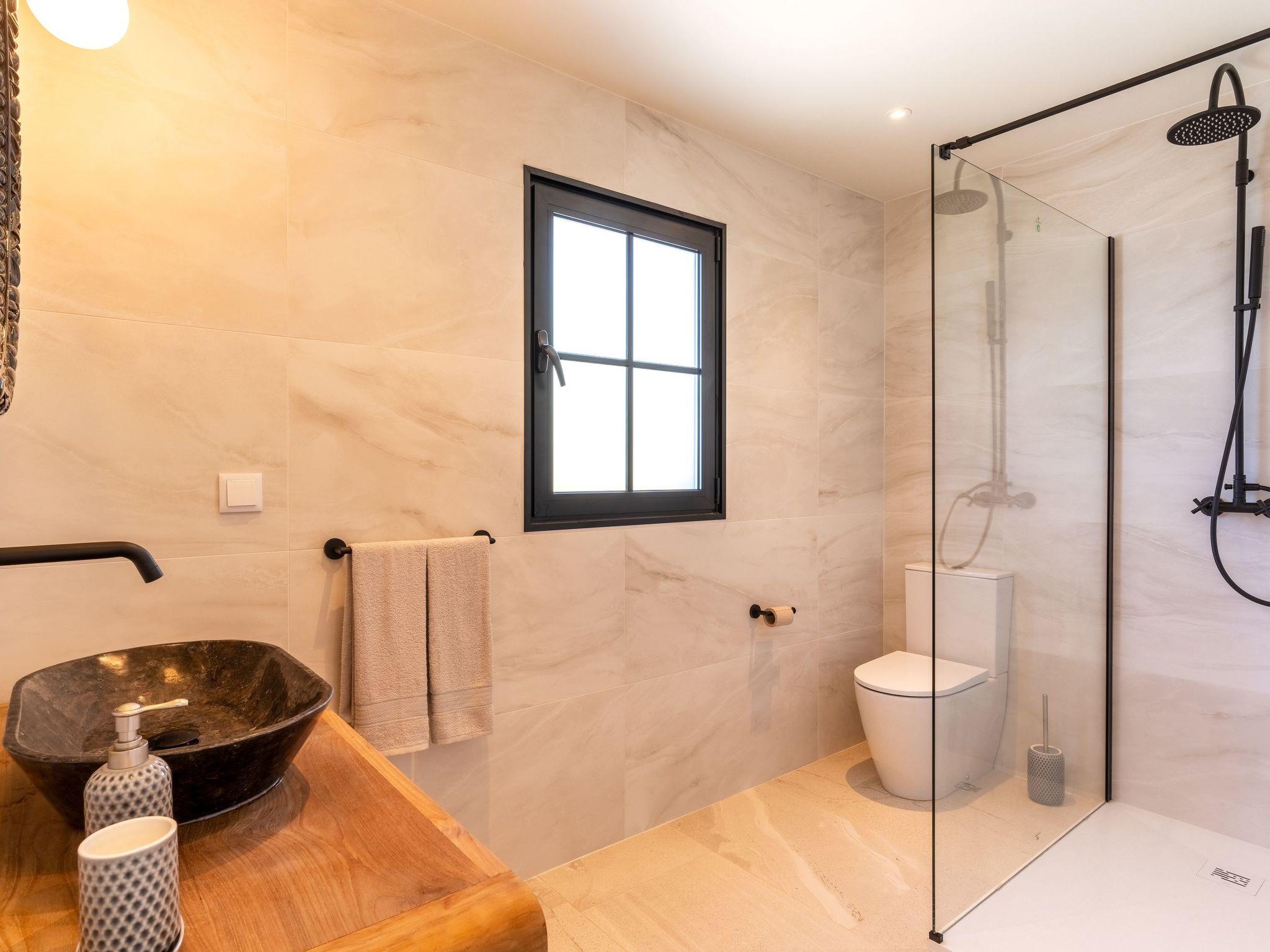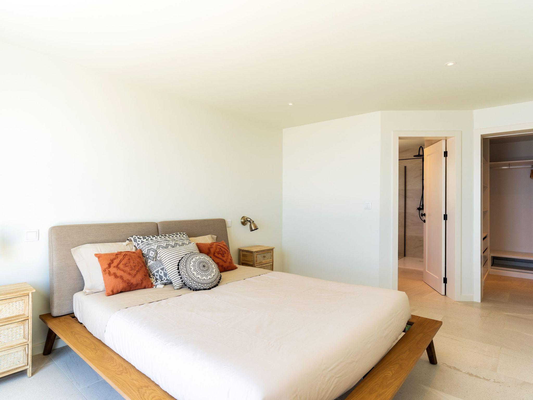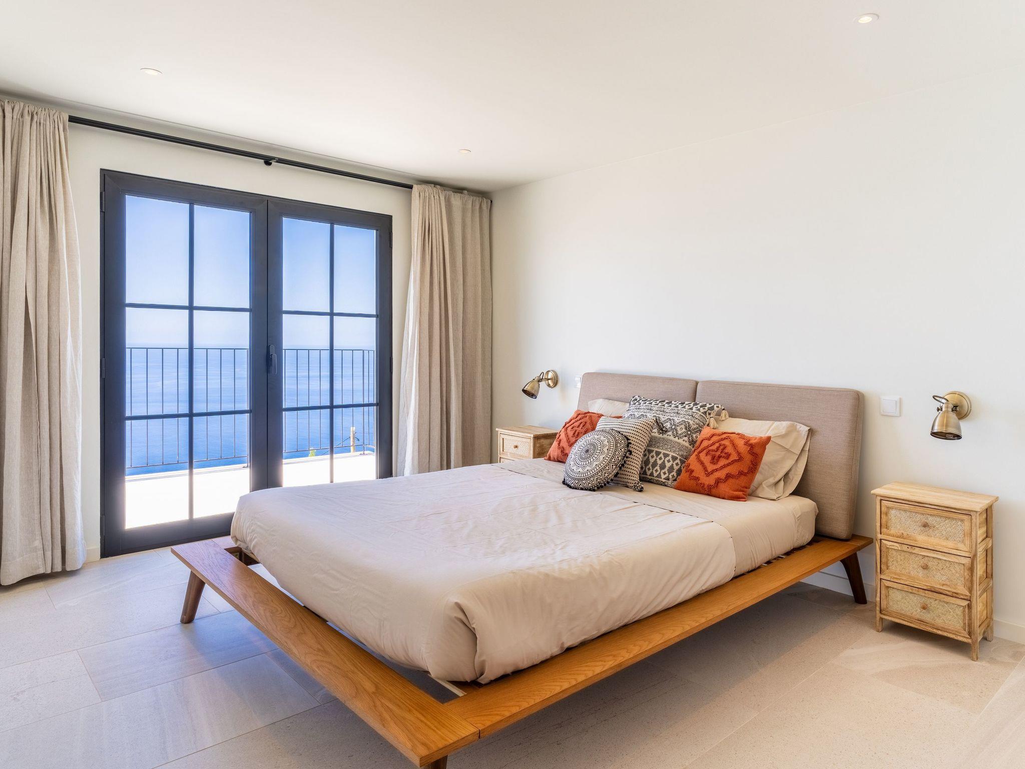 Inside, the villa unfolds over three meticulously designed floors that cater to every need. The ground floor features a cozy living room with a fireplace, a flat-screen TV with cable channels, a stereo system, and a guest toilet, alongside a beautiful dining area. The kitchen is fully equipped with the latest appliances, including an oven, stove, microwave, fridge, washing machine, coffee and capsule coffee machine, dishwasher, and a convenient dining table. The upper floors house the bedrooms, each offering a sea view, with the master bedroom boasting an ensuite bathroom and walk-in closet. For added comfort, there's air conditioning throughout, a gym, and amenities such as a clothes dryer and electric kettle.