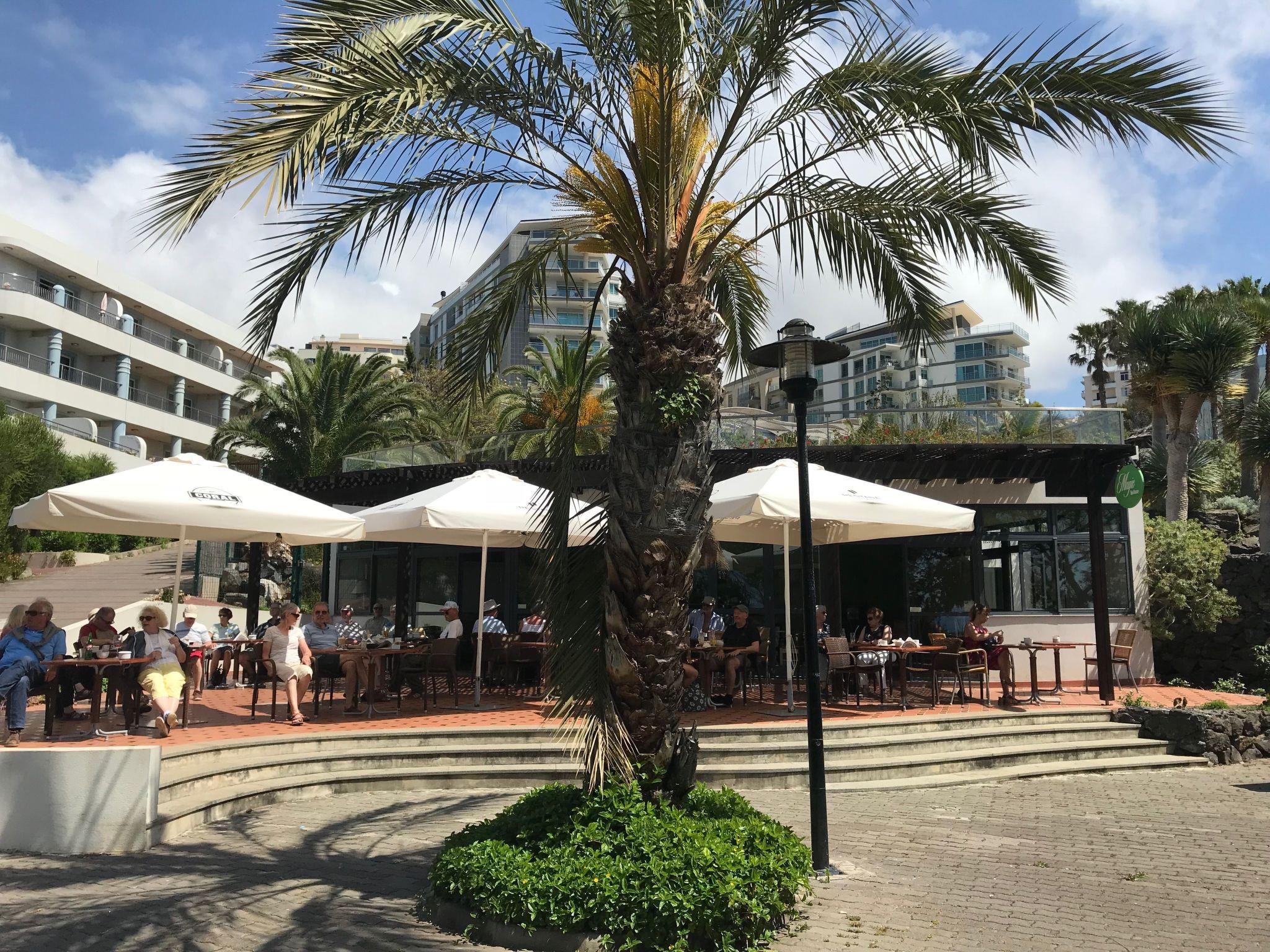 Stepping outside, the apartment boasts a delightful terrace and balcony, inviting guests to relax and unwind in the open air. These outdoor spaces are perfect for enjoying a morning coffee or an evening of stargazing. The communal pool area serves as a refreshing retreat from the warmth of Madeiran afternoons, offering a splendid way to cool off.