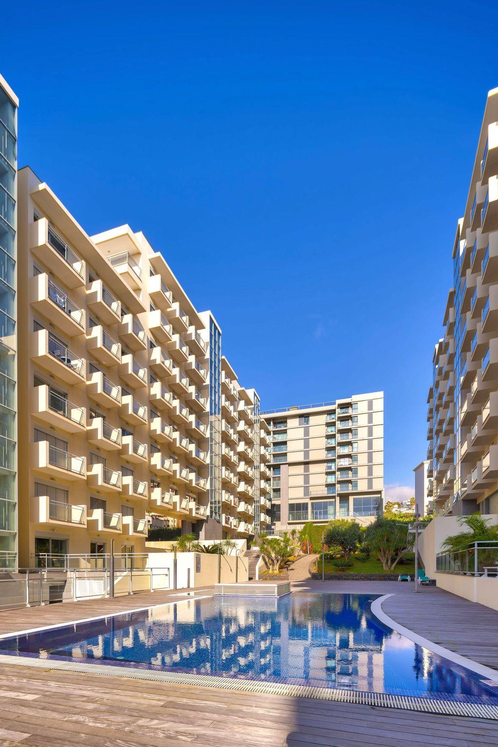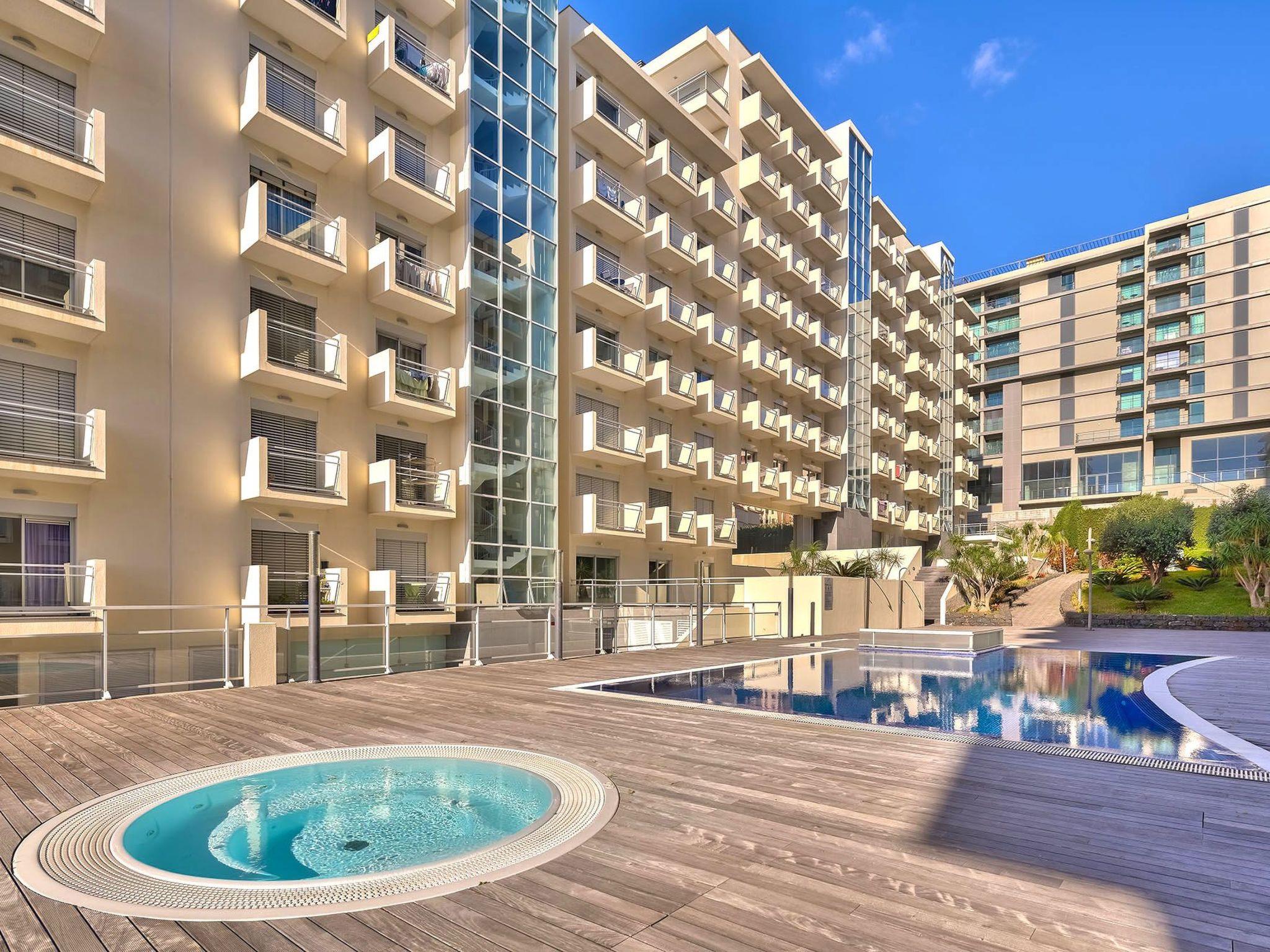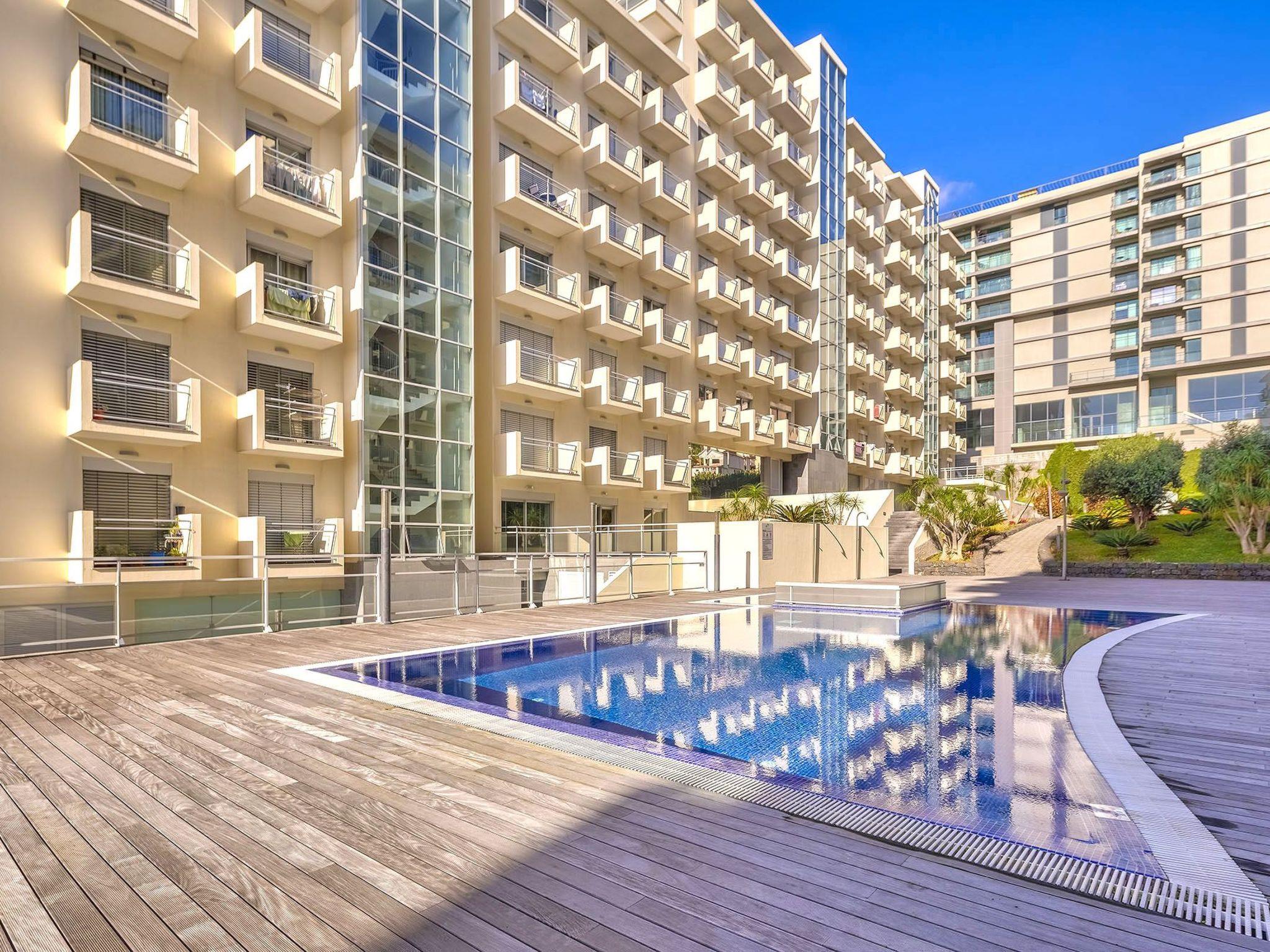 Step outside to discover a communal oasis where leisure meets luxury. The outdoor swimming pool beckons for a refreshing dip under the Madeiran sun, surrounded by a lush garden setting that enhances your sense of relaxation and escape. A balcony provides your own private space to savor the mild climate and picturesque surroundings. Meanwhile, the property’s playground offers a whimsical touch, making every moment spent outdoors as enjoyable as those spent indoors.
