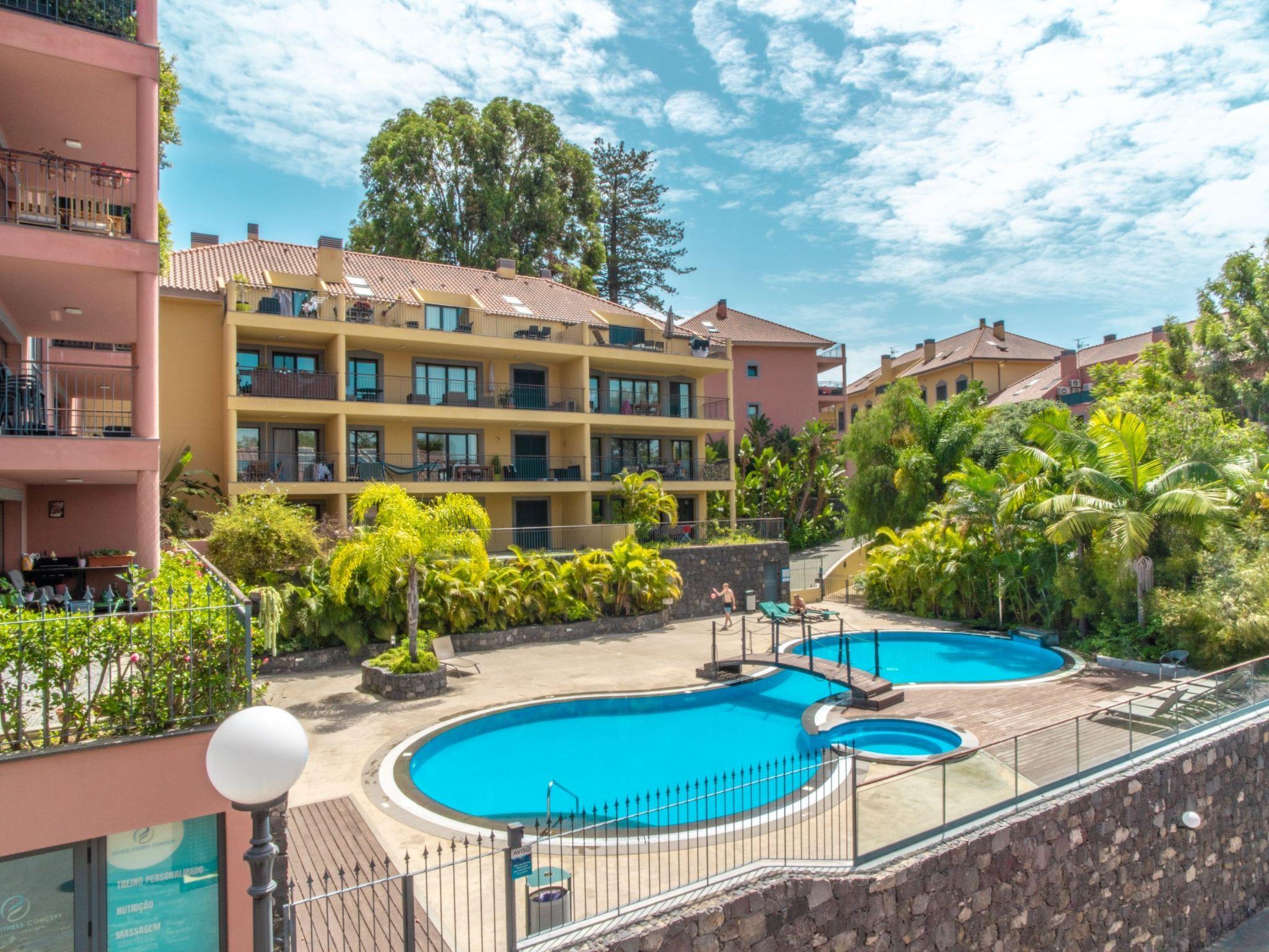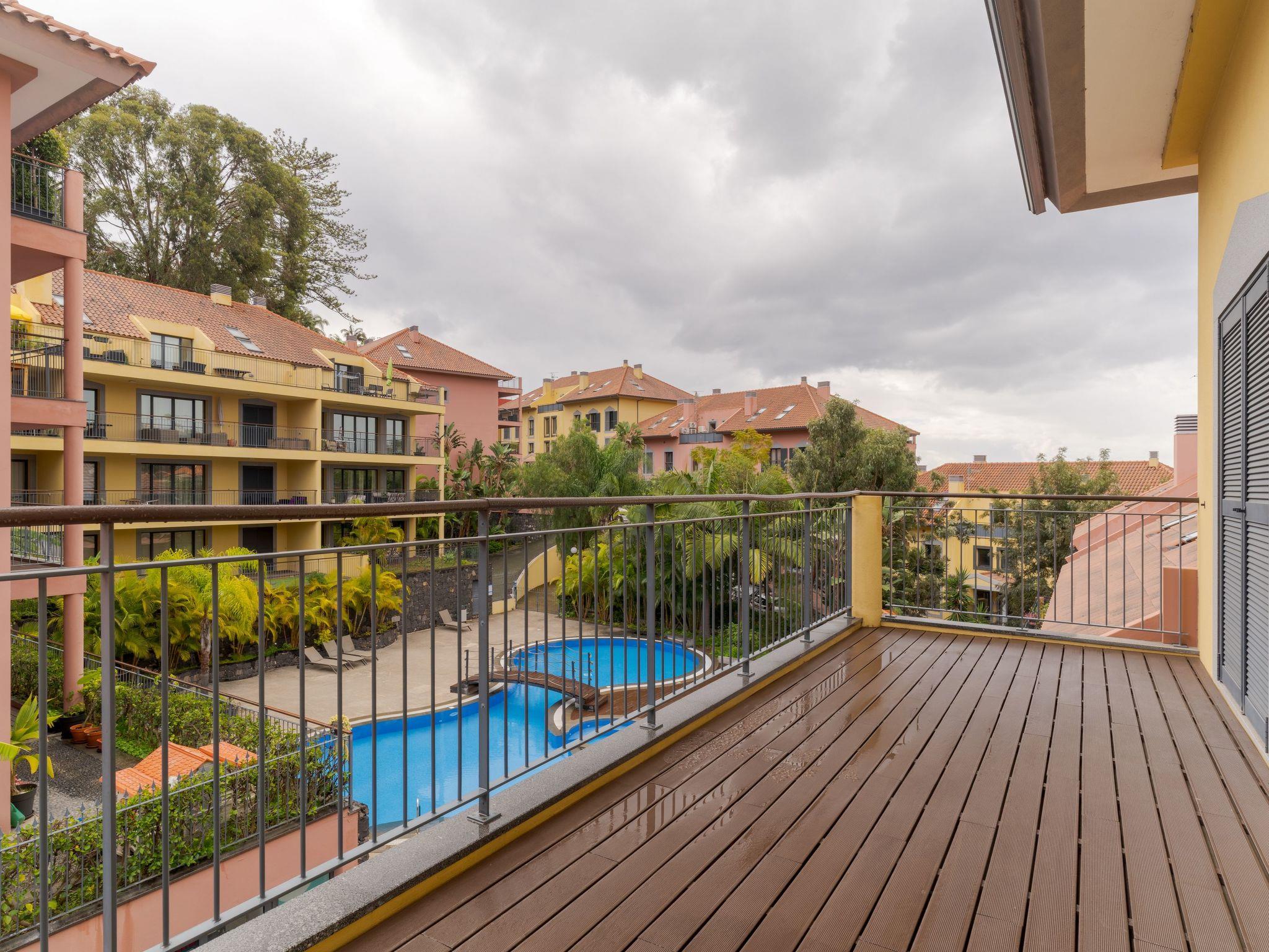 Outside, the apartment complex extends an invitation to relax and unwind in the shared garden or take a dip in the communal pool. These outdoor amenities offer a serene backdrop for leisurely afternoons basking under the Madeiran sun or enjoying light-hearted moments with loved ones. Additionally, the presence of a balcony provides a private outdoor space to revel in the gentle sea breeze or lose yourself in a good book.