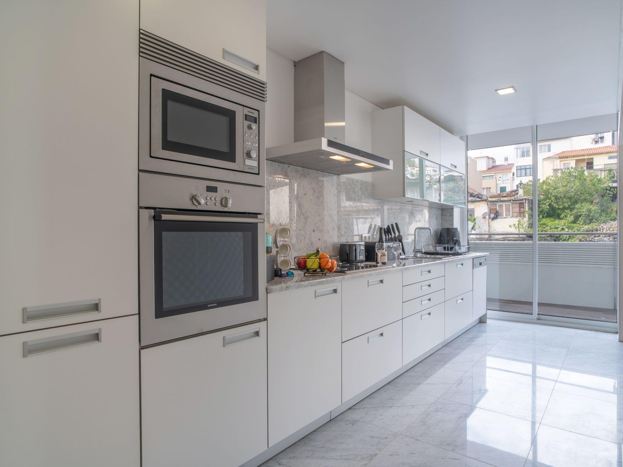 Step out onto the balcony to enjoy the fresh Madeiran air, a delightful space for relaxation at any time of the day. The apartment is designed to meet all your needs, with exclusive use of a washing machine, making it easy to keep your holiday wear ready. For those who love cooking, the kitchen is equipped with a gas cooker, an espresso coffee pot for your morning caffeine fixes, a dishwasher for hassle-free cleaning, and an electric kettle for your hot beverage needs.