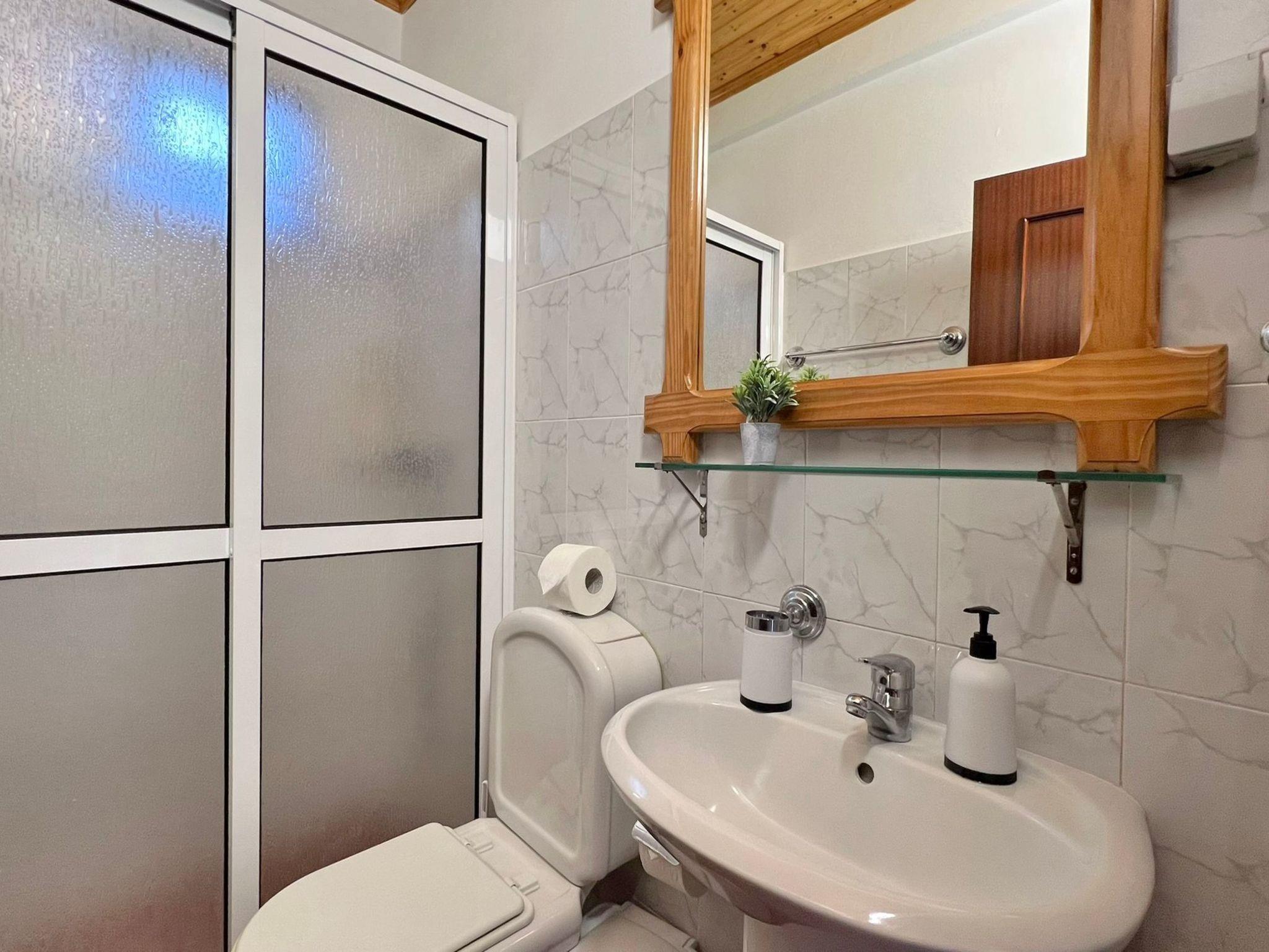 Inside, the house caters to your every need with a thoughtfully appointed layout. Two cozy bedrooms comfortably accommodate guests, with one featuring a double bed and the other a double and a single bed, ensuring a restful night's sleep for all. The practicality extends to two bathrooms, each equipped with a shower, washbasin, and toilet, facilitating a hassle-free stay. The kitchen is a culinary enthusiast's delight, boasting a 4-ring electric cooker, built-in oven and microwave, fridge-freezer, dishwasher, and a selection of coffee machines for morning indulgences. Meals can be enjoyed at the quaint table, seating up to five.