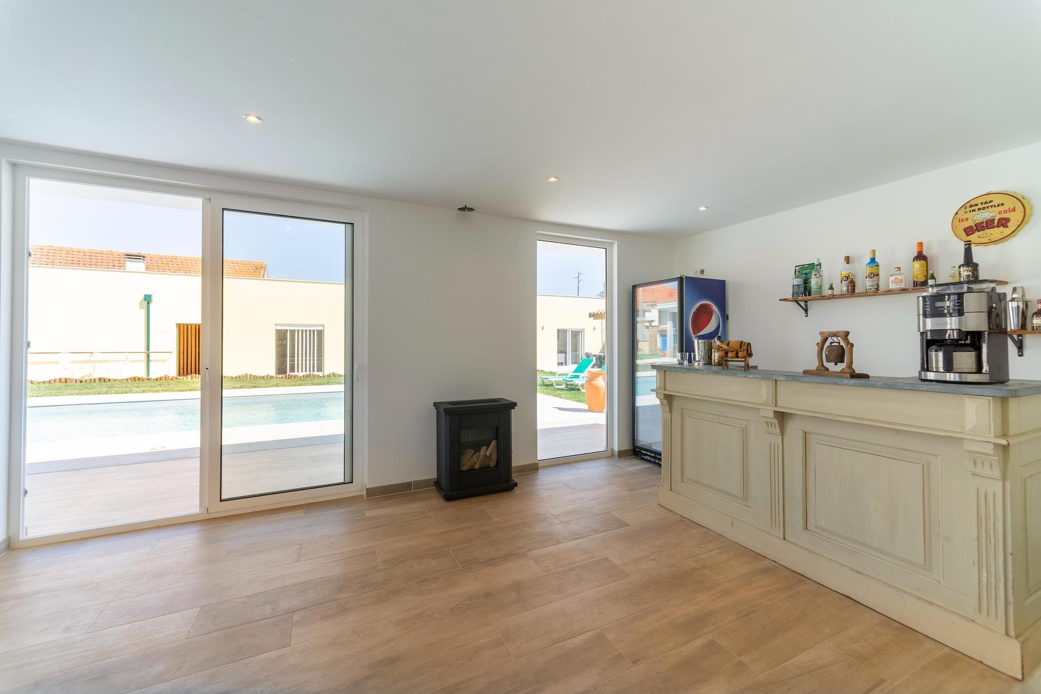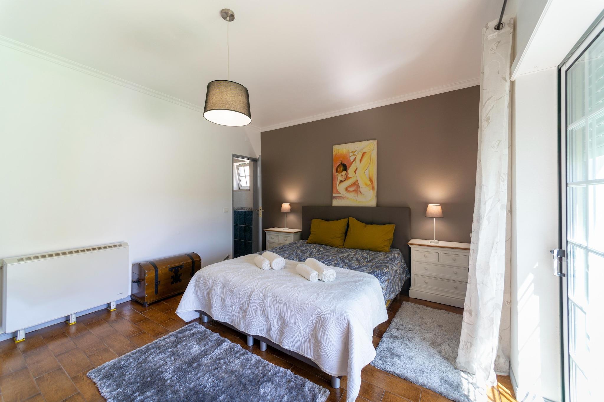 Beliggende i det fredelige landskab i Netos Almagreira, tilbyder dette charmerende feriehus en afslappende flugt for familier og venner. Med stilfuldt interiør og adgang til en stor fælles swimmingpool, sauna, boblebad og en smukt vedligeholdt have, er det det perfekte sted at slappe af og genoprette forbindelsen til naturen. Boligen rummer komfortabelt gæster med sin hyggelige planløsning og veludstyrede fælles udendørs køkken, ideelt til at tilberede måltider til at nyde på terrassen eller i gården. Børn vil elske den fælles trampolin, mens voksne kan nyde solen på liggestole eller nyde en stille stund i spa-loungen. Ejendommen har også et fælles grillområde og wellness-faciliteter for ekstra forkælelse. Beliggende kun 25 km fra Praia da Leirosa-stranden og 45 km fra Figueira da Foz, er boligen en god base for dagsture og kysteventyr. Vandre- og cykelruter omgiver området, og nærliggende restauranter og supermarkeder sikrer bekvemmelighed under dit ophold. Uanset om du udforsker regionen eller blot slapper af i haven, byder dette feriested på landet på en fredfyldt og foryngende oplevelse.