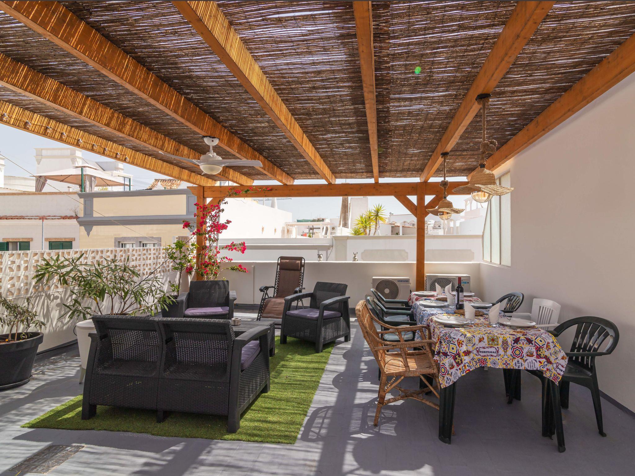 Comfortable terraced house "Felicidade", 2 storeys, renovated in 2020. In the district Olhão, 5.7 km from the sea. In the house: WiFi, air conditioning, washing machine. Public parking on the road. Grocery 160 m, supermarket 550 m, shopping centre 400 m, restaurant 290 m, bar 400 m, bakery 300 m, café 200 m, bus stop "Terminal Rodoviário de Olhão" 550 m, sandy beach "Praia da Armona" 5.7 km. Sports harbour 850 m, marina 850 m, surf school 18.4 km, sailing school 11.7 km, tennis 9.6 km, riding stable 24.3 km, children's playground 1.1 km, fishing possibilities 1 km. Nearby attractions: Praia da Ilha da Culatra 7.9 km, Igreja de Santa Maria 11.6 km, Ilha do Farol 10.8 km, Mercado de Olhão 400 m, Parque Natural da Ria Formosa 2.6 km, Museu Municipal de Faro 11.1 km. Please note: suitable for families. Groups of teenagers on request only.