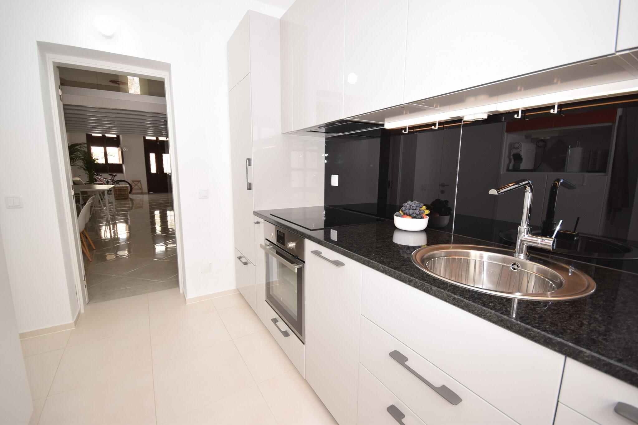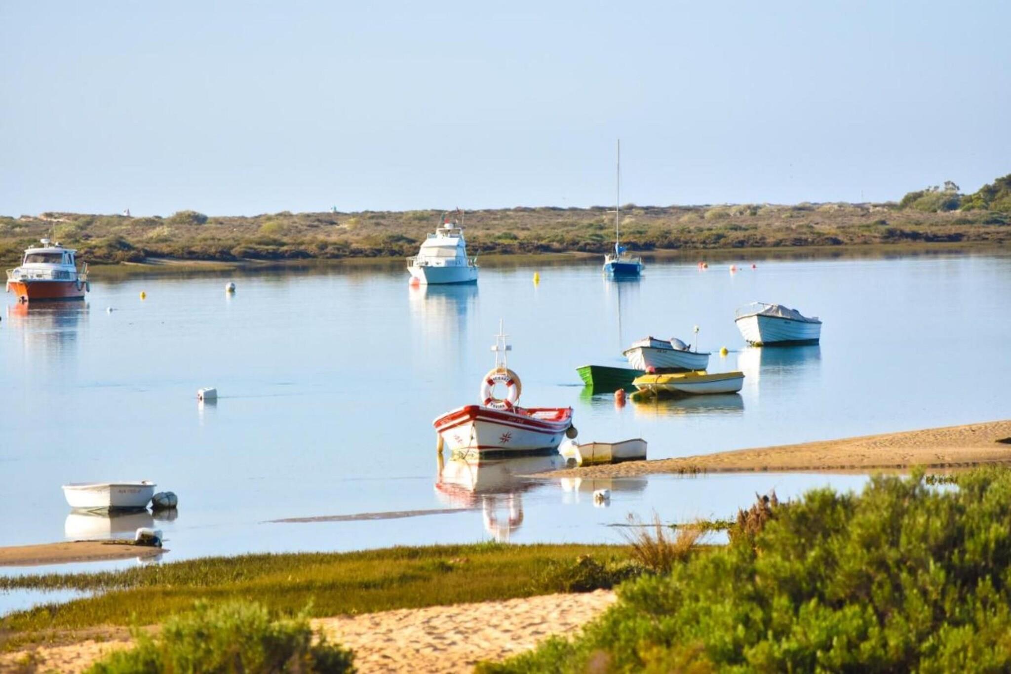 Fredeligt feriehus ved Ria Formosa Oplev det fredfyldte liv ved kysten i dette charmerende feriehus i Olhão, lige ved kanten af den smukke naturpark Ria Formosa. Kun en kort færgetur væk fra uberørte strande som Ilha da Armona og Ilha da Culatra kan du fordybe dig i det rolige vand, udforske det livlige havliv eller nyde afslappede gåture langs kysten. Den nærliggende Fuseta-strand er perfekt til solbadning og vandsportsentusiaster, hvilket gør dette sted til et sandt paradis for strandelskere. Udforsk Algarves rige arv og smagsoplevelser Olhão er berømt for sin maleriske havn, markeder med friske fisk og skaldyr og traditionel portugisisk charme. Gå en tur gennem de lokale gader og find et dejligt udvalg af spisesteder, fra hyggelige bagerier kun 200 meter væk til indbydende restauranter, der serverer retter med dagens fangst inden for 300 meter. Gå ikke glip af chancen for at besøge Faro, kun 8,5 km væk, hvor historisk arkitektur og livlige torve venter. Byen er kendt for sin charmerende gamle bydel, kulturelle festivaler og caféer ved vandet, der tilbyder en autentisk Algarve-oplevelse.
