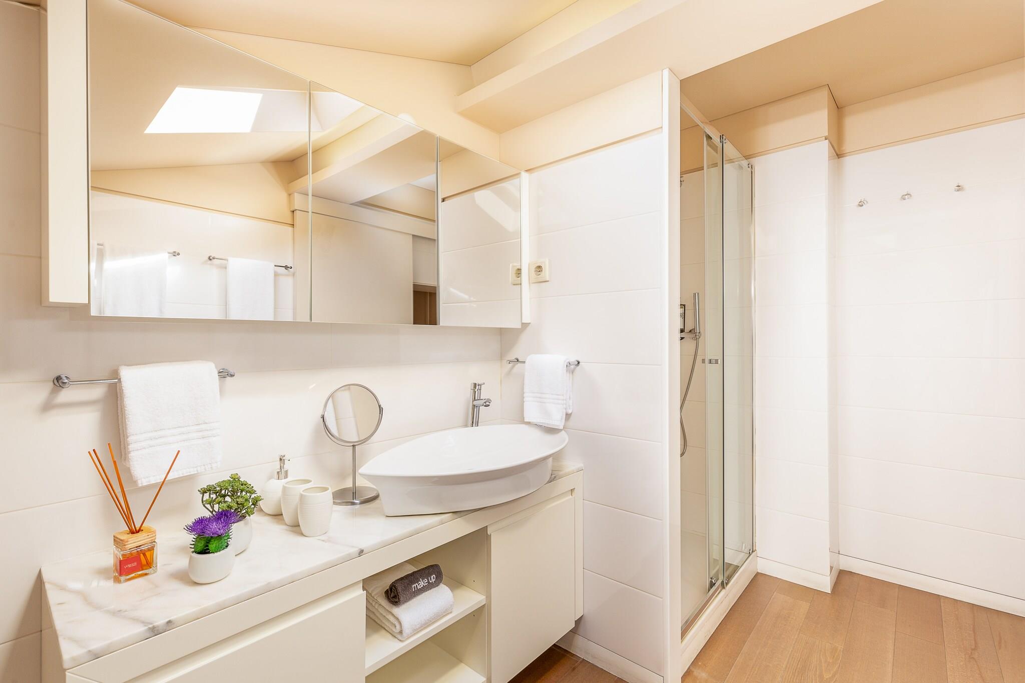 Denne moderne og hyggelige lejlighed tilbyder 90 m² stilfuldt boligareal, ideel til op til 3 personer. Det har 2 velindrettede soveværelser og 2 badeværelser, der giver rigelig plads til afslapning. Lejligheden er fuldt udstyret med aircondition, Wi-Fi, et tv med forskellige sprogkanaler og et fuldt udstyret køkken med top-of-the-line apparater såsom køleskab, vaskemaskine, tørretumbler, kaffemaskine, ovn og mikroovn. Et strygejern er også til rådighed for din bekvemmelighed, hvilket sikrer, at du ser skarp ud under hele dit ophold. Den smagfulde indretning bidrager til den indbydende atmosfære, hvilket gør det til et perfekt tilflugtssted i hjertet af Porto. Beliggende i det pulserende bycentrum, er lejligheden i gåafstand fra Portos store attraktioner, restauranter, butikker og caféer, der tilbyder masser af muligheder for udforskning. Offentlig transport er let tilgængelig, med Bolhão metrostation kun en kort gåtur væk. Uanset om du er her for fritid eller forretning, vil du finde alt, hvad du behøver for at opleve byens rige kultur og historie. Lejlighedens køkken er en iøjnefaldende funktion, udstyret til alle dine behov for tilberedning af måltider, fra en morgenkaffe til en komplet middag. Derudover sikrer de 2 badeværelser bekvemmelighed og privatliv for alle gæster. Med sin kombination af moderne bekvemmeligheder og førsteklasses beliggenhed giver denne lejlighed alt for et behageligt og mindeværdigt ophold i Porto.