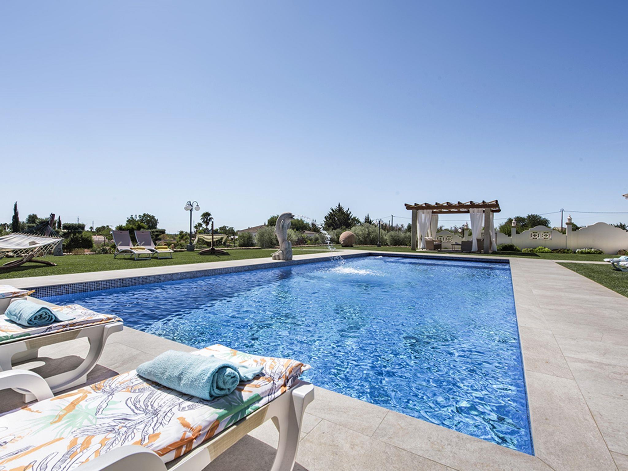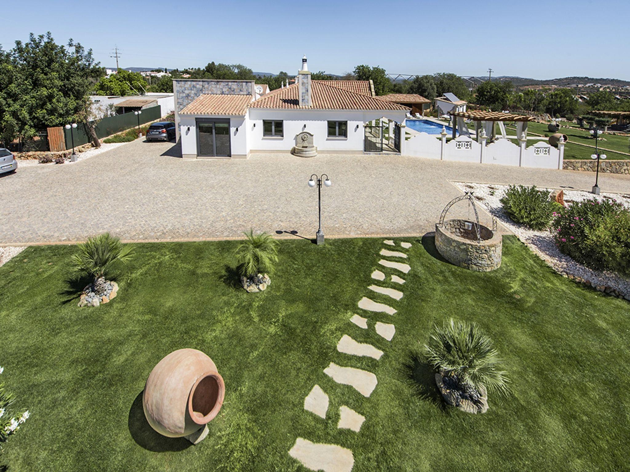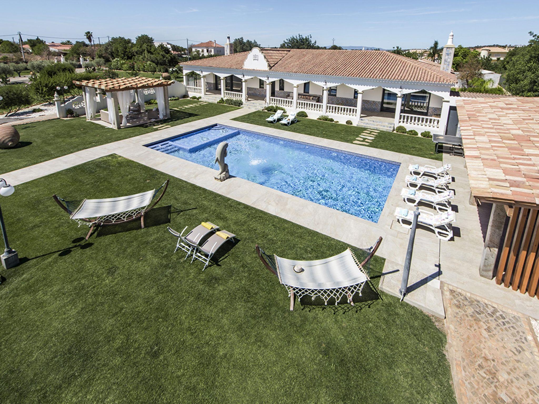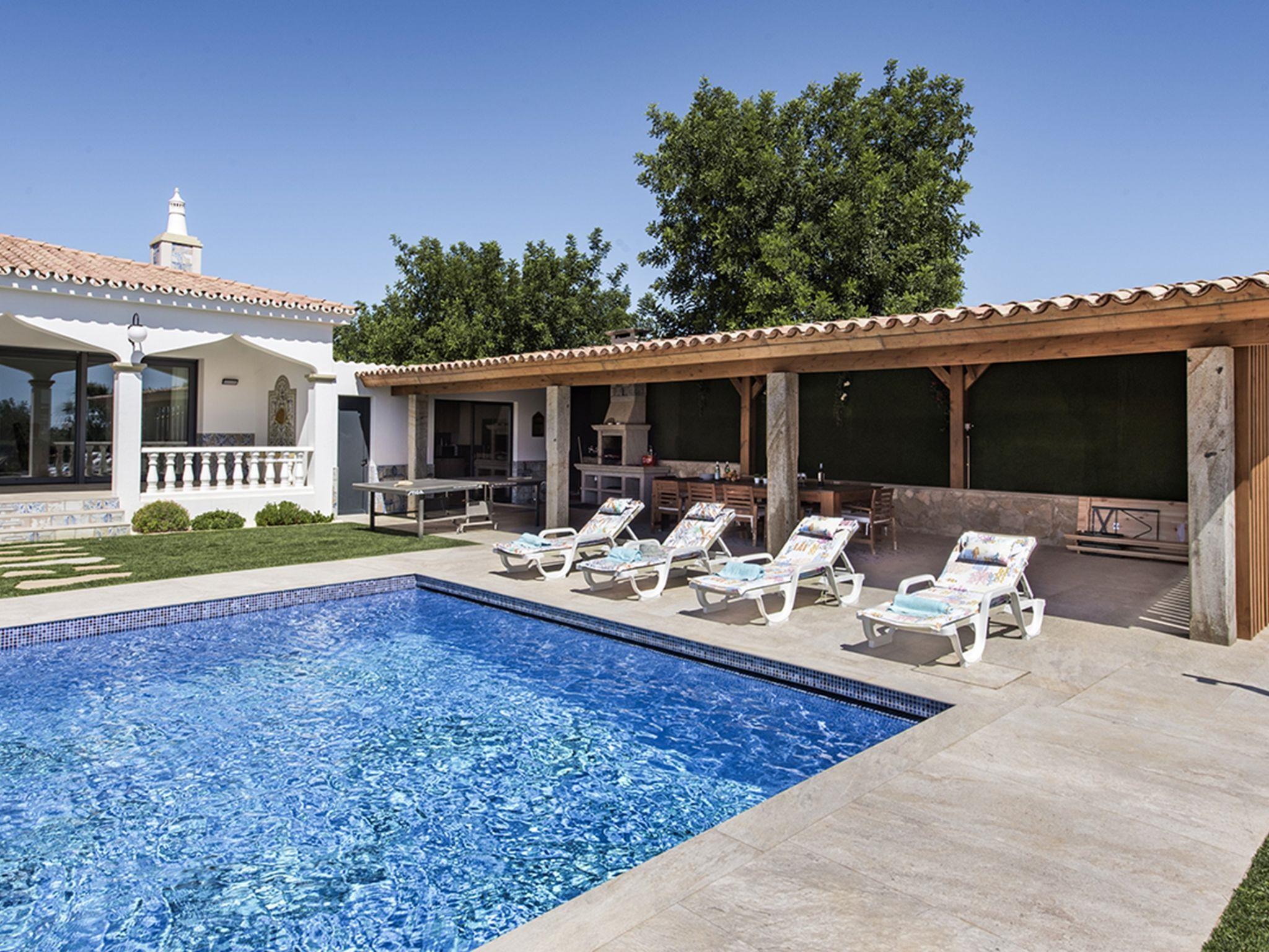Very modern, beautiful villa "Flor de Lis". In the district Paderne, residential area (villas), 8.5 km from the sea. Private: wildlife garden and trees, beautiful garden to relax, swimming pool angular (5 x 10 m, depth 110 - 220 cm, seasonal availability: 01.Jan. - 31.Dec.). Outdoor shower, hot tub, table tennis, beach volleyball patio, arbour, pergola, garden furniture, barbecue, children's playground (slide, swing, sandbox). In the house: WiFi, hot tub, air conditioning, washing machine, drying room. Parking at the house. Grocery 4.4 km, supermarket 4.4 km, shopping centre 8.4 km, restaurant 600 m, bakery 4.4 km, café 4.5 km, bicycle rental 6.7 km, bus stop 600 m, sandy beach "Praia dos Pescadores" 8.5 km, diving center 10.2 km. Marina 10.6 km, golf course (18 hole) 12.5 km, surf school 12.1 km, tennis 12.2 km, riding stable 16.8 km, children's playground 8.6 km. Nearby attractions: Casa Museu do Paderne 4.4 km, Castelo de Paderne 7.3 km, Donkey Tours 7.3 km, Aqualand Algarve 18.2 km, Zoomarine Algarve 11 km, Krazy World 9.9 km. Please note: car recommended. Suitable for families. Loading and unloading of baggage is possible at the holiday house. All groups of young people under 25 years old must pay an extra deposit in cash on arrival.