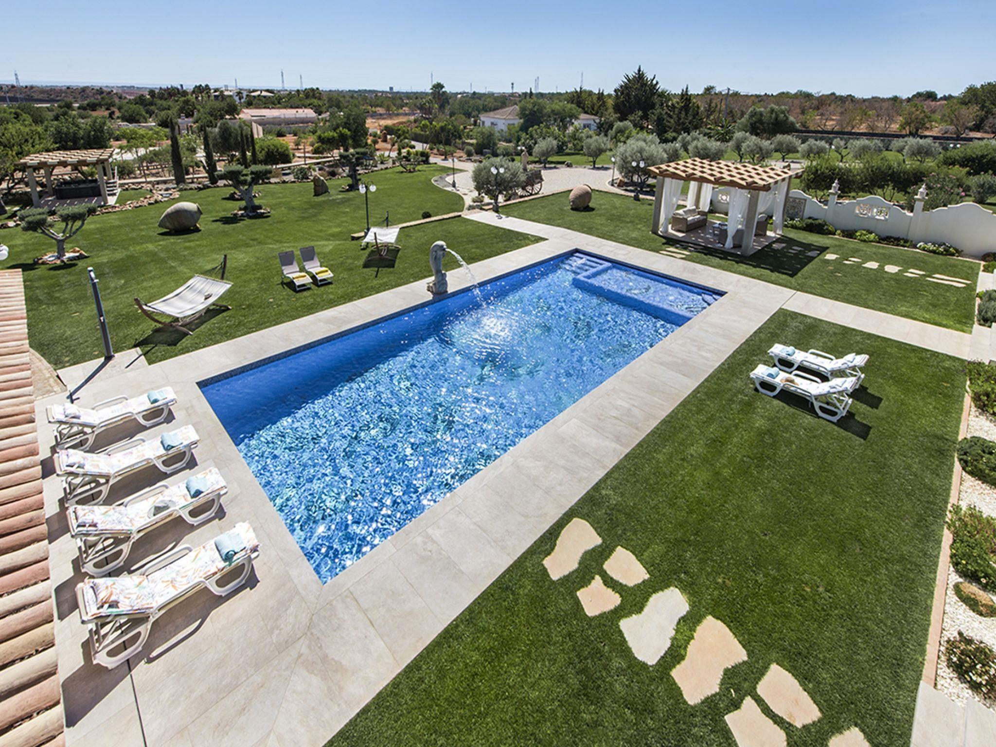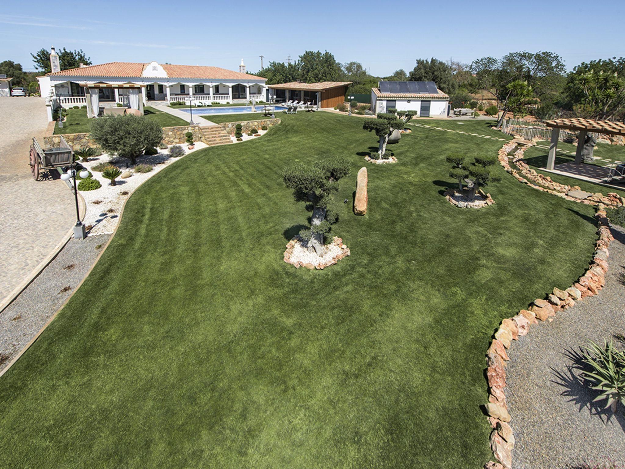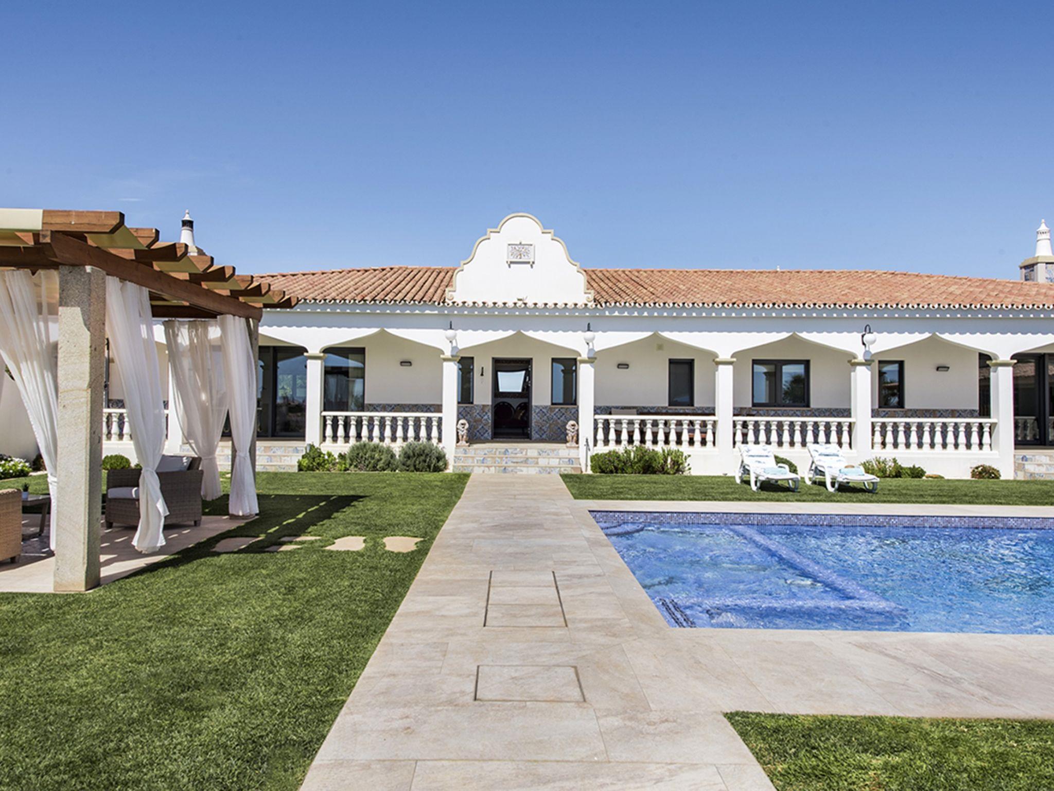 Very modern, beautiful villa "Flor de Lis". In the district Paderne, residential area (villas), 8.5 km from the sea. Private: wildlife garden and trees, beautiful garden to relax, swimming pool angular (5 x 10 m, depth 110 - 220 cm, seasonal availability: 01.Jan. - 31.Dec.). Outdoor shower, hot tub, table tennis, beach volleyball patio, arbour, pergola, garden furniture, barbecue, children's playground (slide, swing, sandbox). In the house: WiFi, hot tub, air conditioning, washing machine, drying room. Parking at the house. Grocery 4.4 km, supermarket 4.4 km, shopping centre 8.4 km, restaurant 600 m, bakery 4.4 km, café 4.5 km, bicycle rental 6.7 km, bus stop 600 m, sandy beach "Praia dos Pescadores" 8.5 km, diving center 10.2 km. Marina 10.6 km, golf course (18 hole) 12.5 km, surf school 12.1 km, tennis 12.2 km, riding stable 16.8 km, children's playground 8.6 km. Nearby attractions: Casa Museu do Paderne 4.4 km, Castelo de Paderne 7.3 km, Donkey Tours 7.3 km, Aqualand Algarve 18.2 km, Zoomarine Algarve 11 km, Krazy World 9.9 km. Please note: car recommended. Suitable for families. Loading and unloading of baggage is possible at the holiday house. All groups of young people under 25 years old must pay an extra deposit in cash on arrival.