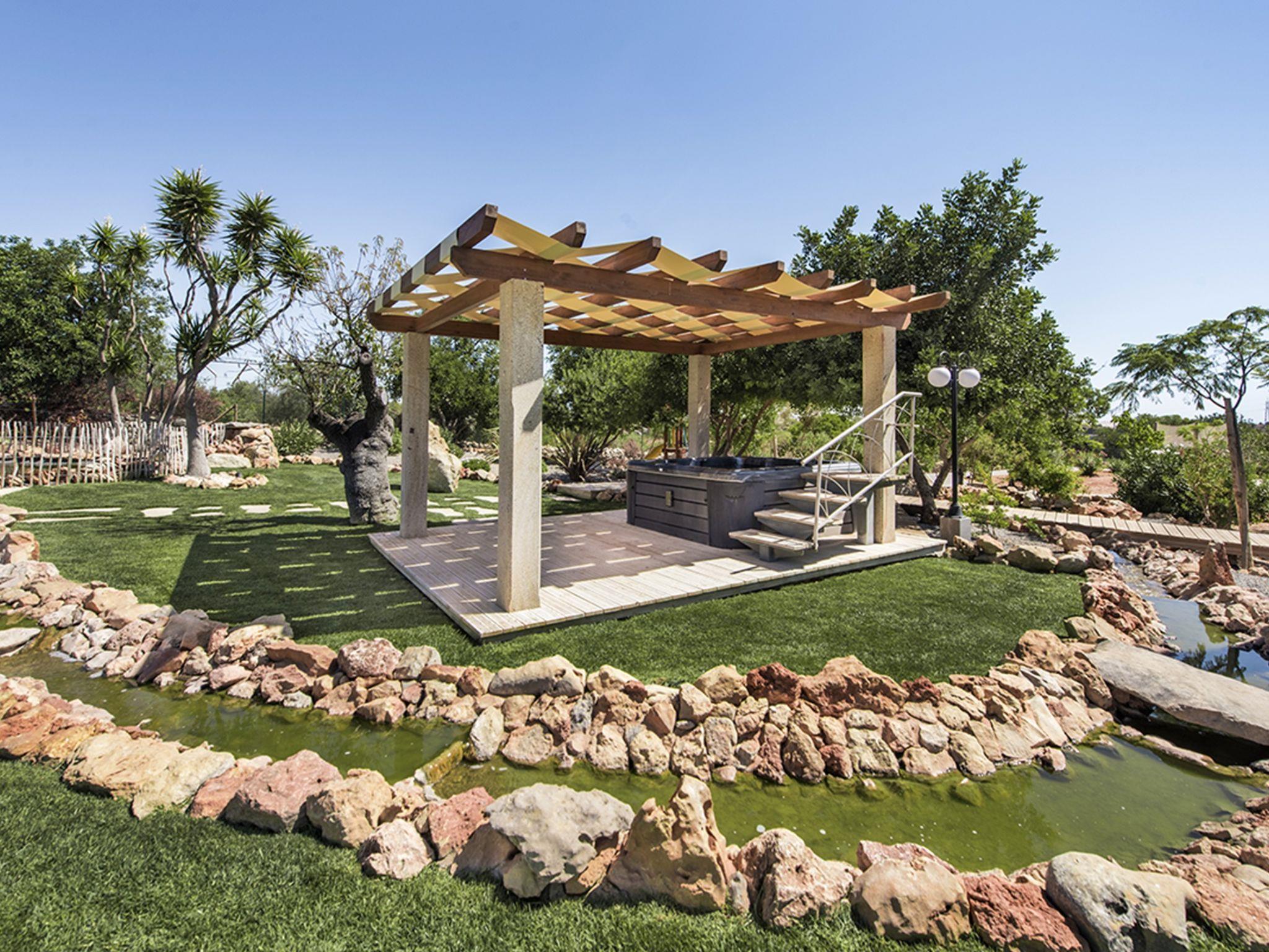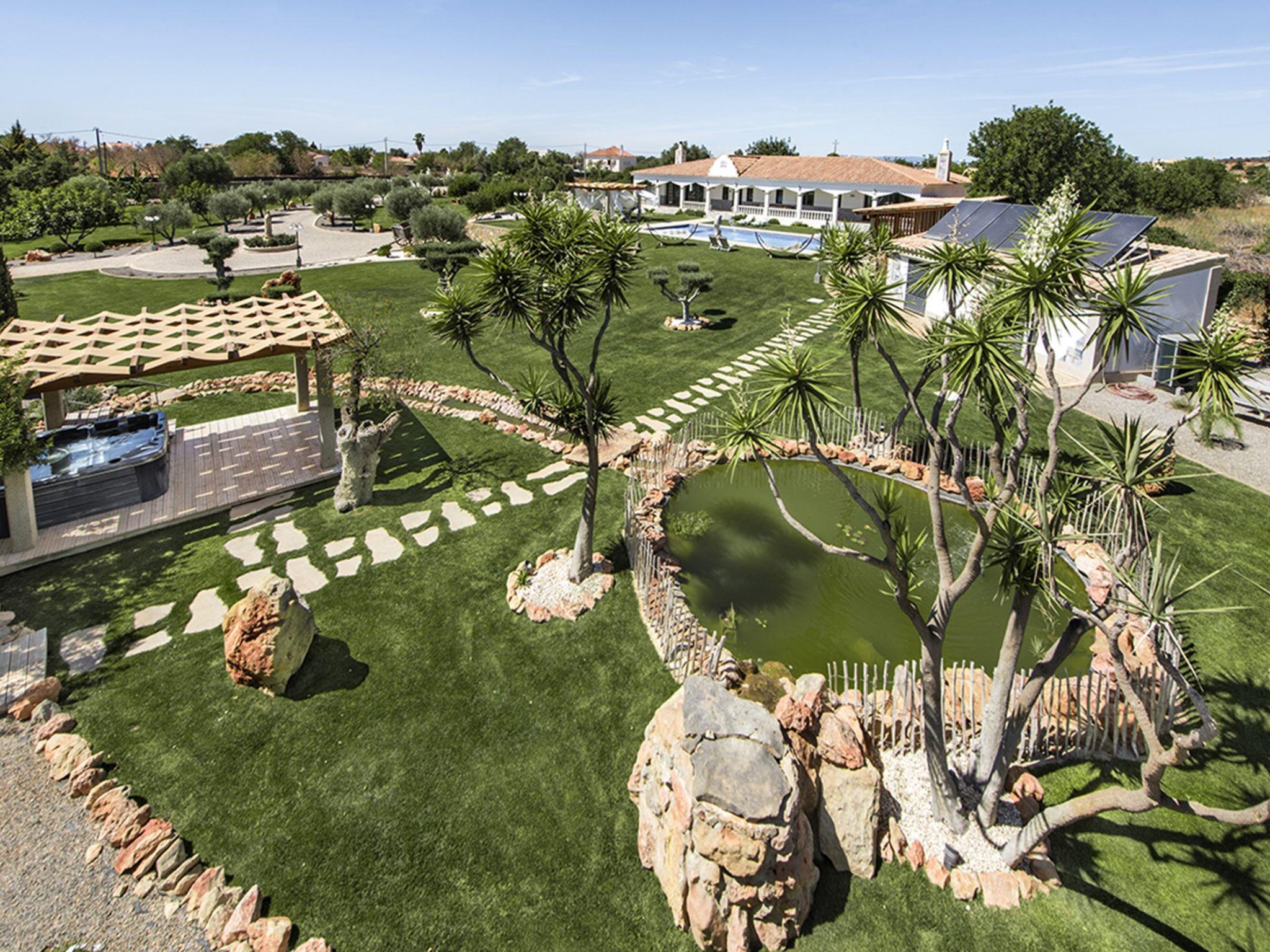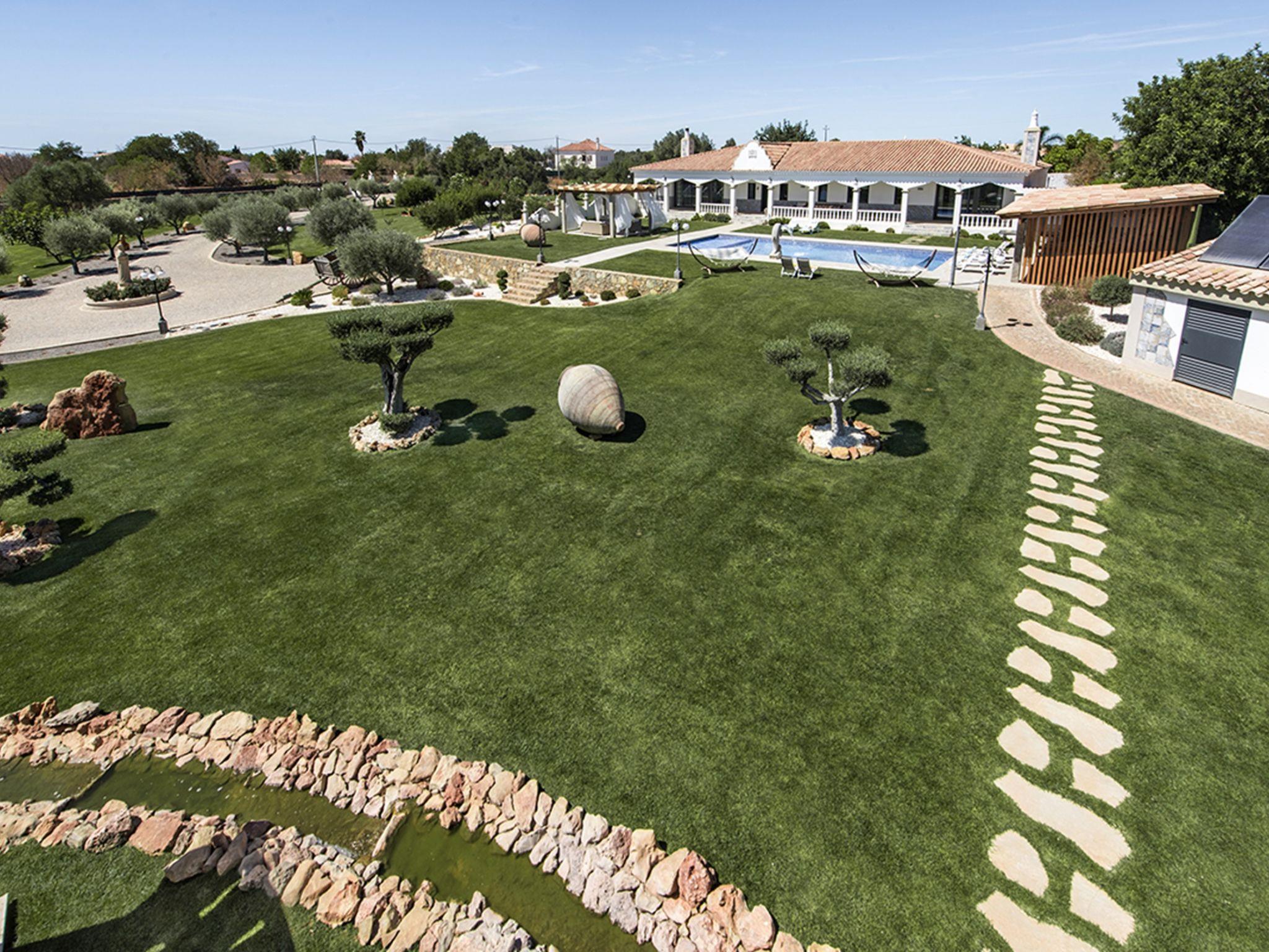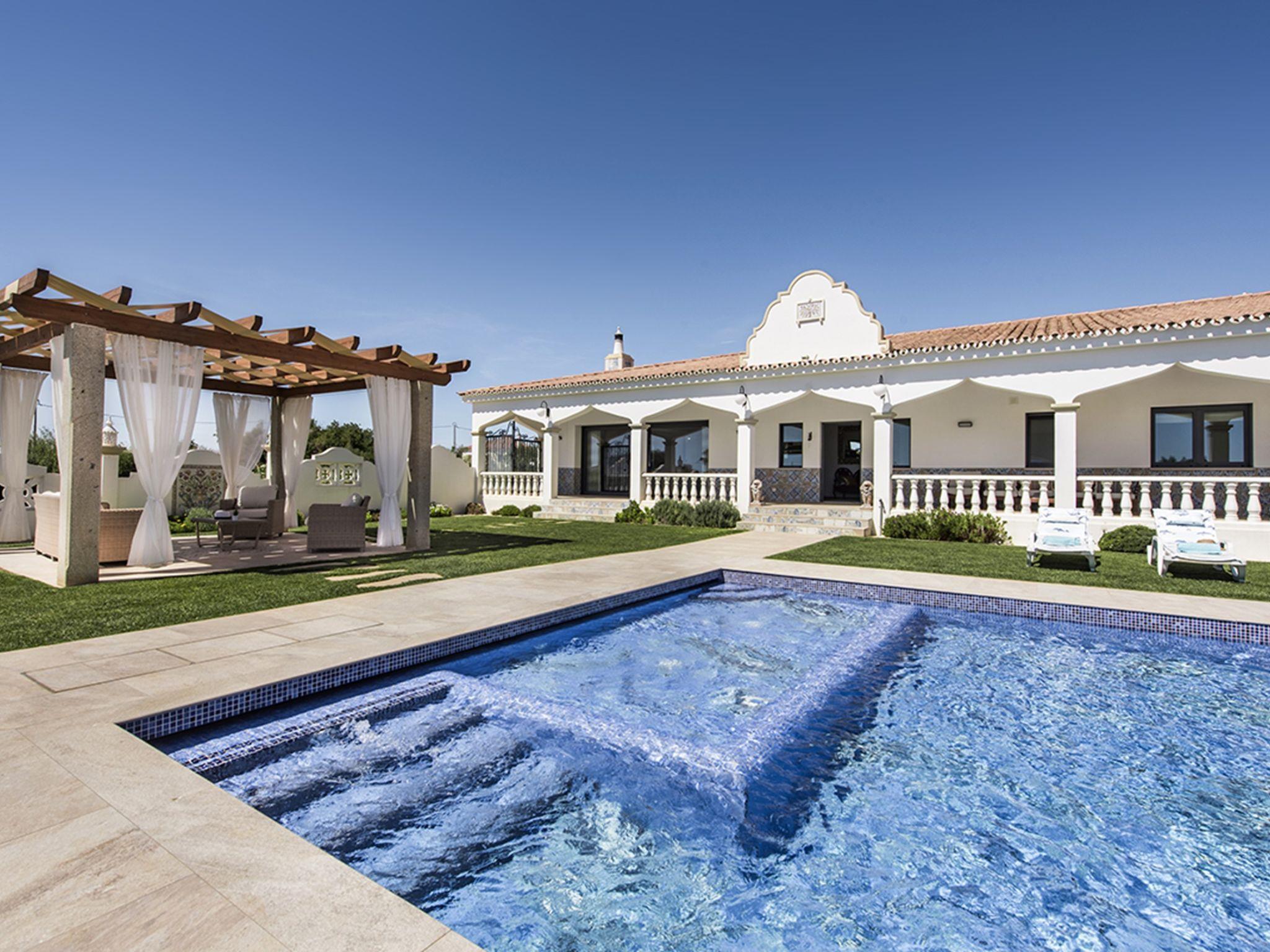 Very modern, beautiful villa "Flor de Lis". In the district Paderne, residential area (villas), 8.5 km from the sea. Private: wildlife garden and trees, beautiful garden to relax, swimming pool angular (5 x 10 m, depth 110 - 220 cm, seasonal availability: 01.Jan. - 31.Dec.). Outdoor shower, hot tub, table tennis, beach volleyball patio, arbour, pergola, garden furniture, barbecue, children's playground (slide, swing, sandbox). In the house: WiFi, hot tub, air conditioning, washing machine, drying room. Parking at the house. Grocery 4.4 km, supermarket 4.4 km, shopping centre 8.4 km, restaurant 600 m, bakery 4.4 km, café 4.5 km, bicycle rental 6.7 km, bus stop 600 m, sandy beach "Praia dos Pescadores" 8.5 km, diving center 10.2 km. Marina 10.6 km, golf course (18 hole) 12.5 km, surf school 12.1 km, tennis 12.2 km, riding stable 16.8 km, children's playground 8.6 km. Nearby attractions: Casa Museu do Paderne 4.4 km, Castelo de Paderne 7.3 km, Donkey Tours 7.3 km, Aqualand Algarve 18.2 km, Zoomarine Algarve 11 km, Krazy World 9.9 km. Please note: car recommended. Suitable for families. Loading and unloading of baggage is possible at the holiday house. All groups of young people under 25 years old must pay an extra deposit in cash on arrival.
