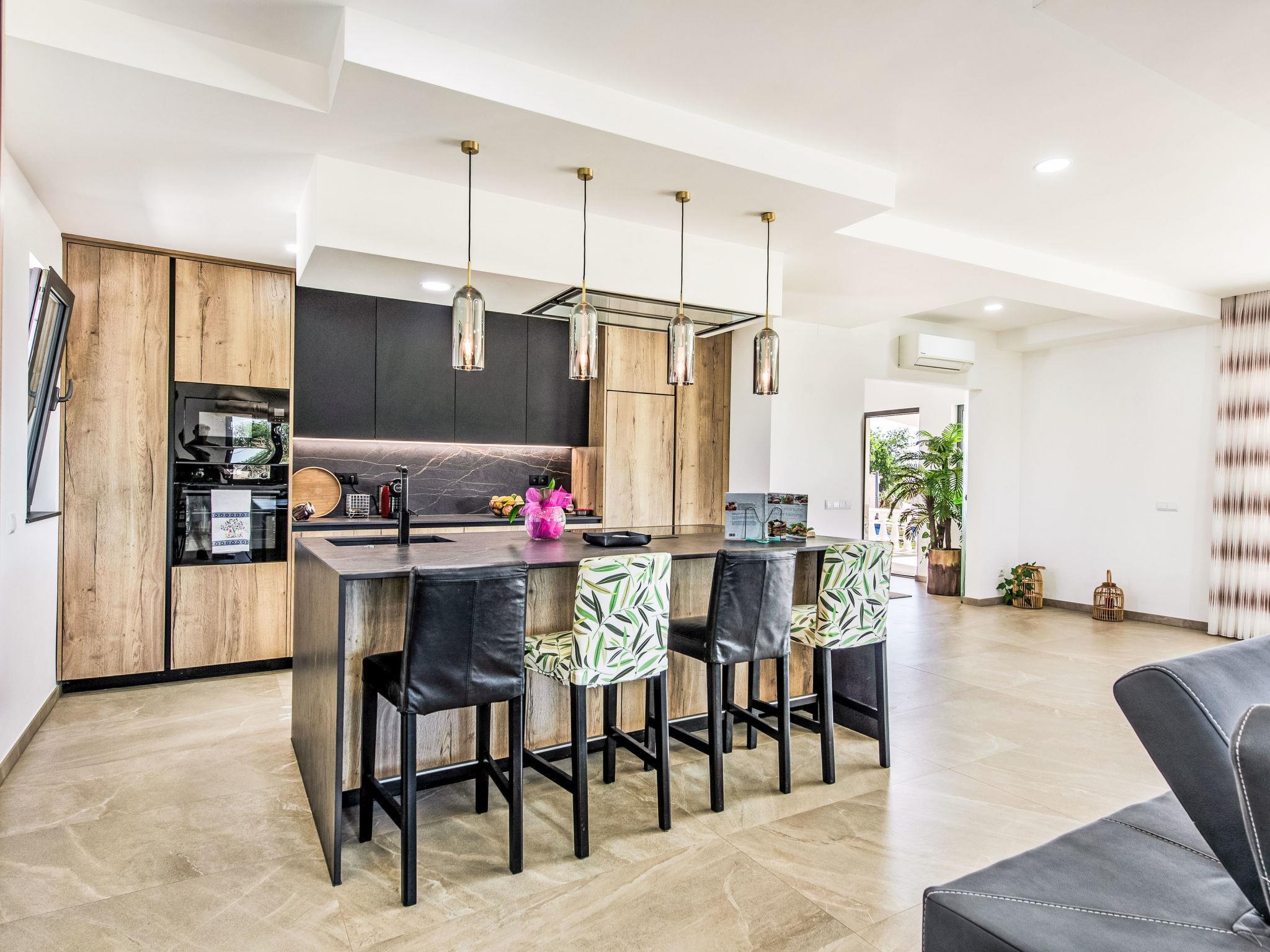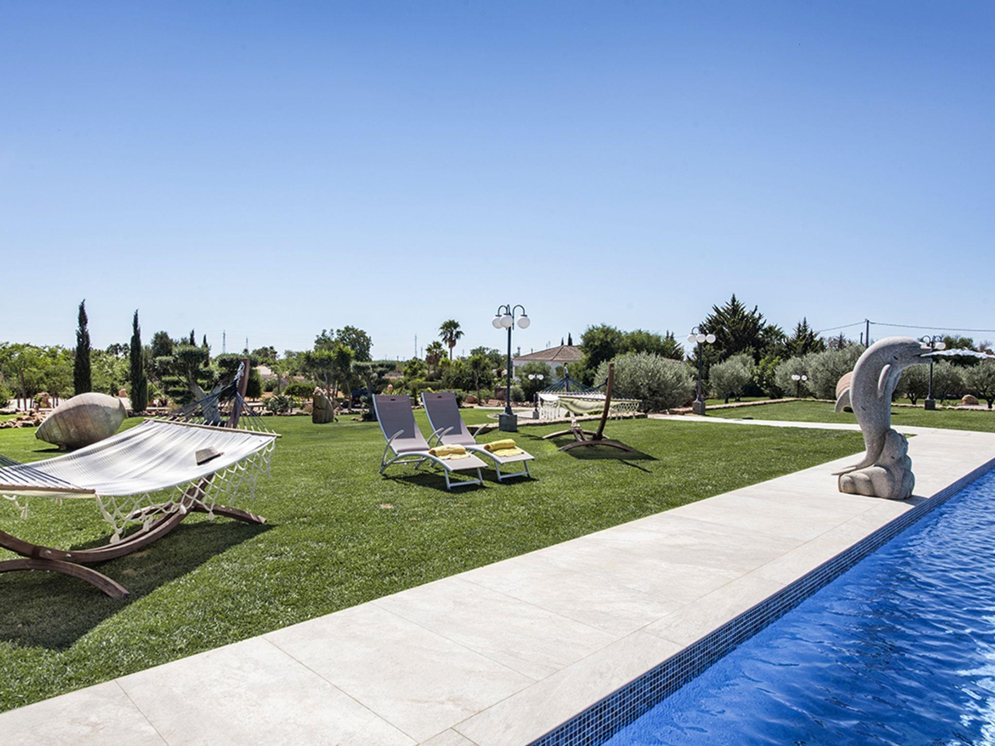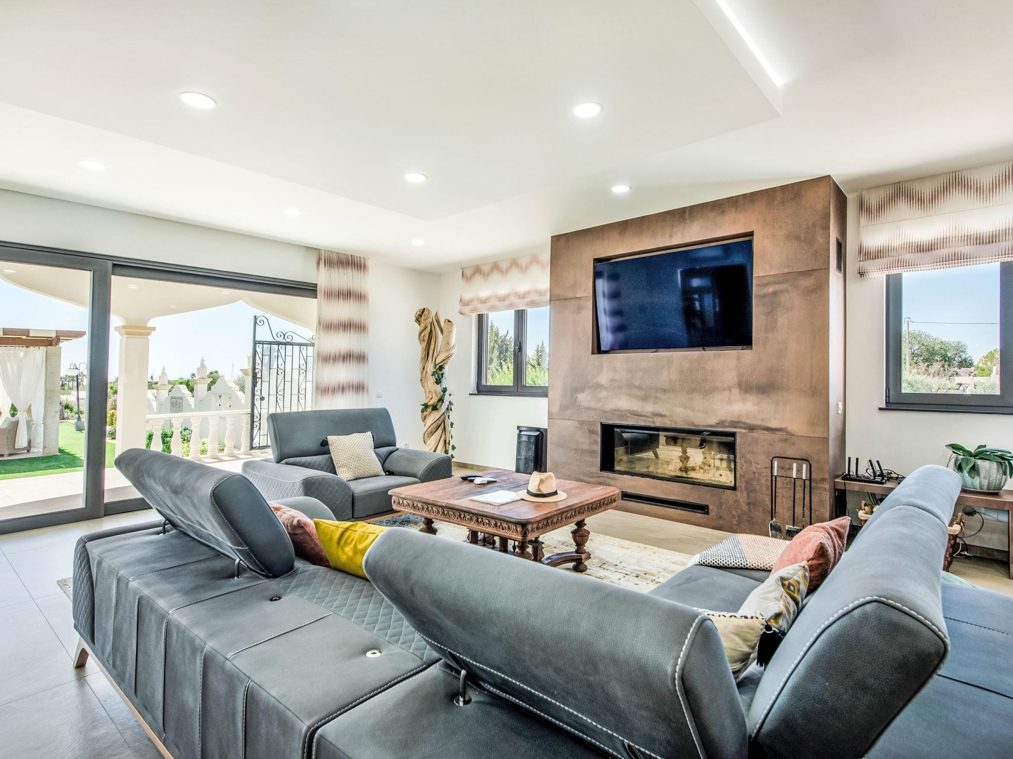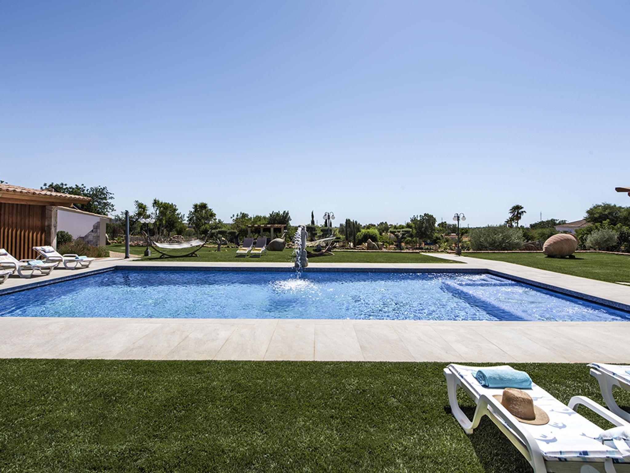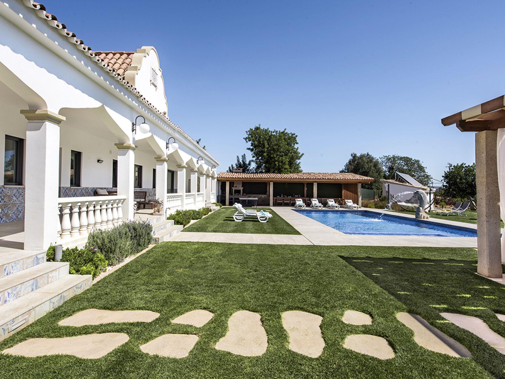 "Flor de Lis", 5-room villa 250 m2. Very tasteful and cosy furnishings: living/dining room with open-hearth fireplace (only for decoration), cable TV, international TV channels, flat screen, air conditioning and forced-air heating. Exit to the patio. 2 rooms, each room with 1 french bed (140 cm, length 200 cm), shower/WC, air conditioning and forced-air heating. 1 room with 1 french bed (140 cm, length 200 cm), bath/shower/WC, air conditioning and forced-air heating. Exit to the terrace, to the swimming pool. 1 room with 1 french bed (140 cm, length 200 cm), shower/WC, air conditioning and forced-air heating. Open kitchen (oven, dishwasher, 4 ceramic glass hob hotplates, toaster, kettle, microwave, freezer, electric coffee machine, cooking island). Shower/WC. Air-conditioning. Terrace furniture, barbecue, deck chairs (8). Very beautiful view of the countryside. Facilities: washing machine, iron, children's high chair, baby cot for up to 2 year olds (extra), hair dryer. Internet (WiFi, free). Parking at the house. Please note: suitable for families. Fire extinguisher. 158182/AL