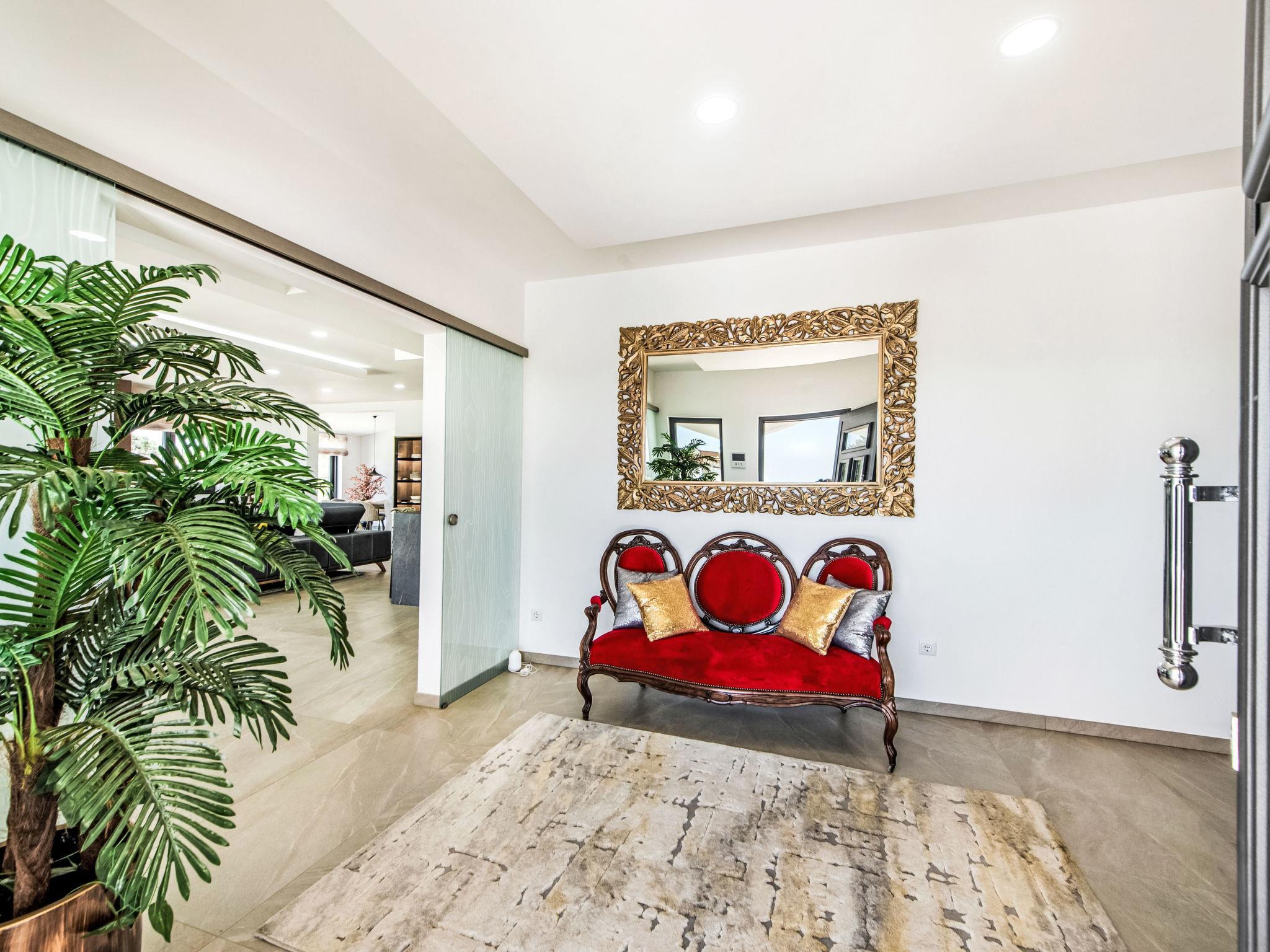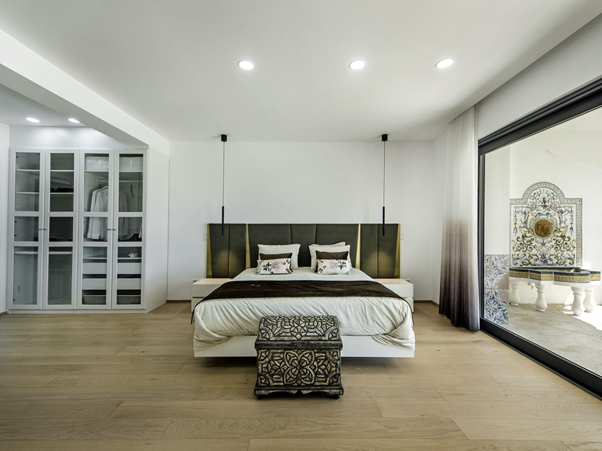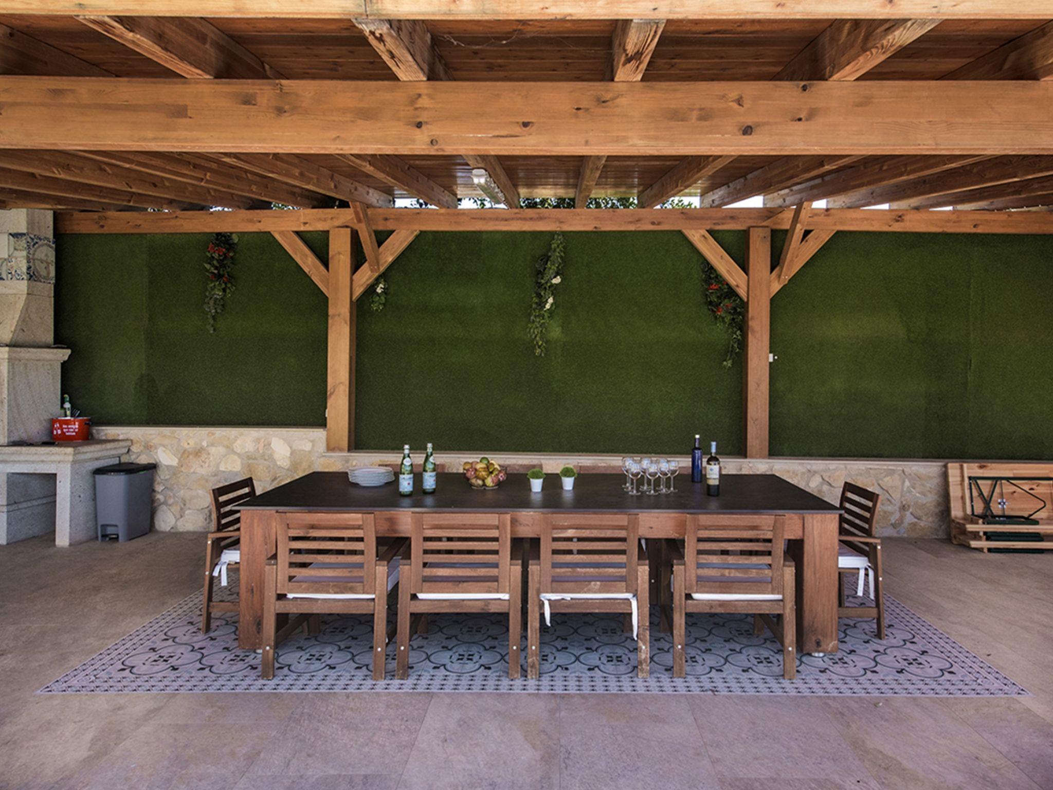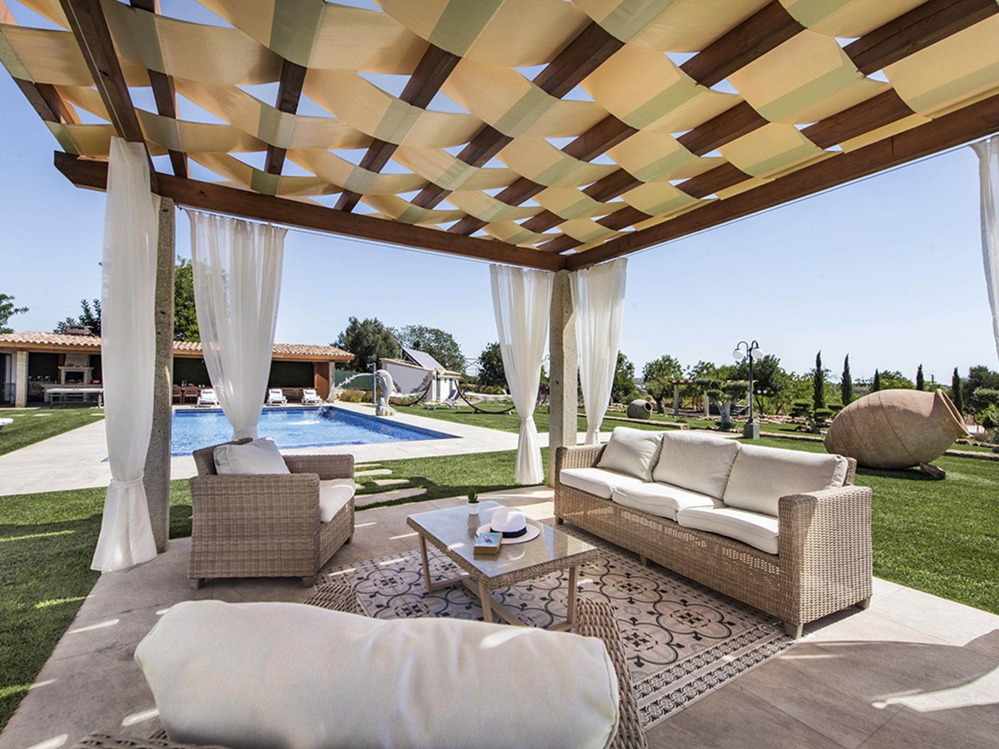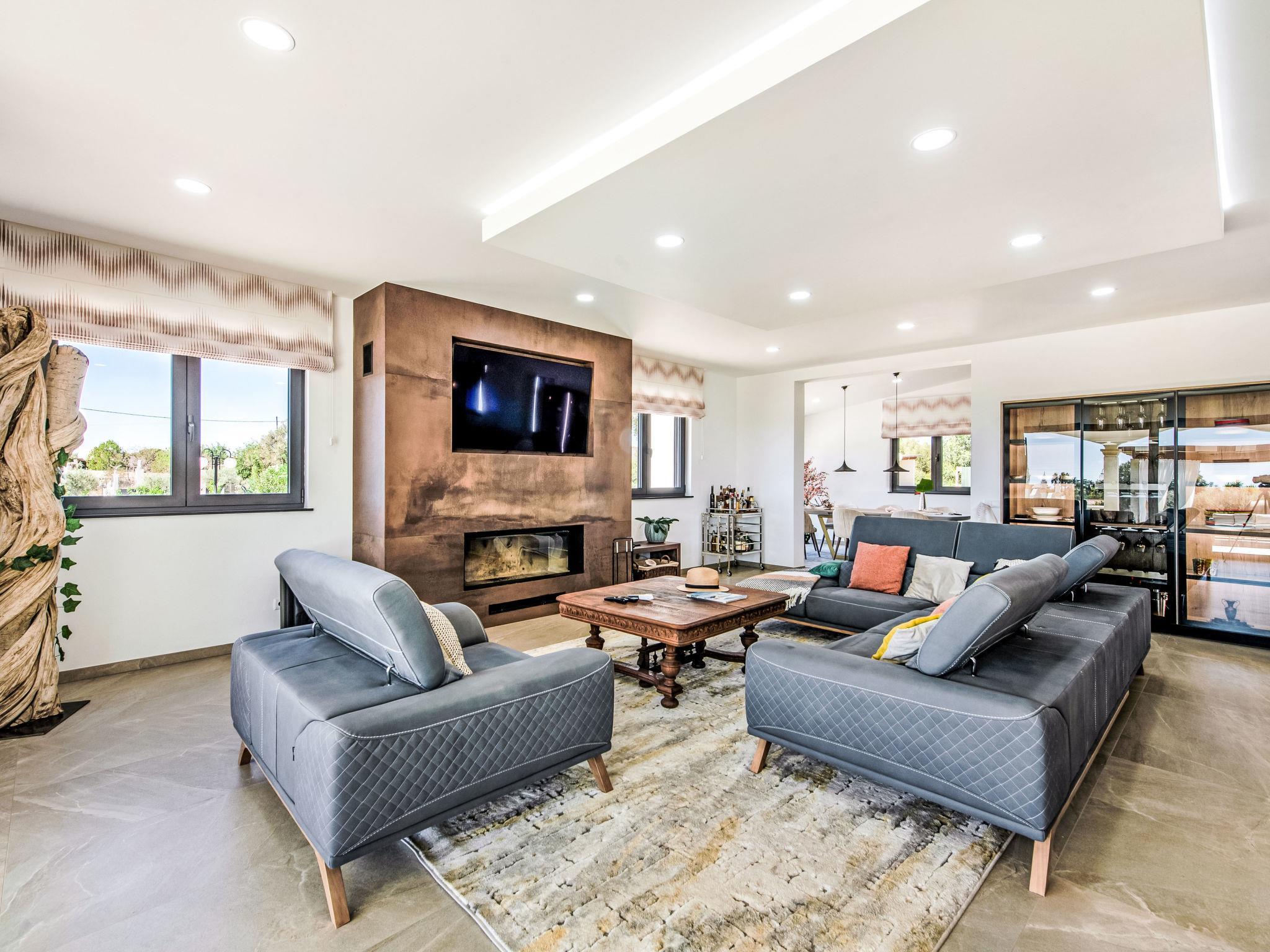 "Flor de Lis", 5-room villa 250 m2. Very tasteful and cosy furnishings: living/dining room with open-hearth fireplace (only for decoration), cable TV, international TV channels, flat screen, air conditioning and forced-air heating. Exit to the patio. 2 rooms, each room with 1 french bed (140 cm, length 200 cm), shower/WC, air conditioning and forced-air heating. 1 room with 1 french bed (140 cm, length 200 cm), bath/shower/WC, air conditioning and forced-air heating. Exit to the terrace, to the swimming pool. 1 room with 1 french bed (140 cm, length 200 cm), shower/WC, air conditioning and forced-air heating. Open kitchen (oven, dishwasher, 4 ceramic glass hob hotplates, toaster, kettle, microwave, freezer, electric coffee machine, cooking island). Shower/WC. Air-conditioning. Terrace furniture, barbecue, deck chairs (8). Very beautiful view of the countryside. Facilities: washing machine, iron, children's high chair, baby cot for up to 2 year olds (extra), hair dryer. Internet (WiFi, free). Parking at the house. Please note: suitable for families. Fire extinguisher. 158182/AL