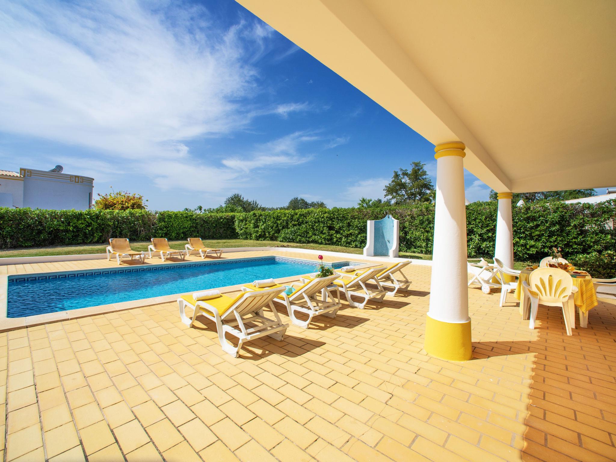 House "Da Bela Vista". In the district of Moinho do Leitão 2.2 km from the centre of Paderne, 15 km from the sea. Private: property 800 m2 (fenced), terraced garden with lawn, swimming pool (7 x 3 m, depth 90 - 180 cm, seasonal availability: 01.Jan. - 31.Dec.). Outdoor shower. In the house: roof terrace. 250 m long narrow motor access. Parking on the premises. Shop 1.5 km, supermarket 2.2 km, restaurant 1.2 km, bus stop 1 km, railway station "Tunes" 9.5 km, sandy beach "Albufeira" 15 km. Marina 16.5 km. Nearby attractions: Krazy World 14.5 km, Moinho do Leitão 150 m.