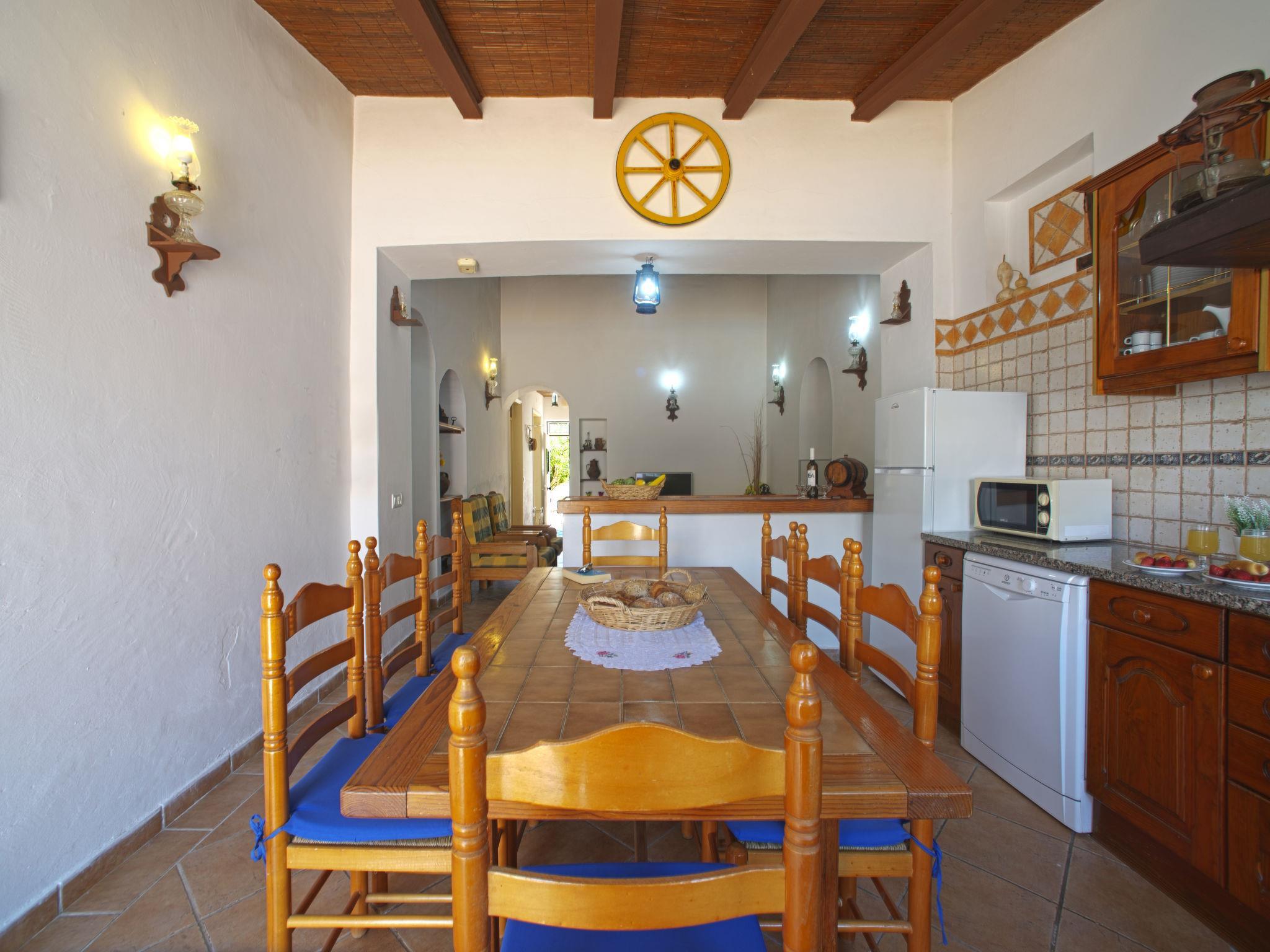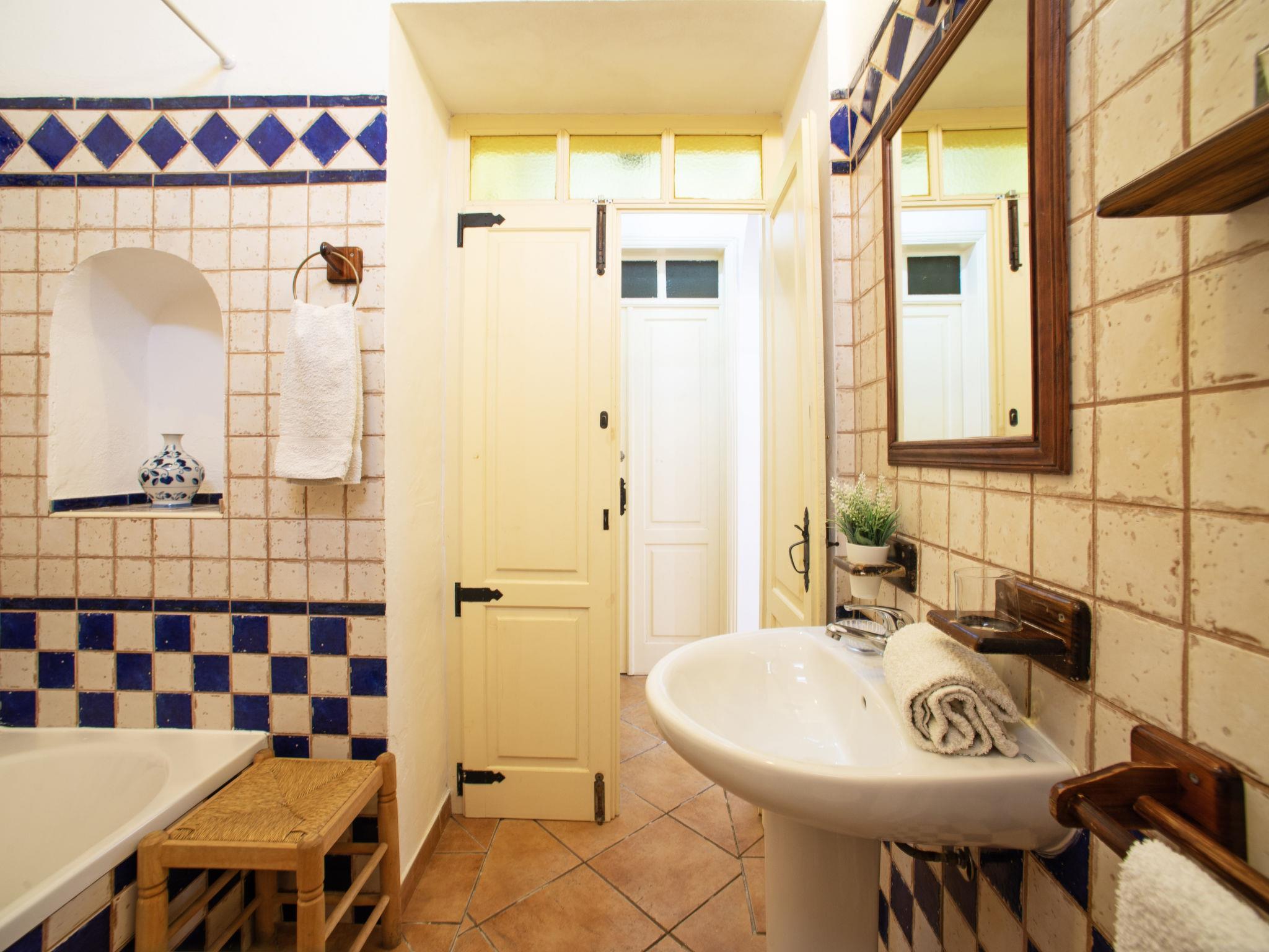 "Monte da Calma", 7-room house 130 m2. Rustic and cosy furnishings: living/dining room with dining table, cable TV, radio and CD-player. Exit to the garden. Open office. 1 room with 1 french bed (160 cm, length 200 cm), shower/WC and electric heater. 1 room with 1 french bed (160 cm, length 200 cm), electric heater. 2 rooms, each room with 2 beds (100 cm, length 200 cm), electric heater. Kitchen-/living room (oven, dishwasher, 4 gas rings, toaster, kettle, microwave, freezer, electric coffee machine) with dining table. Exit to the terrace. 2 baths/WC, shower/WC, sep. WC. Heating not available in all rooms. Terrace. Terrace furniture, barbecue, deck chairs (8). Facilities: washing machine, safe, iron, children's high chair, baby cot, hair dryer. Internet (WiFi, free). Please note: non-smokers only. Fire extinguisher. 141877/AL