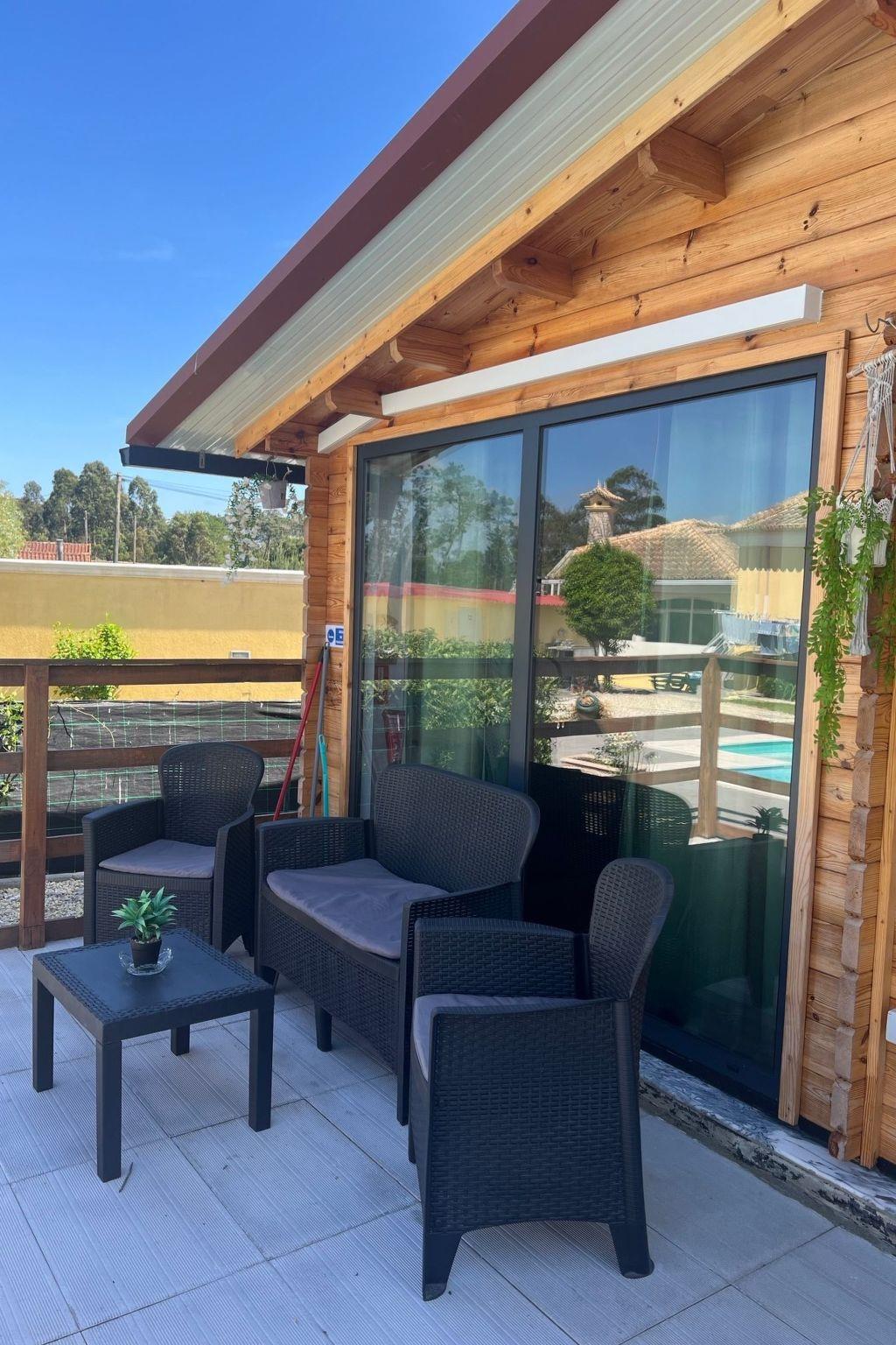 This holiday home is located in Ponte de Vagos and is the ideal accommodation for a relaxing getaway. The 50 m² property consists of a living room with a sofa bed for one person, a kitchen, two bedrooms, and one bathroom, accommodating up to five people. Additional amenities include high-speed Wi-Fi (suitable for video calls), a Smart TV with streaming services, air conditioning, a washing machine, and books and toys for children. A crib and a high chair are also available. This accommodation features a private open terrace for relaxing at the end of the day. The property offers access to shared outdoor facilities, including a swimming pool, a children's garden area, and a barbecue grill. The outdoor area is furnished for added convenience. This holiday home is located in a quiet area with easy access to the A17 motorway and is convenient for visiting nearby cities such as Aveiro, Coimbra, Porto, and Figueira da Foz. It is just 10 minutes from Praia de Mira and 15 minutes from the beaches of Vagueira, Costa Nova, and Barra, with restaurants nearby. Public transportation is within walking distance. Four parking spaces are available in a garage on the main house grounds, and there is free street parking. Pets, smoking, and events are not permitted. There are pets on the property, but in their own fenced area.. The pool is shared. The property offers modern amenities, including a TV, air conditioning, and Wi-Fi. Guidelines are available to help guests with proper waste separation, with more information provided on-site. The property features energy-saving lighting.