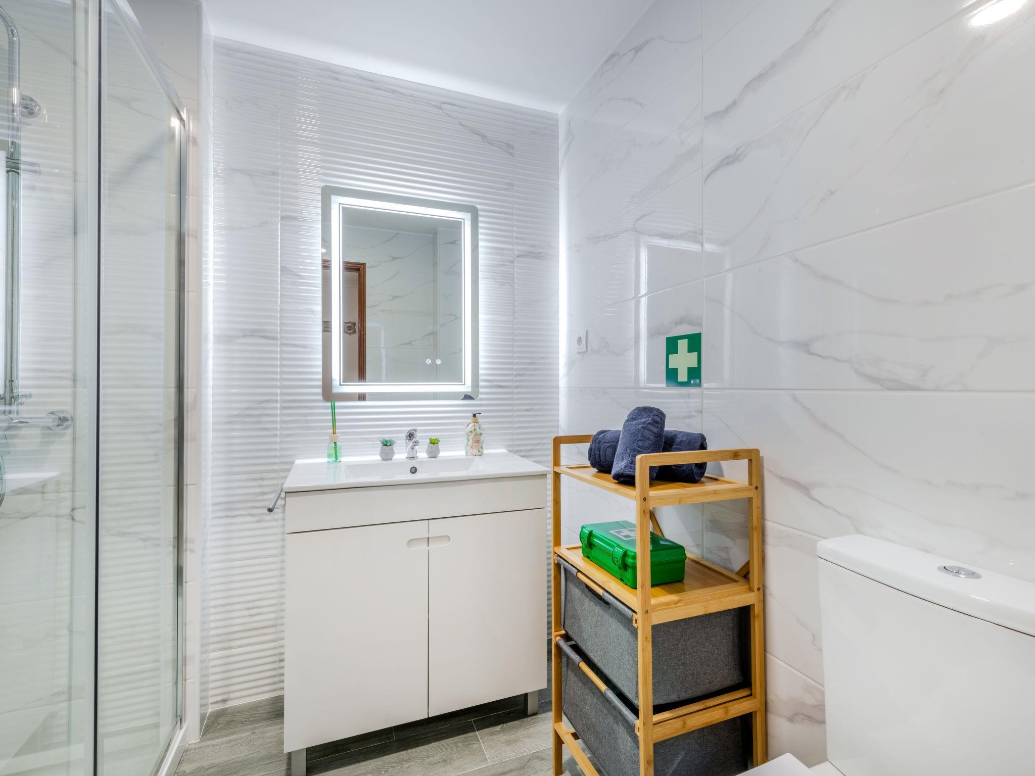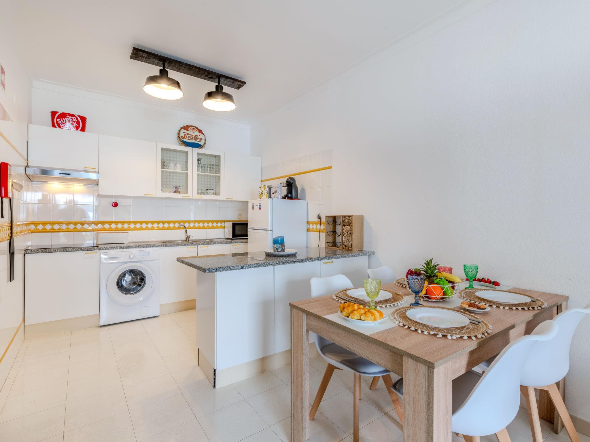 "Algarve Treasure", 2-room apartment 54 m2. Very comfortable and cosy furnishings: living/sleeping room with cable TV, flat screen, air conditioning and forced-air heating. 1 room with 1 bed (160 cm, length 200 cm), air conditioning and forced-air heating. Kitchenette (4 induction hot plates, toaster, microwave, freezer, electric coffee machine, Capsules for coffee machine (Nespresso not incl)) with dining table, 1 sofabed, TV, international TV channels and flat screen. Exit to the terrace. Shower/WC. No heating option. Terrace furniture. Side view of the sea. Facilities: washing machine, iron, children's high chair, baby cot for up to 2 year olds, hair dryer. Internet (WiFi). Please note: suitable for families. Non-smokers only. Fire extinguisher, no lift. 125216/AL